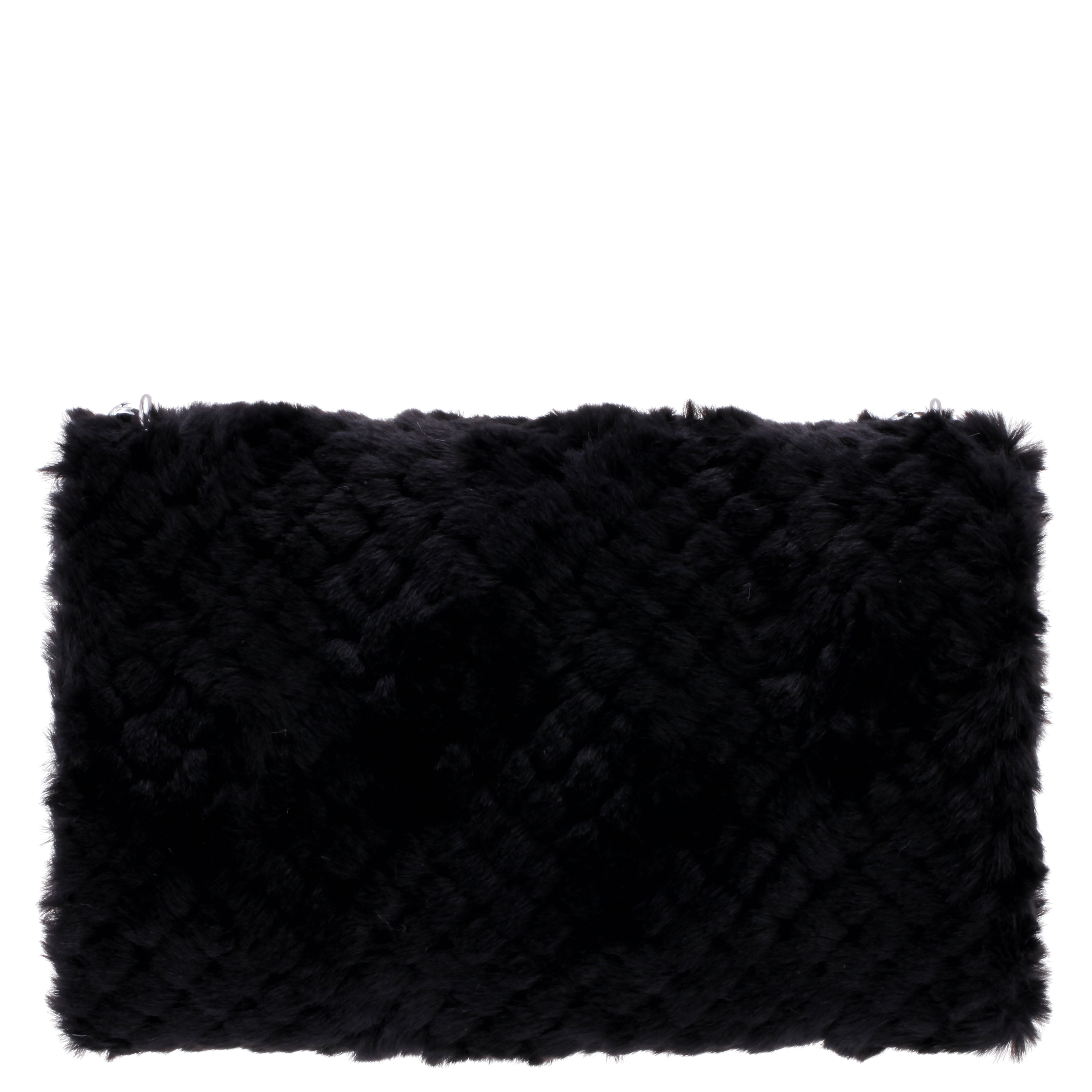 FAUX FUR FLAP BAG W/CRYSTAL CHAIN