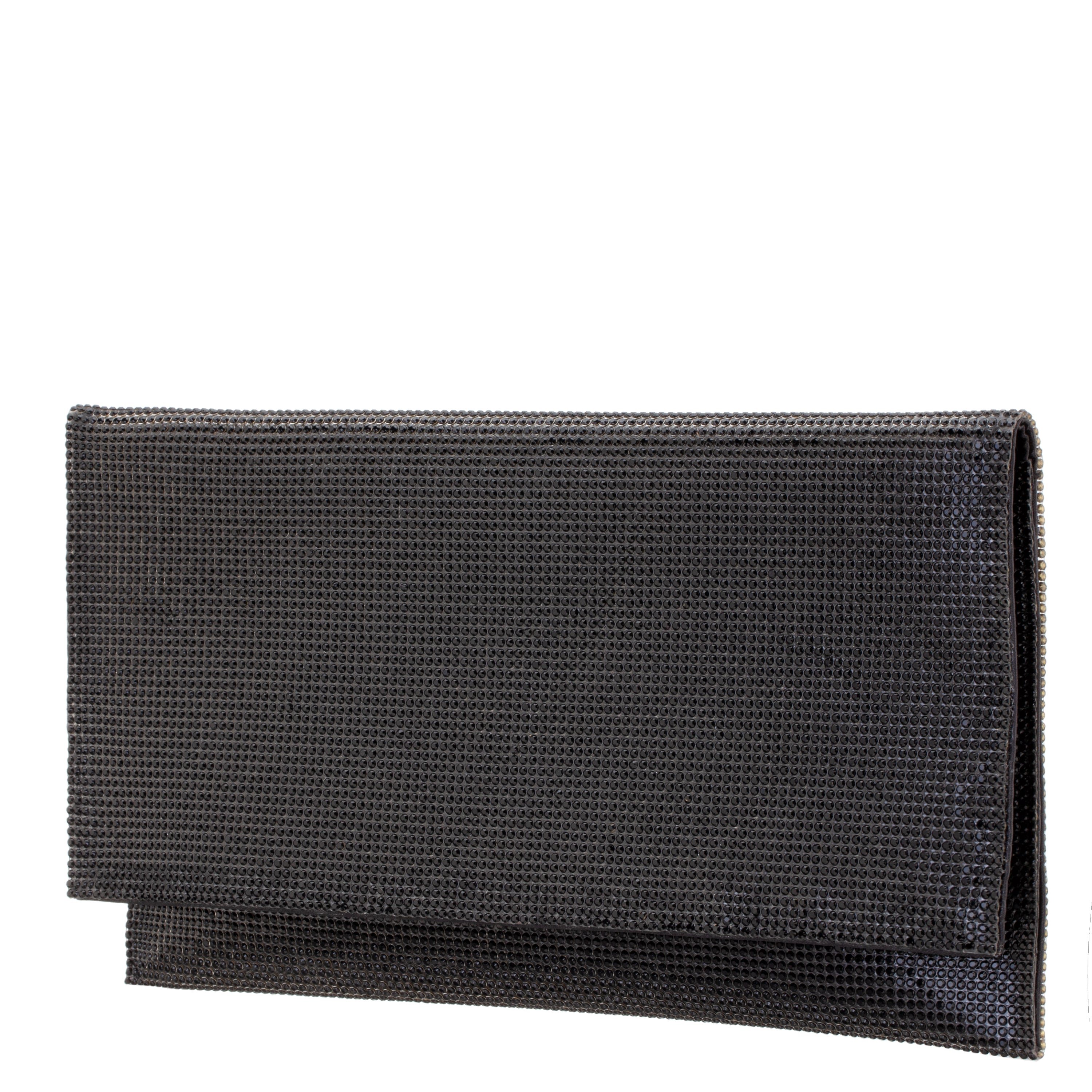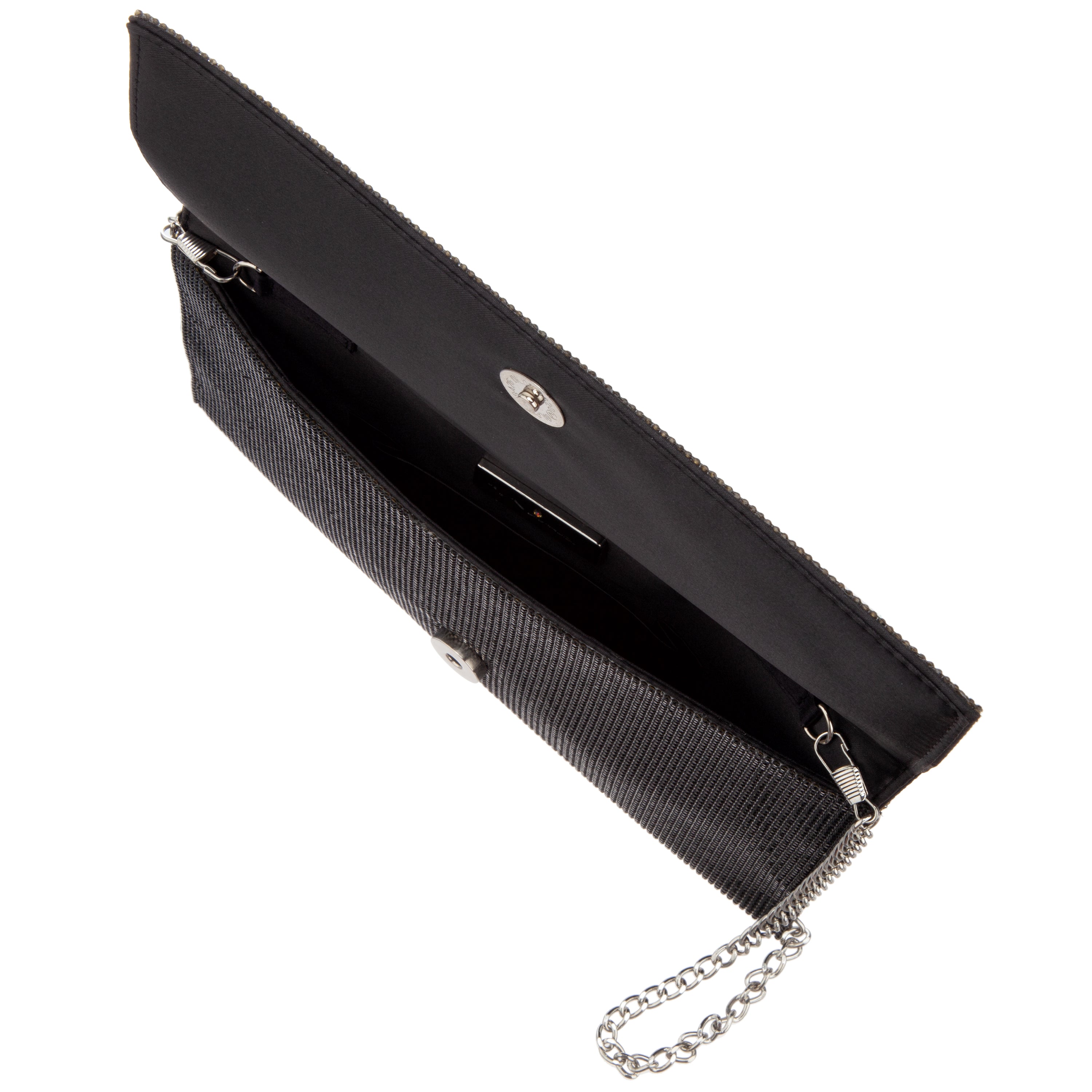 The KIMORA by Nina is the epitome of glamour, designed to make every occasion sparkle. This allover crystal-encrusted envelope clutch delivers a dazzling statement with its brilliant glass crystal embellishments, catching the light from every angle. Its sleek, structured silhouette offers a contemporary edge, while the magnetic snap closure ensures both style and security. The satin-lined interior includes a back wall pocket for effortless organization of your essentials. Carry it as a clutch for an elegant touch, or drape it over your shoulder with the 22" flat curb chain strap for a hands-free look. Whether you're attending a wedding, gala, or night out, the KIMORA ensures you shine with every step.