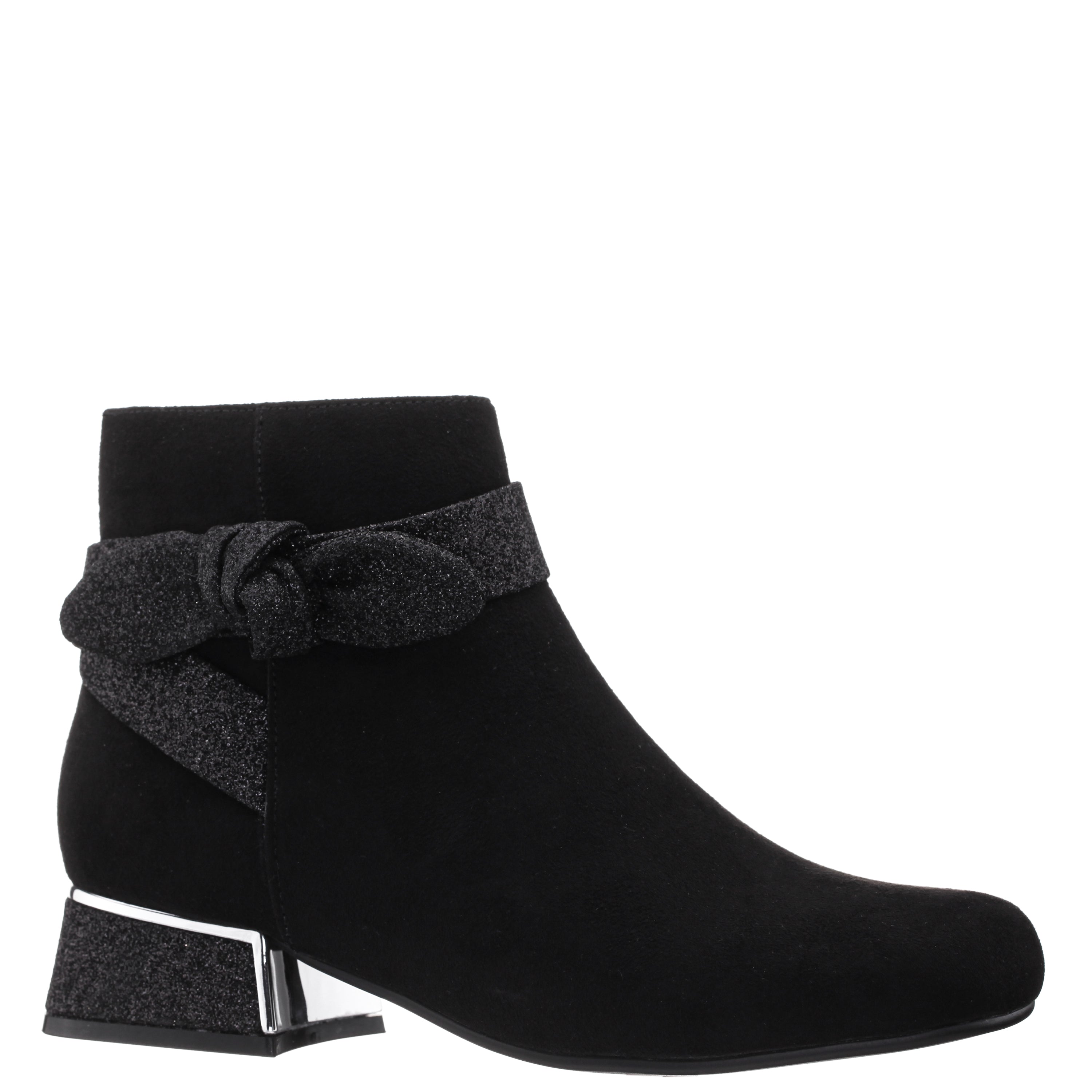 Presenting our dress boot featuring a beutiful decorative glitter bow, soft square toe shape, and chic flared heel with rand. Made with a convenient inside metal zipper closure for ease of wear. Elevate her casual or dress ensembles with this stunning style all season long.