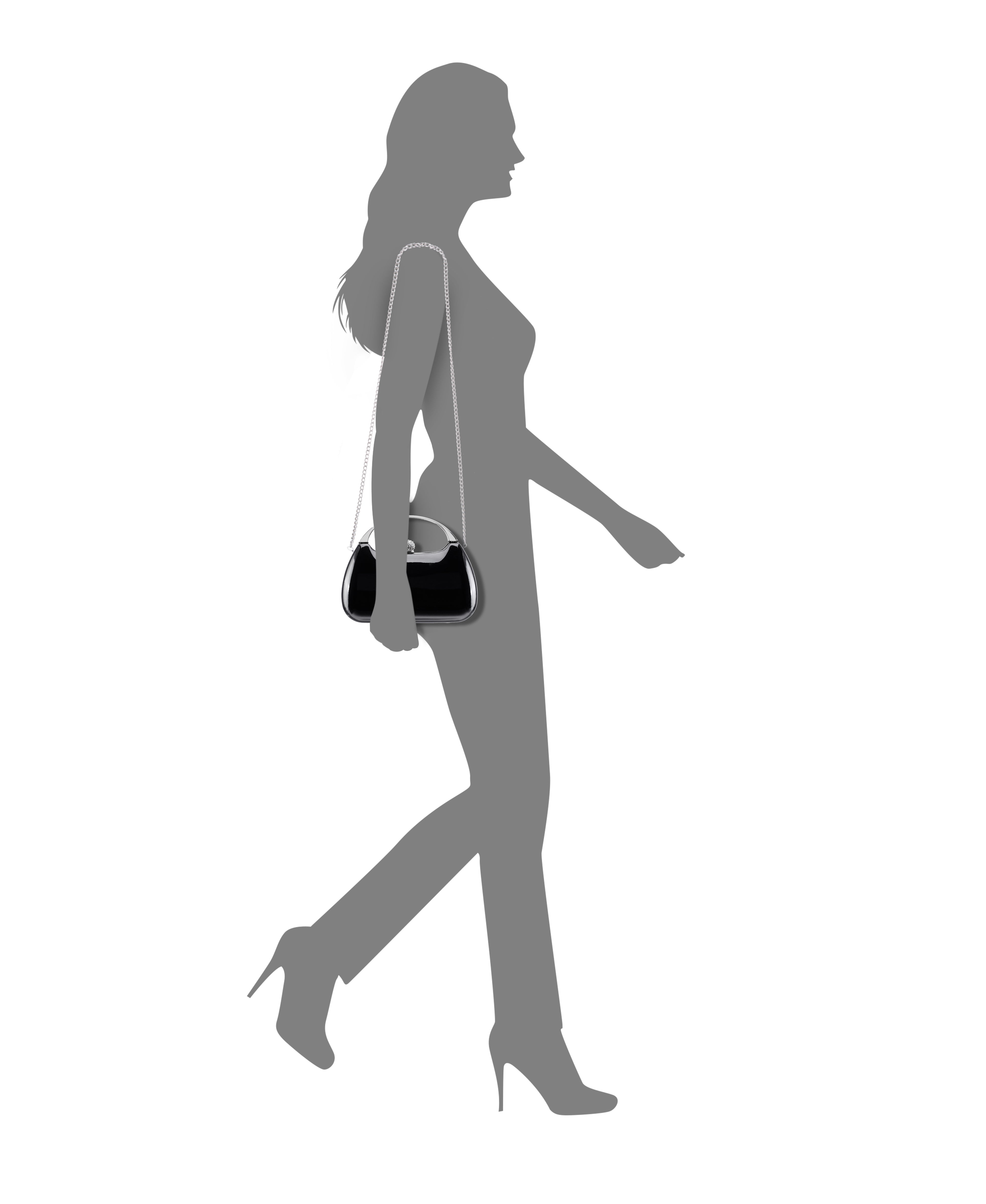 A statement of modern sophistication, the BRANDO-B minaudiere by Nina is designed to transition seamlessly from day to evening. Crafted from sleek PATENT PU, its structured silhouette exudes elegance, while the metal handle adds a contemporary edge. The compact yet spacious interior is lined with satin synthetic fabric, ensuring a refined touch inside and out. Whether carried by the 1.25" drop handle for a polished look or worn as a shoulder bag with the 18" flat curb chain strap, this minaudiere is the ultimate blend of function and fashion. The lift-lock closure keeps your essentials secure while adding to the bag’s streamlined aesthetic. Elevate your eveningwear with this chic, modern accessory that effortlessly complements any ensemble.