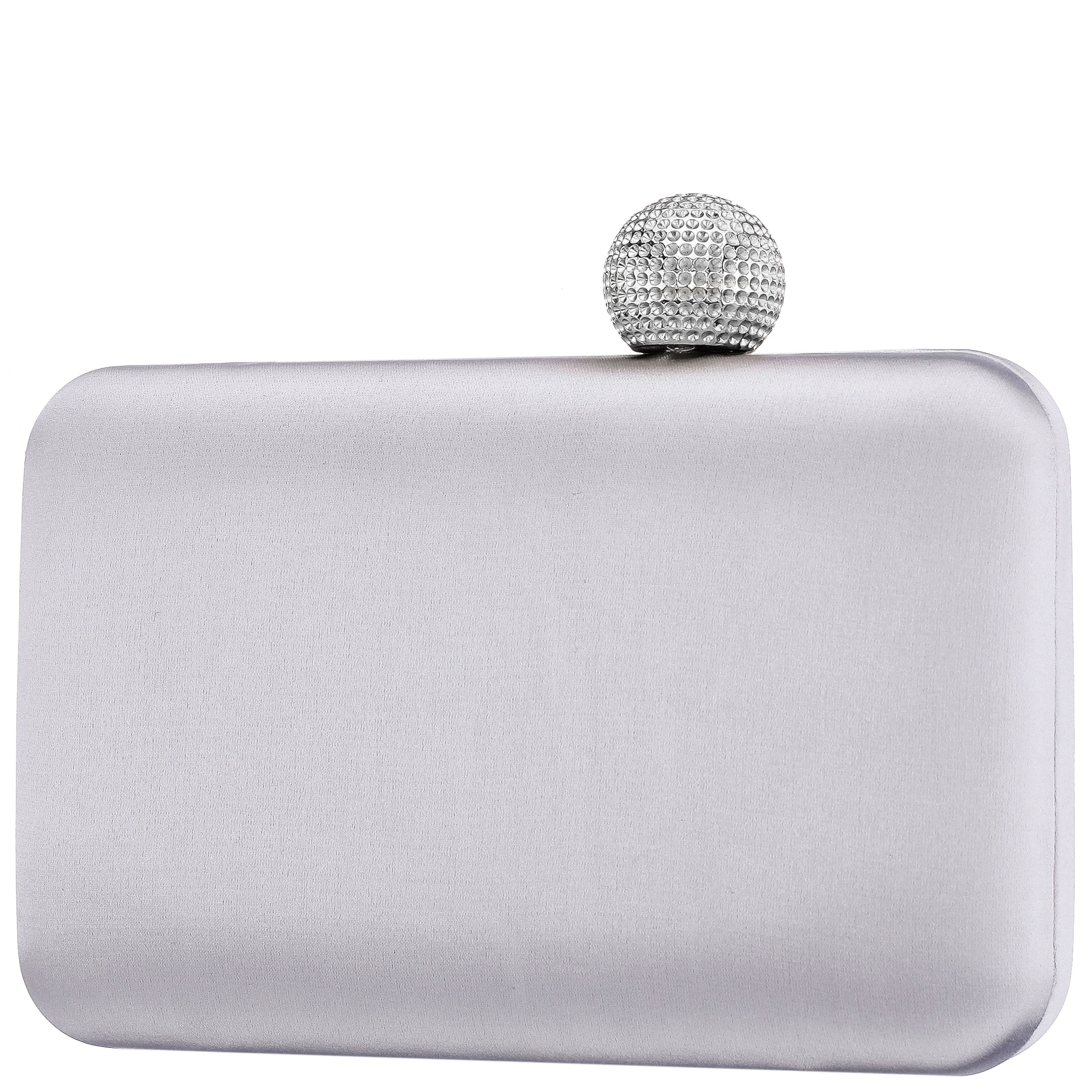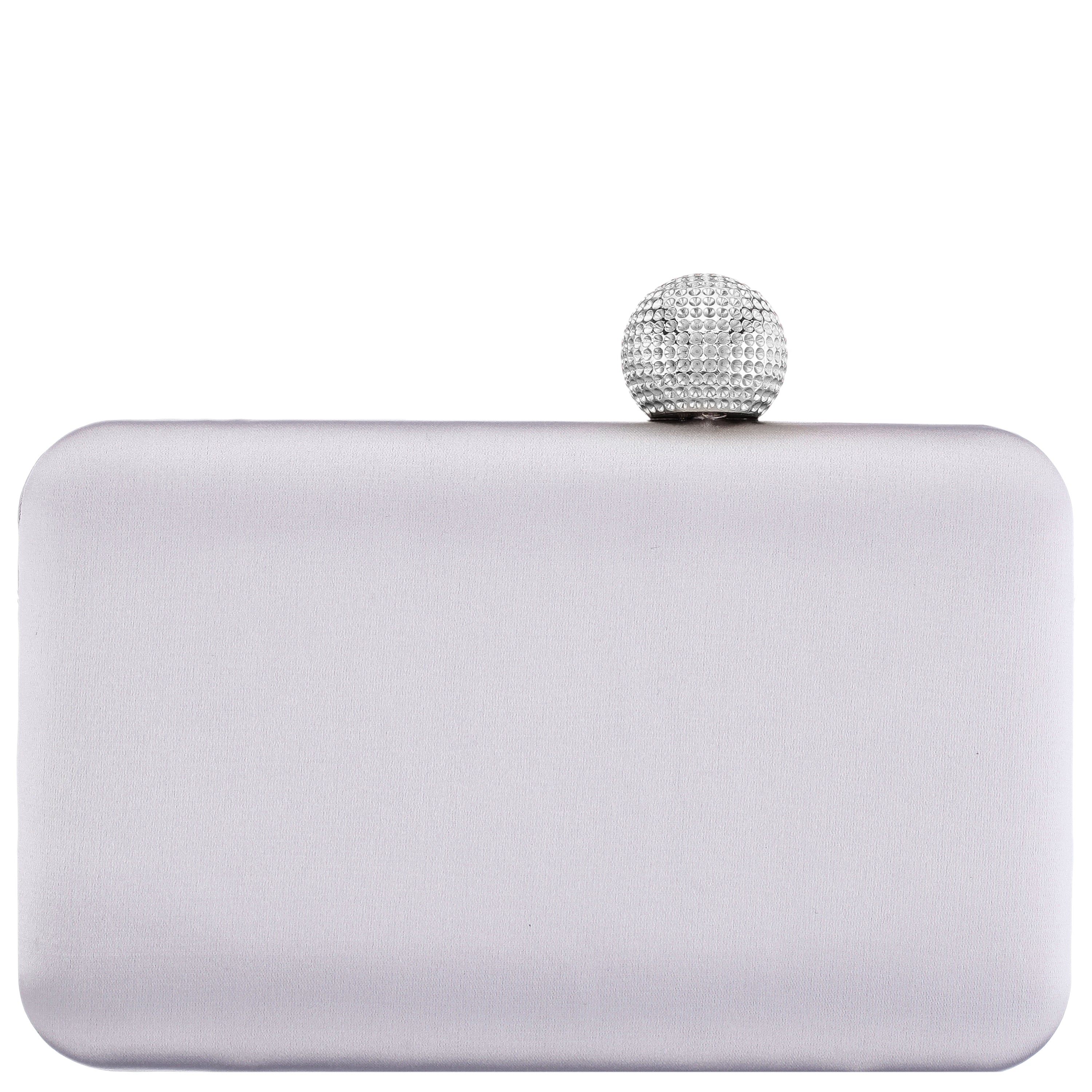 A satin and jewel-encrusted clasp lend modern glamour to an evening-ready clutch outfitted with an optional drop-in chain strap.