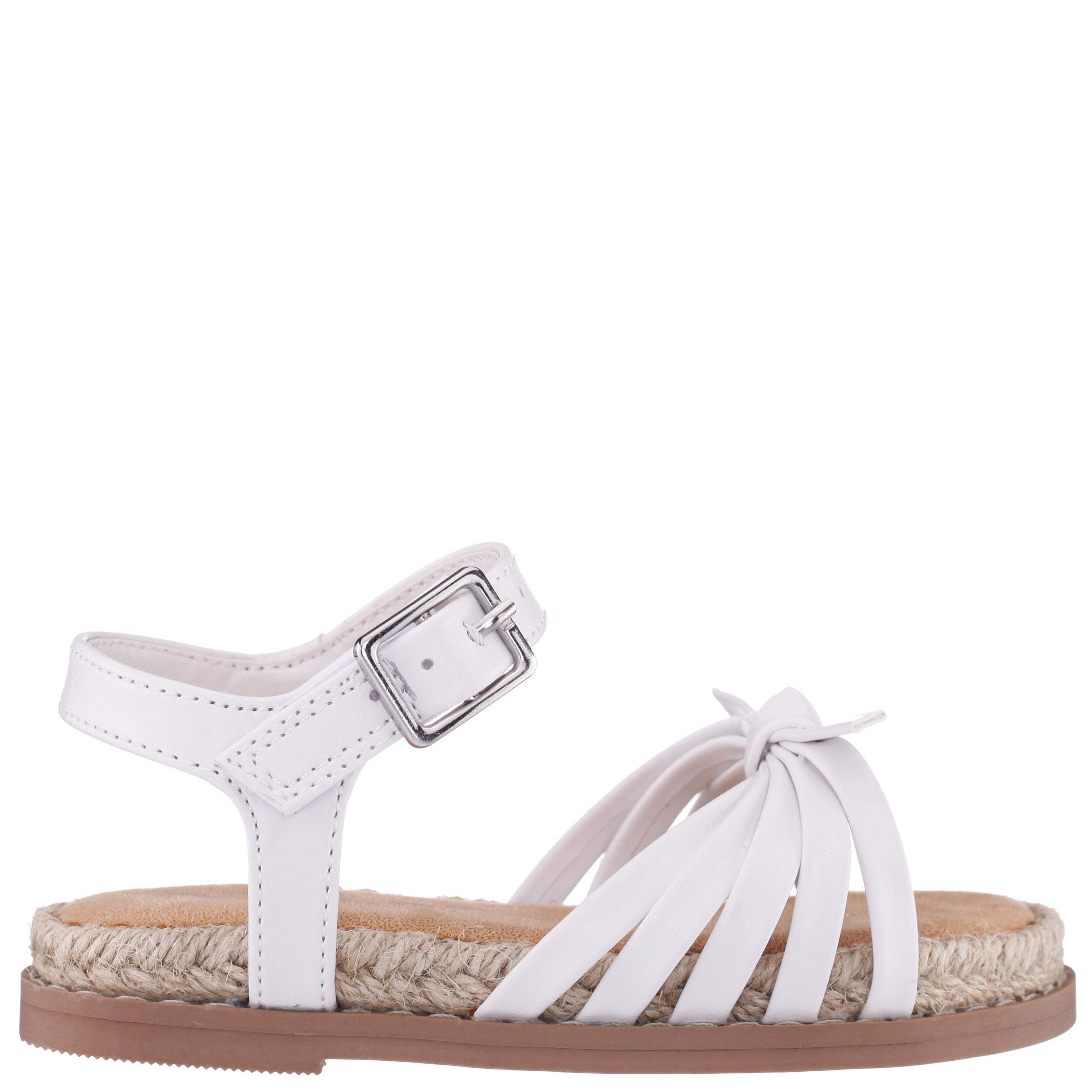 Sweet and effortlessly charming, ALISIA by Nina Shoes is a delightful girls sandal designed for polished comfort and playful style. Featuring a classic round toe with pretty bow accent, jute wrap, and a buckle detail, this easygoing silhouette adds a dressed-up touch to everyday looks. The adjustable hook-and-loop strap ensures a secure fit, while the cushioned memory foam insole and flexible non-slip sole keep her feeling comfortable and confident from casual outings to special moments.