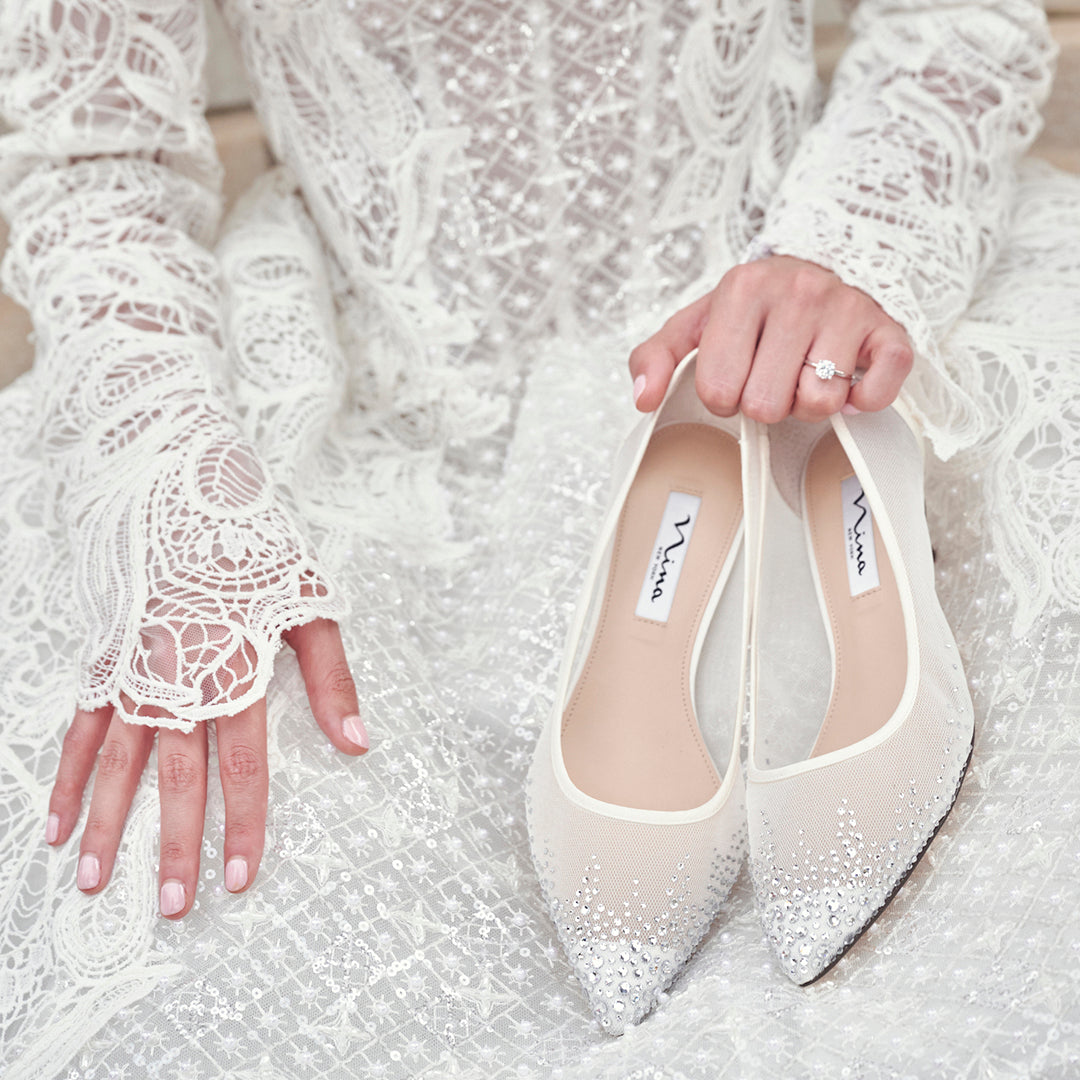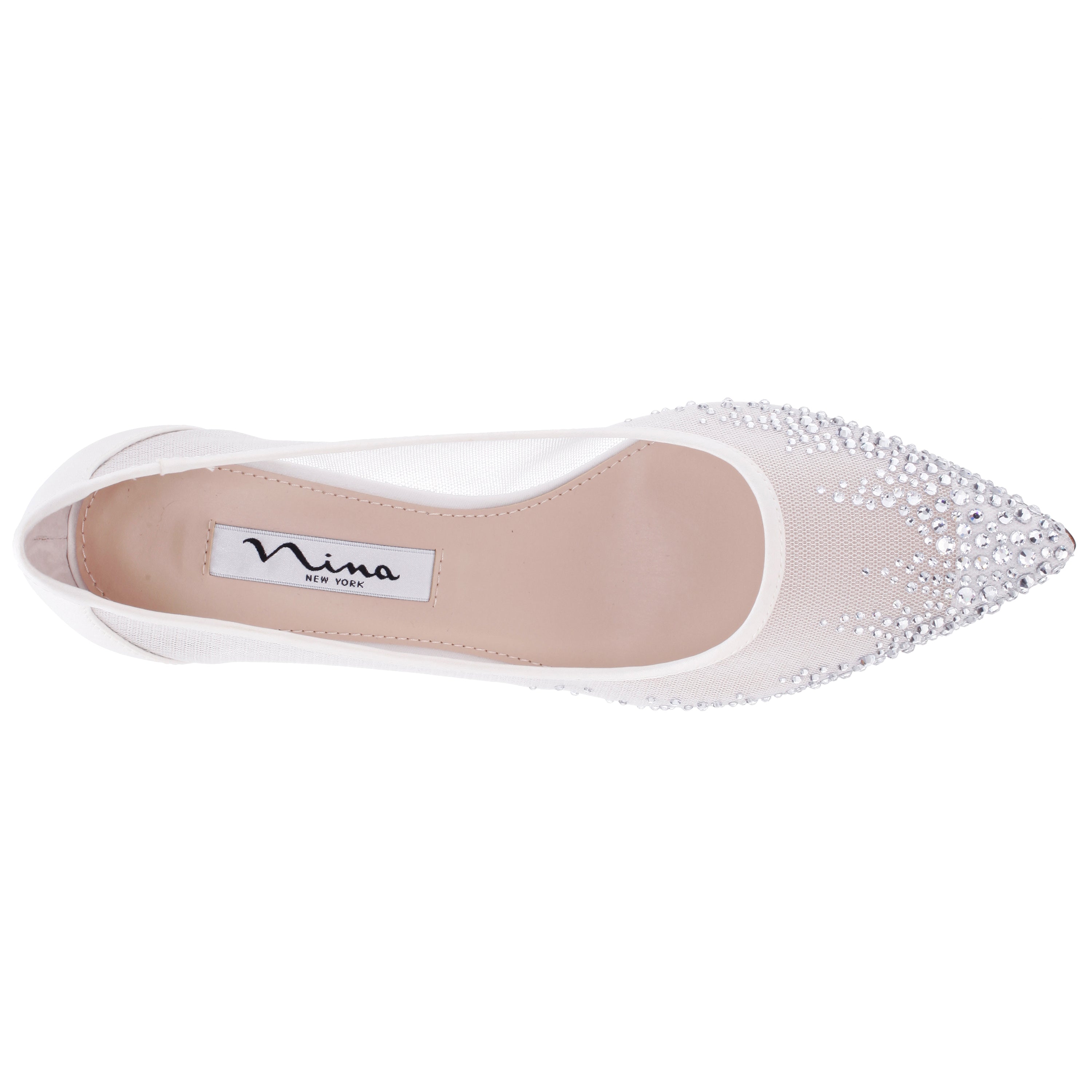 Tiny faceted crystals scattered across fine mesh, twinkle and shimmer on this elegant pump. Set on a low-heel, Sofie by Nina has a party-ready finish and a lady-like style.
