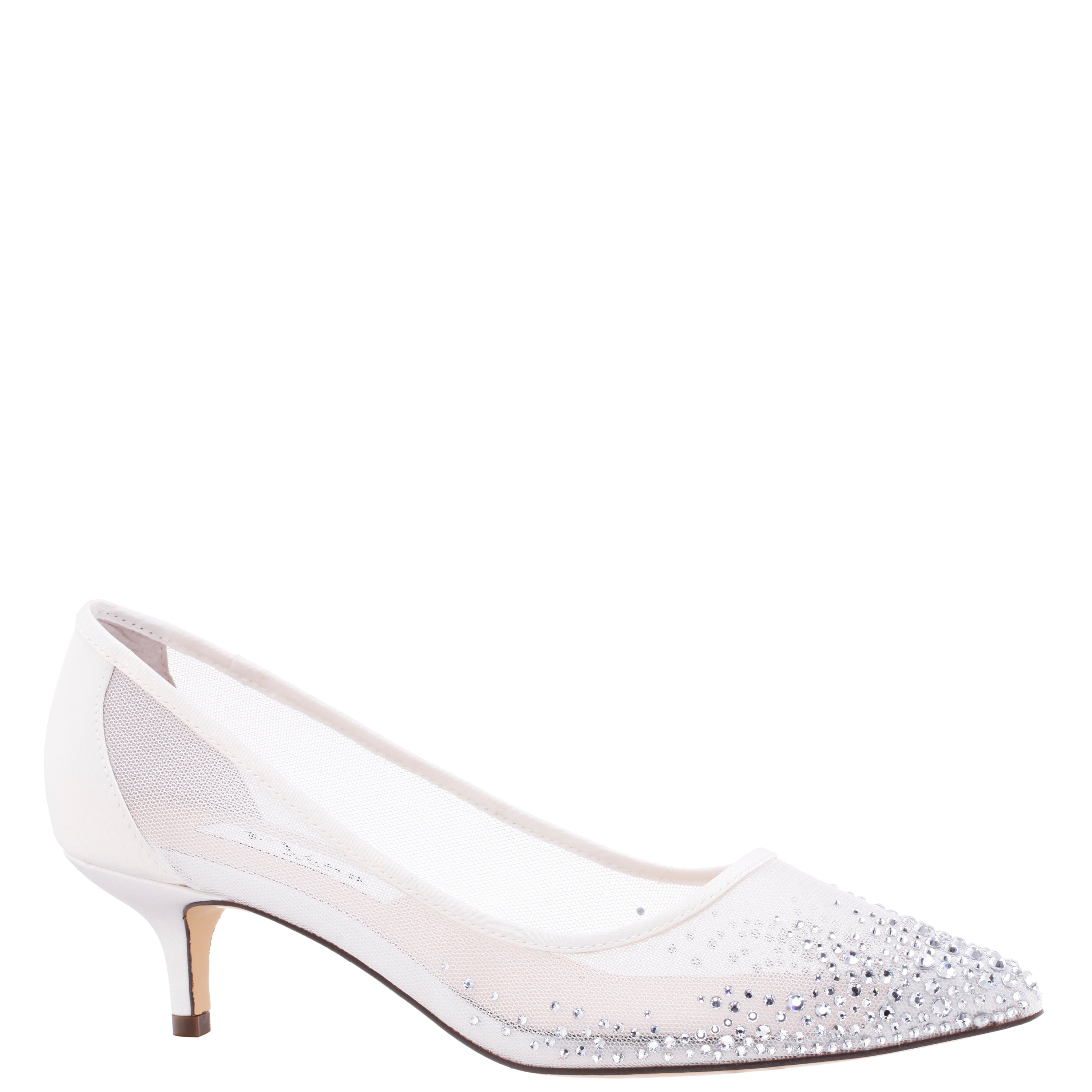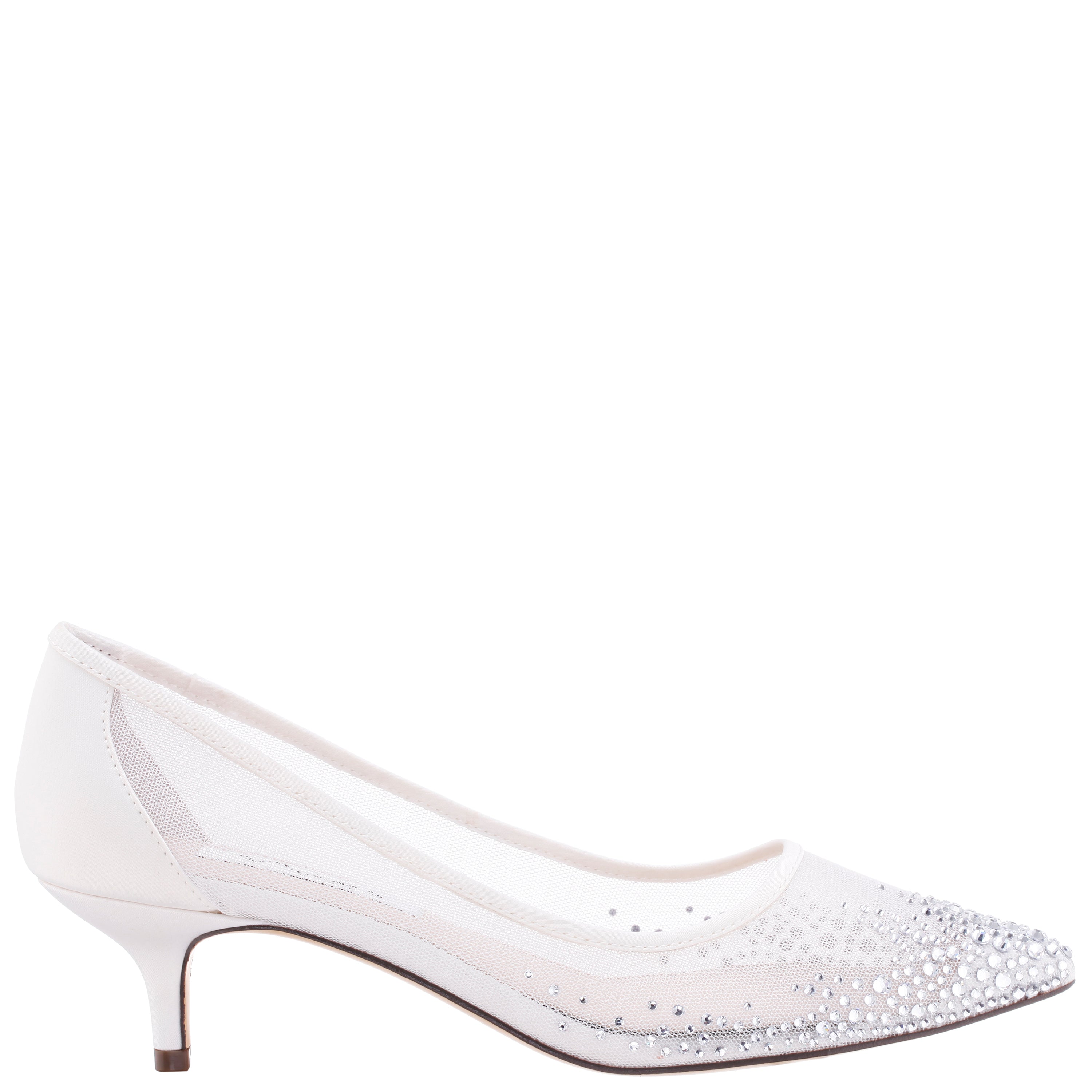 IVORY MESH WITH FACETED CRYSTALS KITTEN-HEEL PUMPS