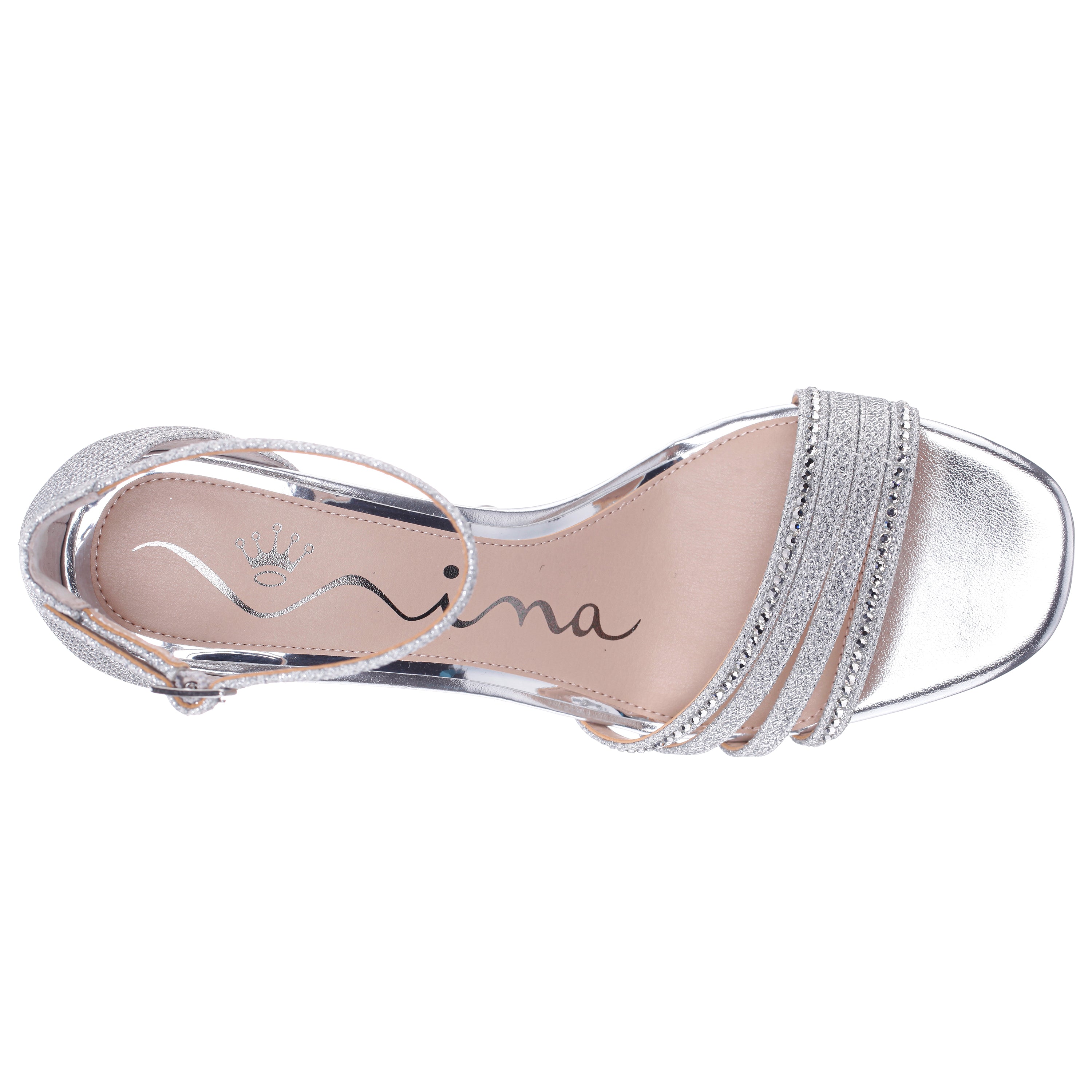 Crafted with slender straps that sparkle and shine, BOSTYN by Nina Shoes joins together the best of feminine and chic styling. This versatile sandal, with a "just-enough" touch of glamour, transitions effortlessly from daytime to night. Designed for comfort, the adjustable ankle-strap ensures a secure and customizable fit, while its elegant silhouette makes it the perfect choice for a modern trendsetter. Whether paired with tailored pants or a flowing evening gown, BOSTYN adds a polished finish to any ensemble.