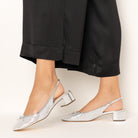Add modern elegance to your event by wearing KOURTNY by Nina Shoes, a classic ballerina pump—designed to be not so classic! Shimmering in metallic sequins and set on a low block-heel, this versatile slingback is a terrific addition to your footwear wardrobe. Worn with a LBD or jeans and a blazer, KOURTNY by Nina Shoes adds a finishing touch to your already stepped-up style.