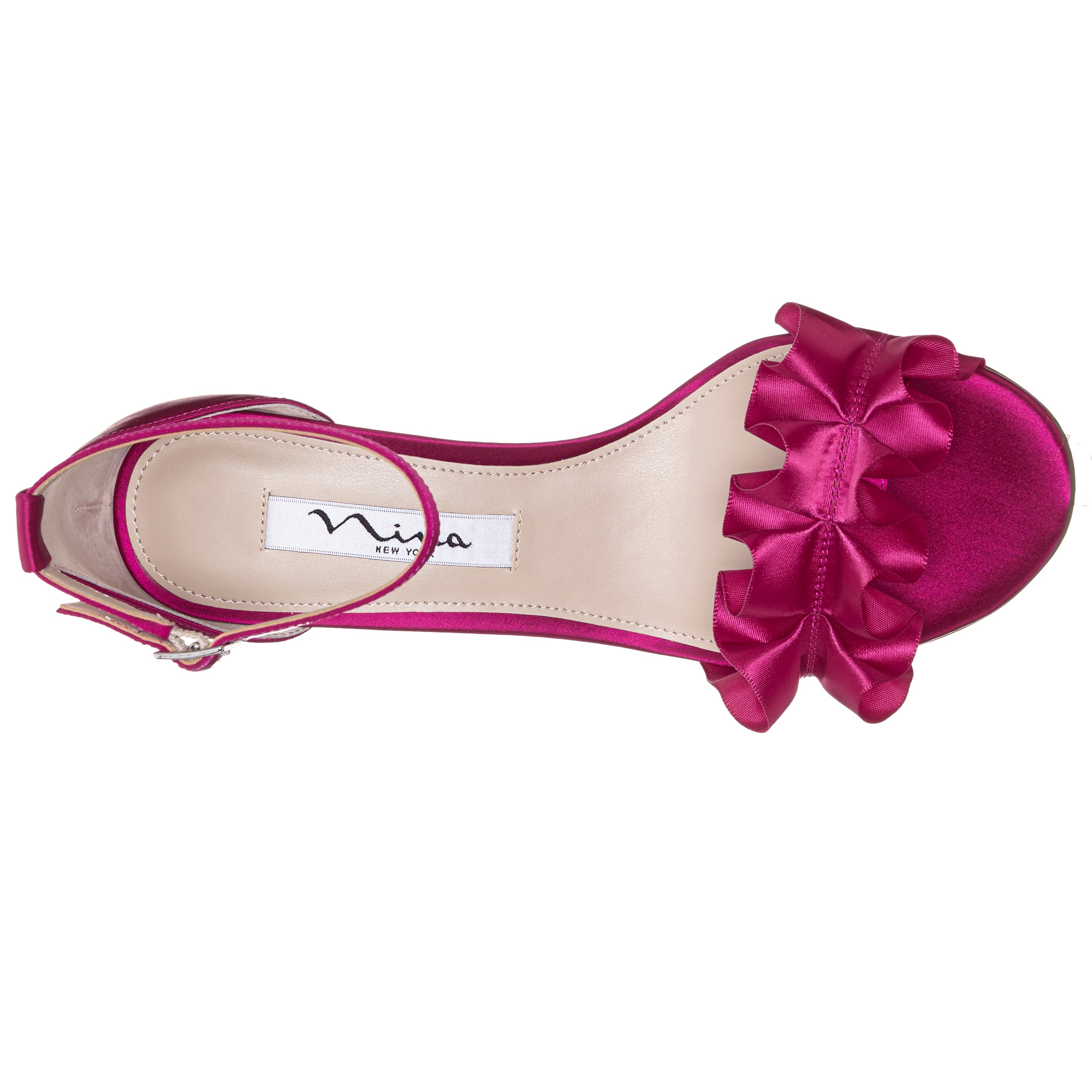 The Lisa by Nina features a whimsical ribbon ruffle detail and adjustable ankle strap, adding a touch of elegance to your every step. A simple yet versatile and chic sandal.