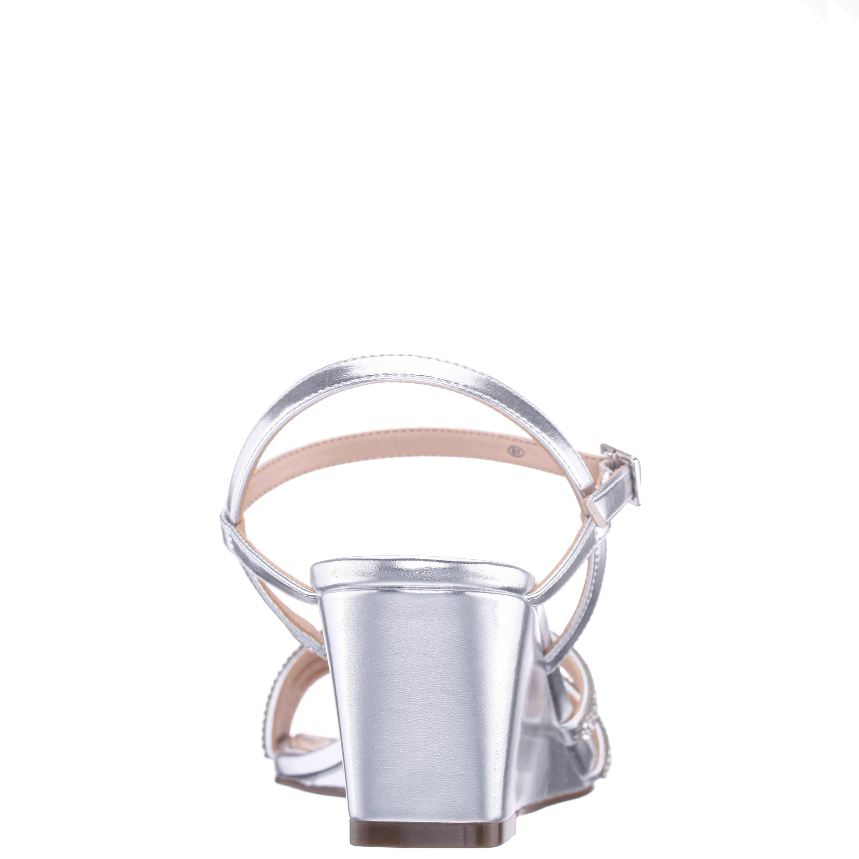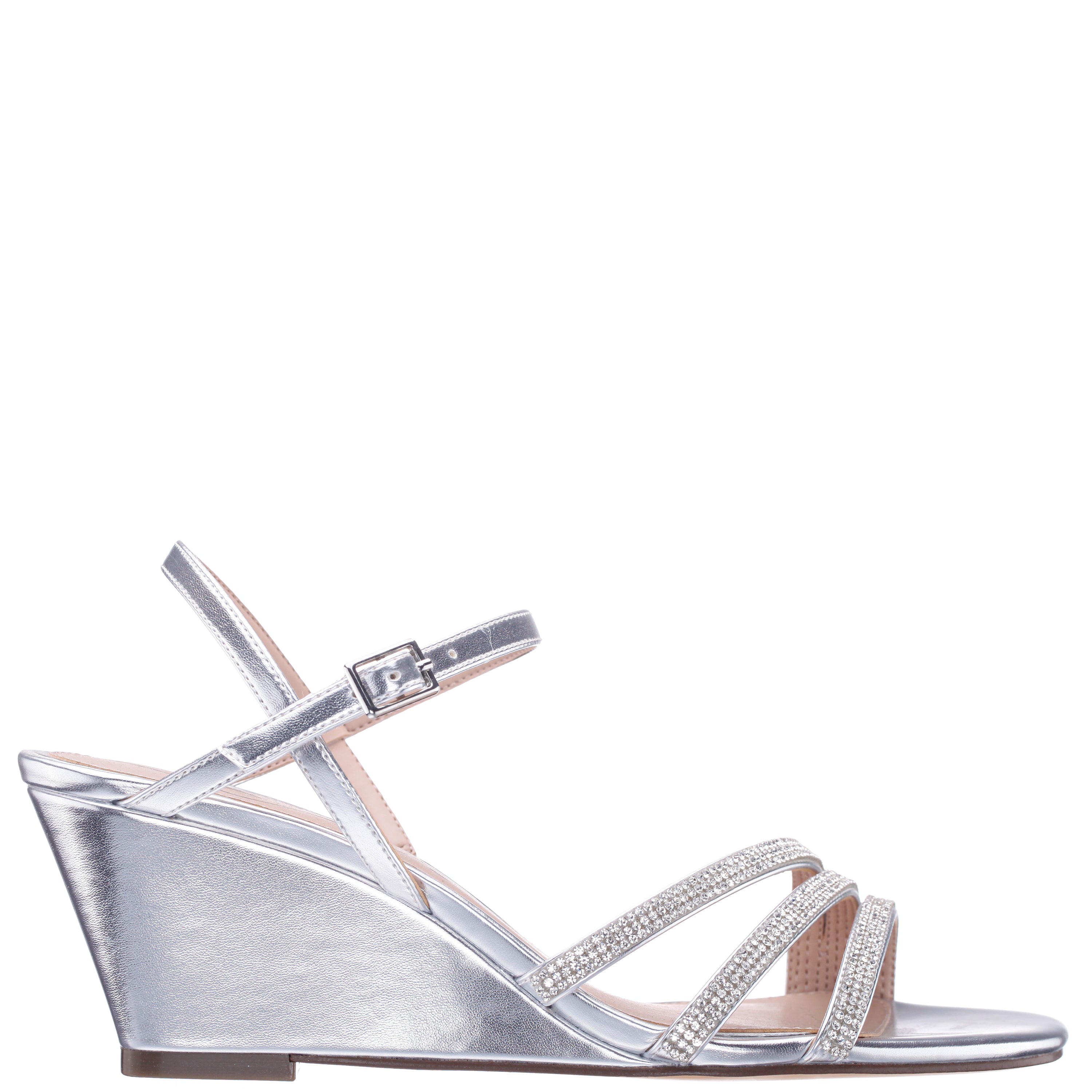 Truly, a glamorous and elegant wedge, SABINA by Nina Shoes has just enough sparkle to catch the eye. Slender bands of crystals cross the vamp in a sparkling pattern complimenting the metallic foil materialization. This sleek and sophisticated wedge offers a comfortable height and a secure ankle strap that elongates the leg. A chic design that easily transitions from day to night, SABINA is a welcome addition to your spring footwear wardrobe.