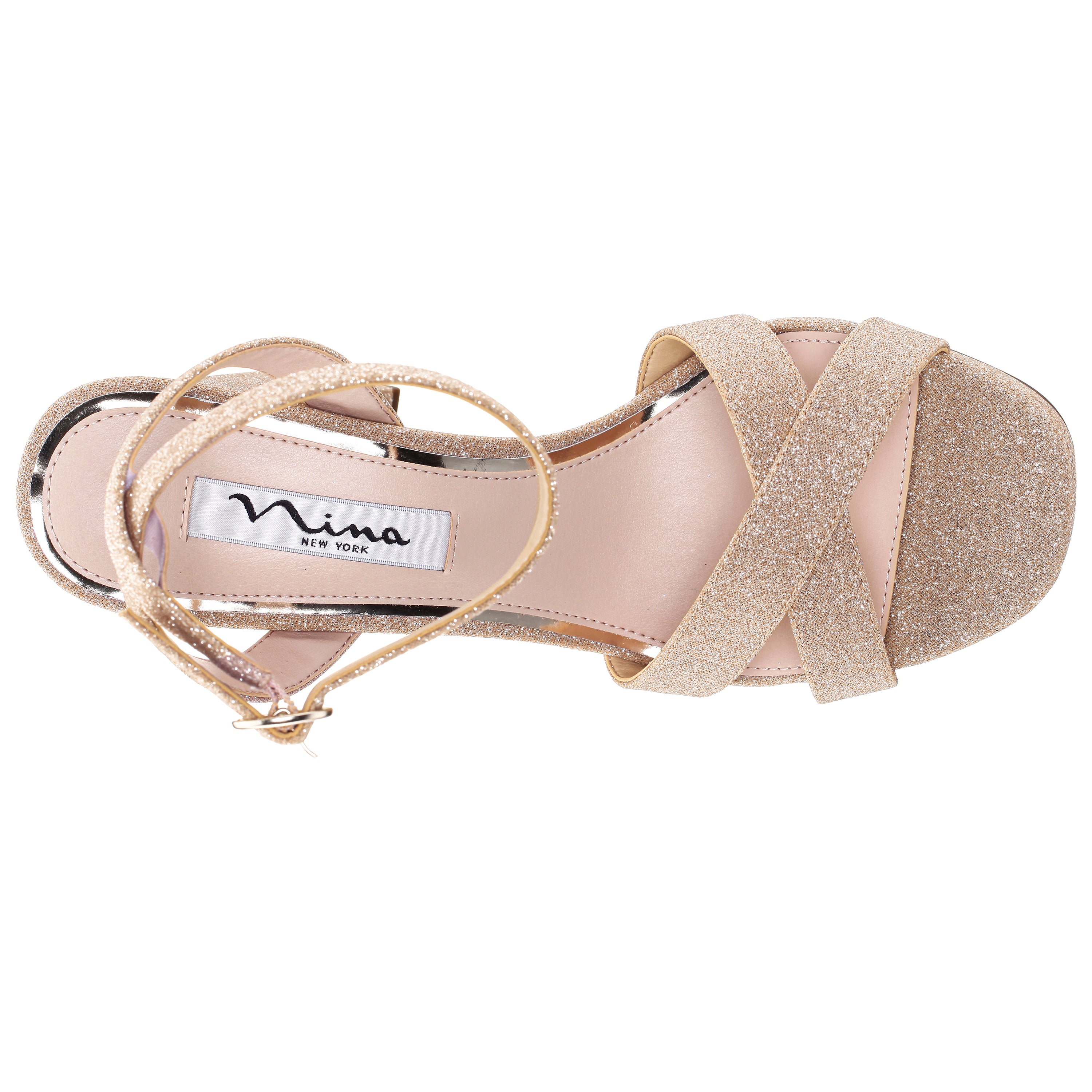 This trendy platform is certain to elevate your style game! A dazzling fusion of glamour and style, the Shelia by Nina high heel platform features glittering cross straps and a block heel, making this style a standout accessory for any special occasion or night out.
