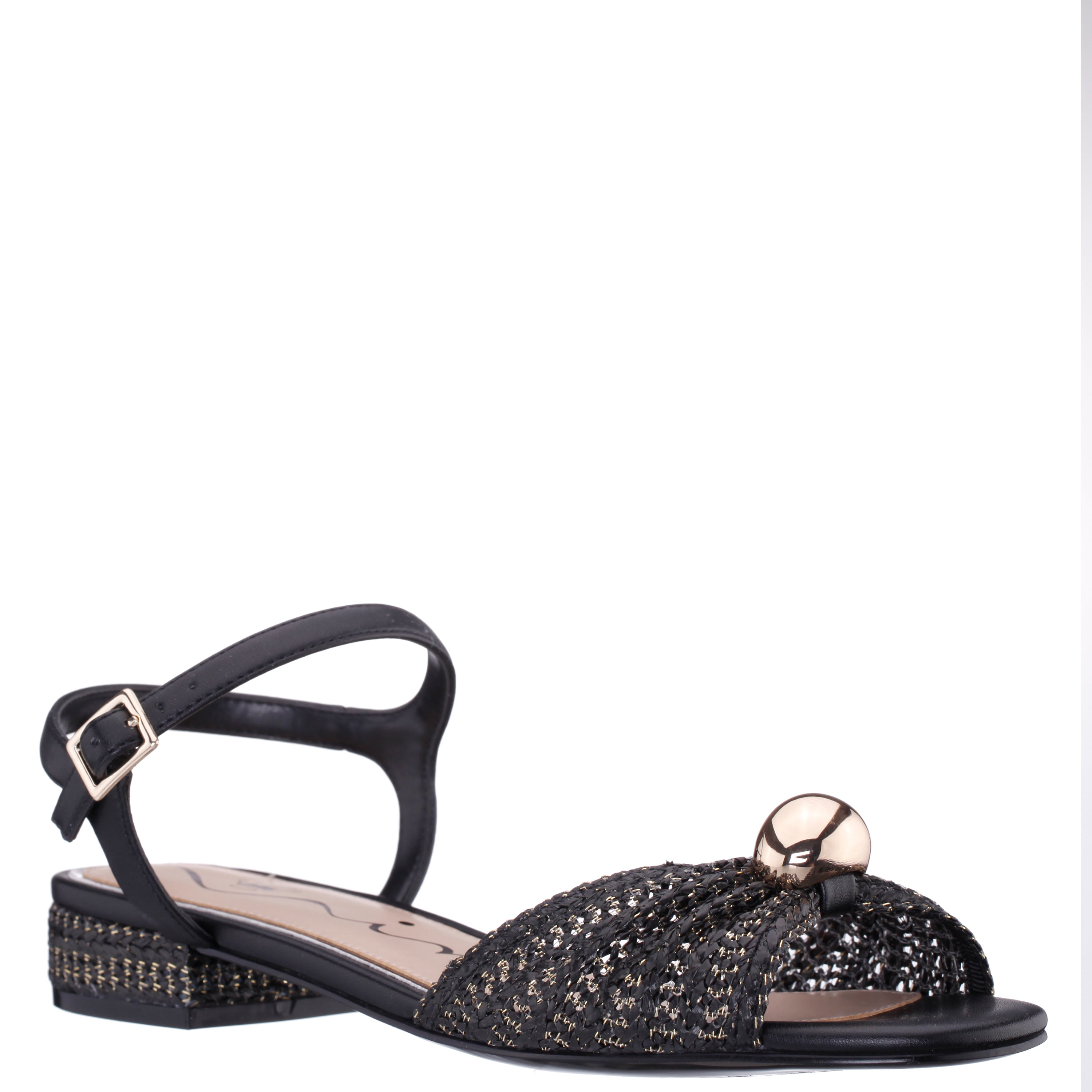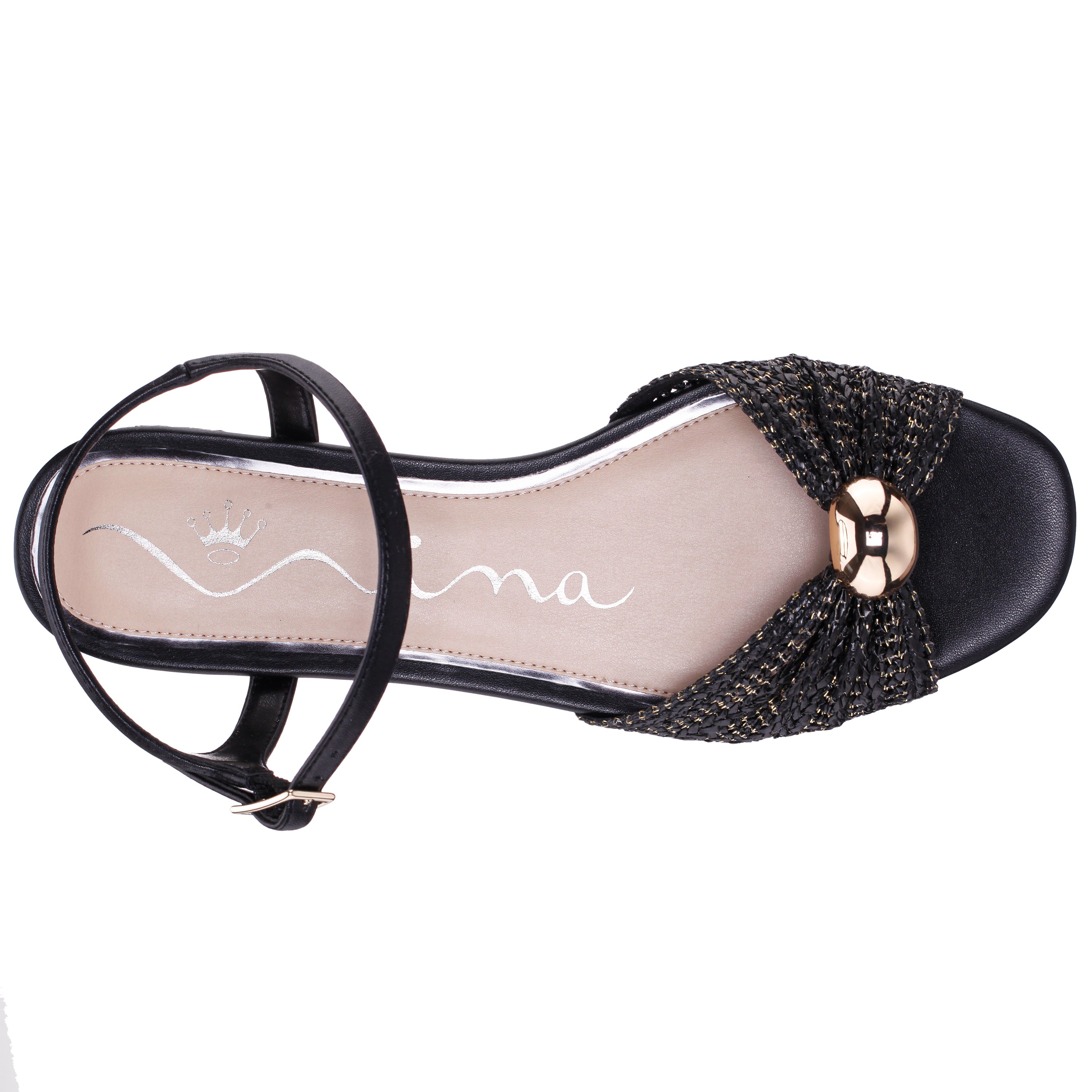 Every detail works together to create a strikingly modern sandal in Slater by Nina Shoes. This simple sandal is elevated by a stunning raffia bargello pattern of "go with everything" colors that offers comfort and stepped-up style. Sitting on a low block heel with an adjustable ankle-strap for just the right fit, this sandal offers endless possibilities for mixing and matching.