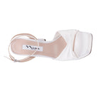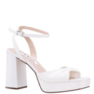 IVORY SATIN BLOCK-HEEL PLATFORM SANDALS WITH TWIST-FRONT AND ANKLE-STRAP