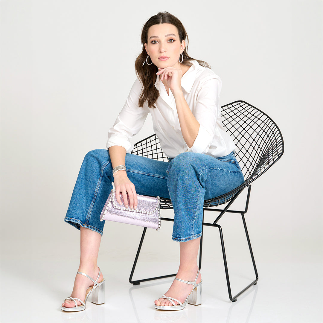 Make your fashion statement in Steven by Nina, a bold platform with special occasion style. Sitting on a high, chunky heel this contemporary style is accented with just enough bling on its criss-crossed toe straps for a feminine touch. You can pair them with whatever you are wearing from date-night to black-tie, to elevate whatever you are wearing.