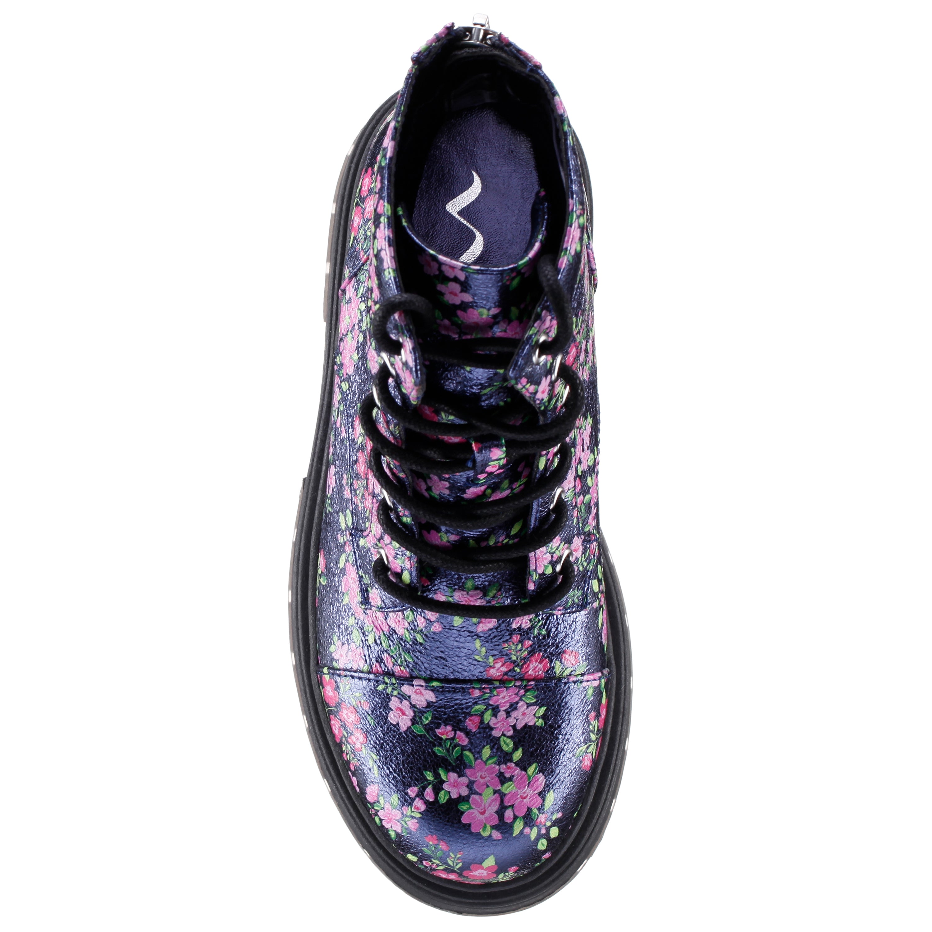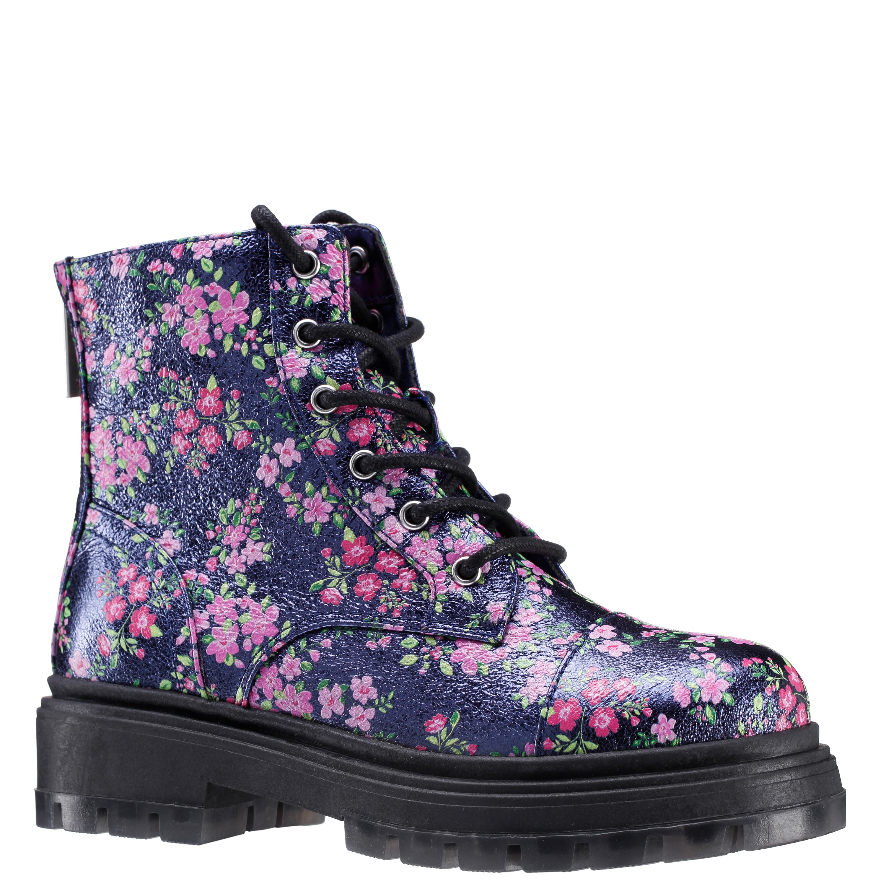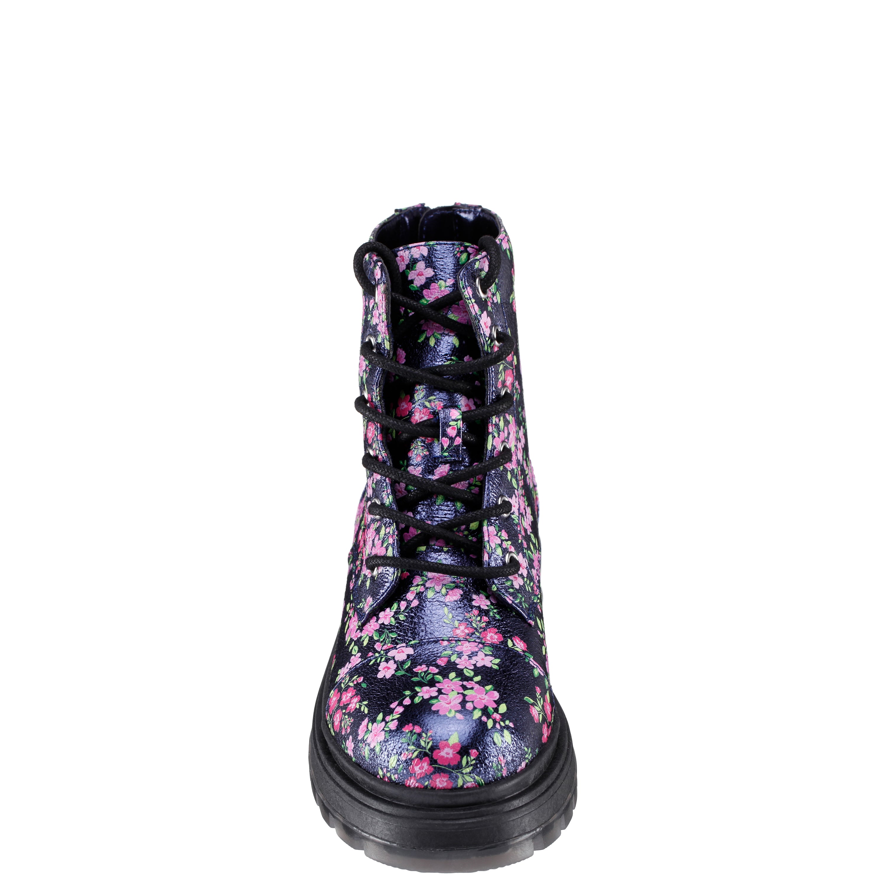 NAVY FLORAL BACK ZIP COMBAT BOOTS