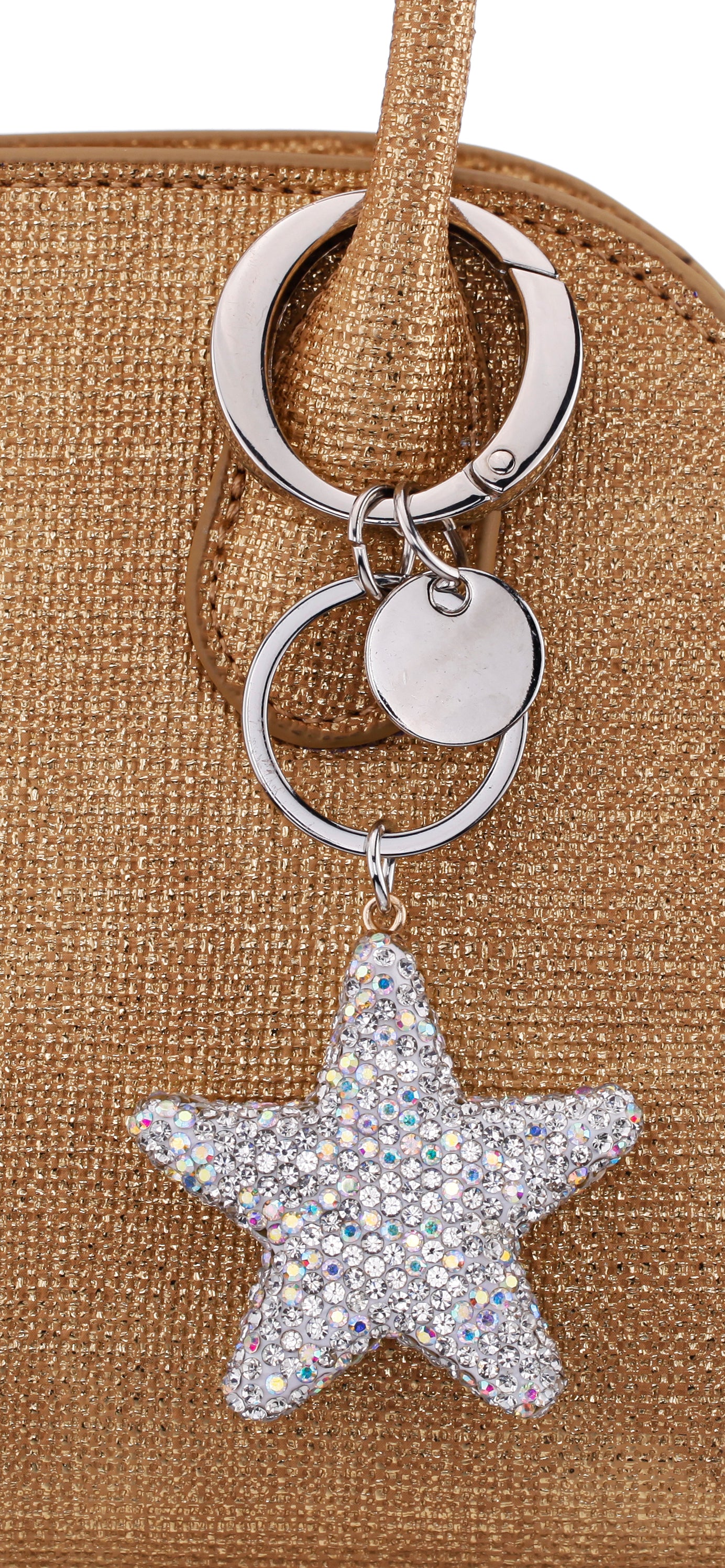 The C-STAR by Nina is a sparkling Bag Charm designed to light up your look. Shaped like a radiant star and encrusted with brilliant glass crystals, this mini charm adds playful glam to any tote, clutch, or backpack. Finished with gold-tone hardware and bursting with personality, the C-STAR is your go-to for a touch of shine—day or night.