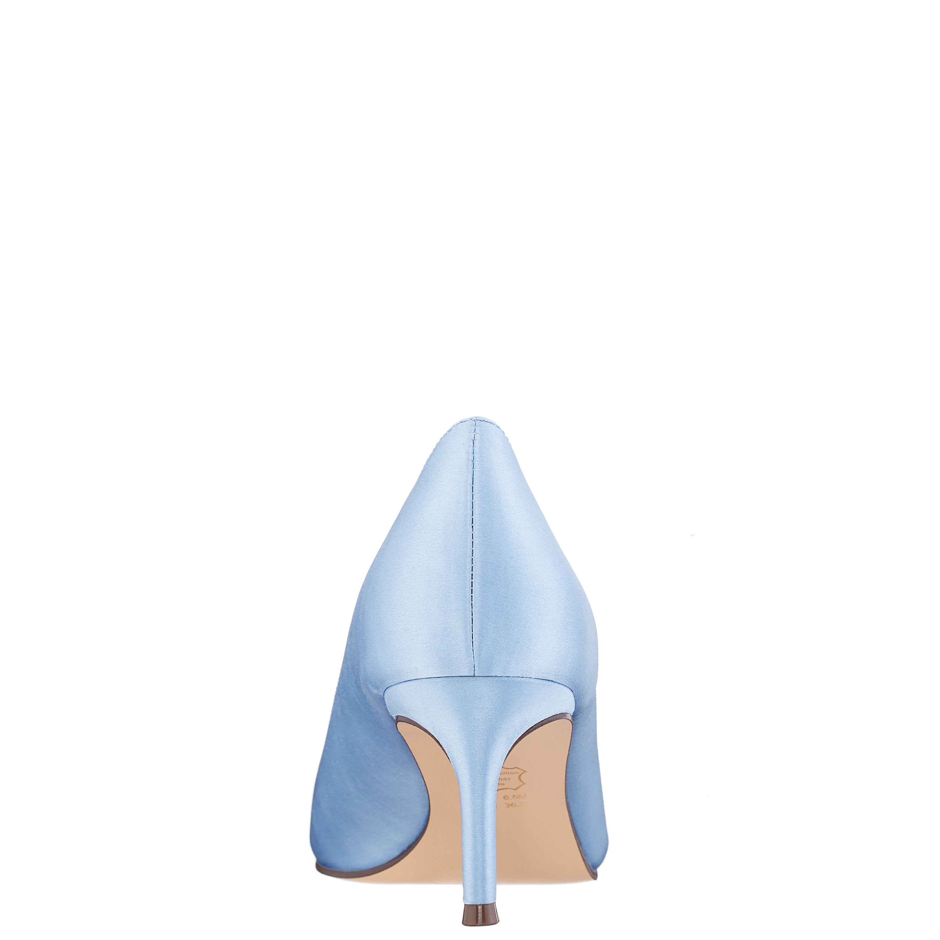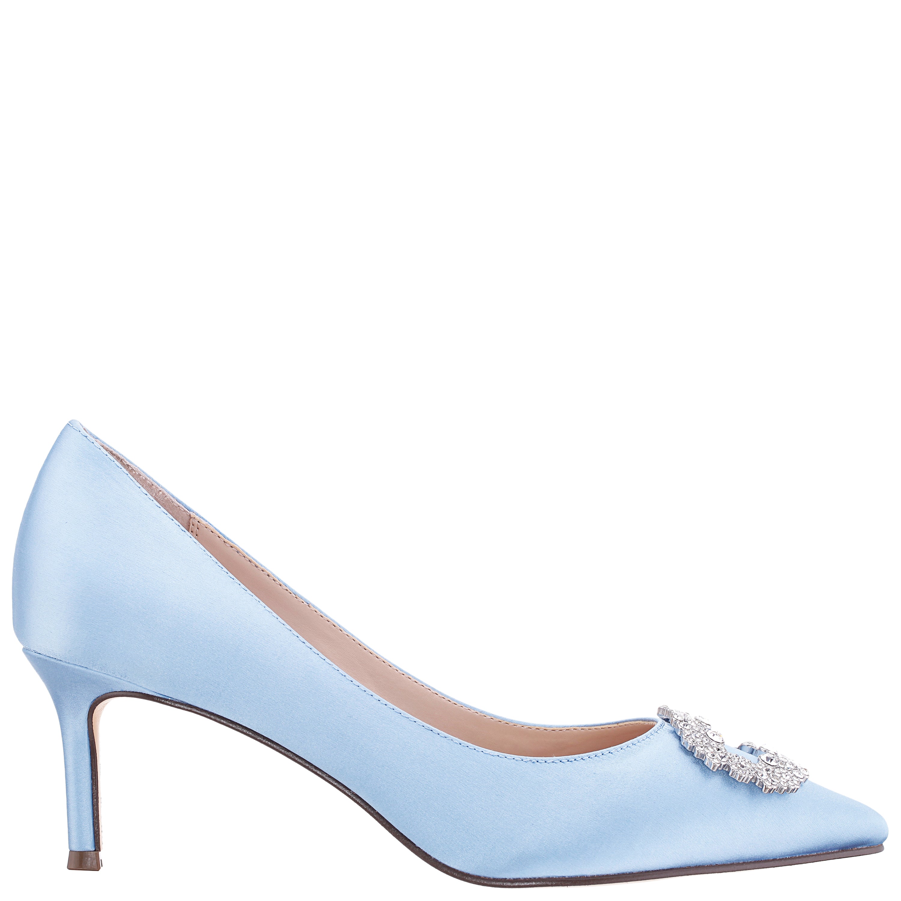 SKY BLUE SATIN MID-HEEL PUMPS WITH JEWELED BUCKLE