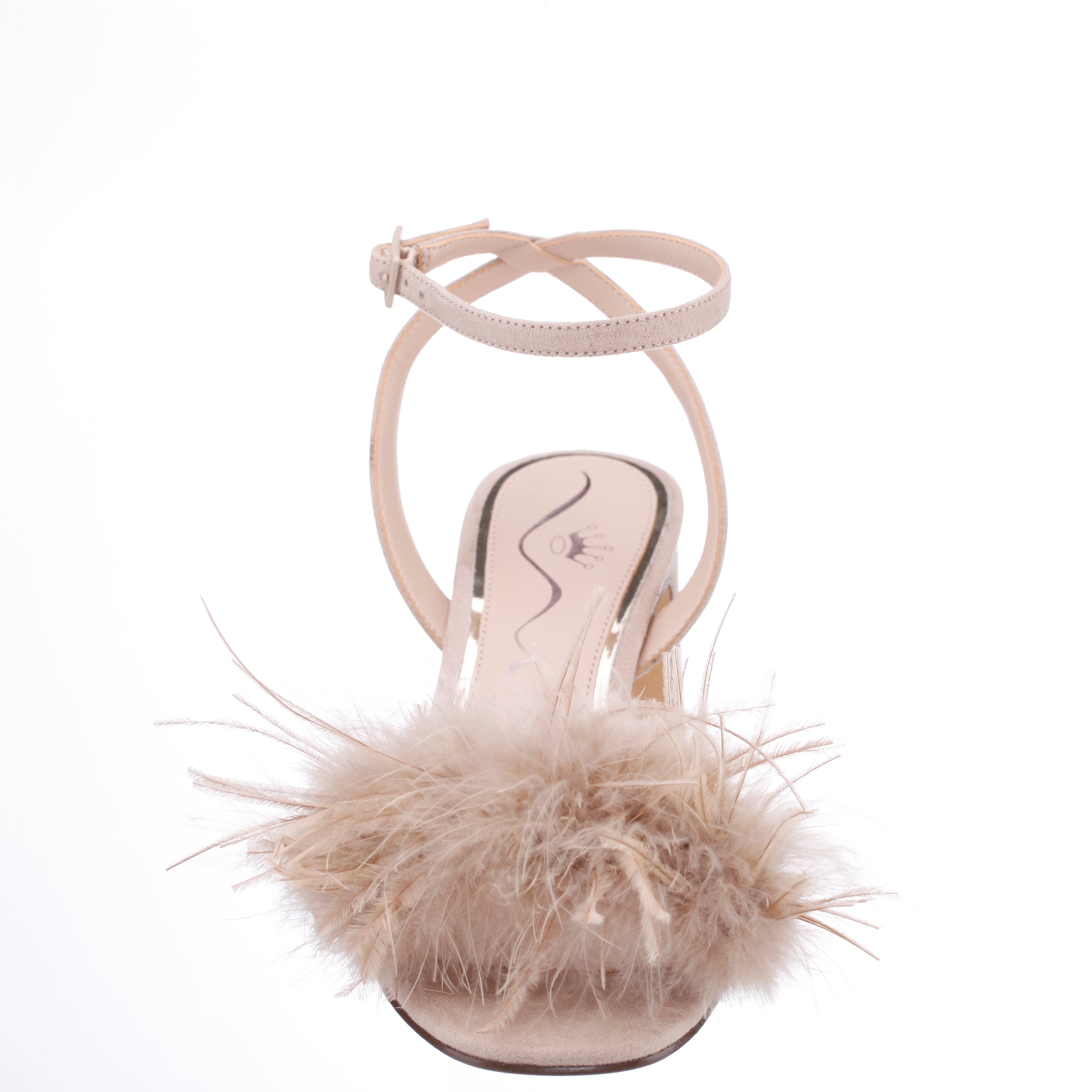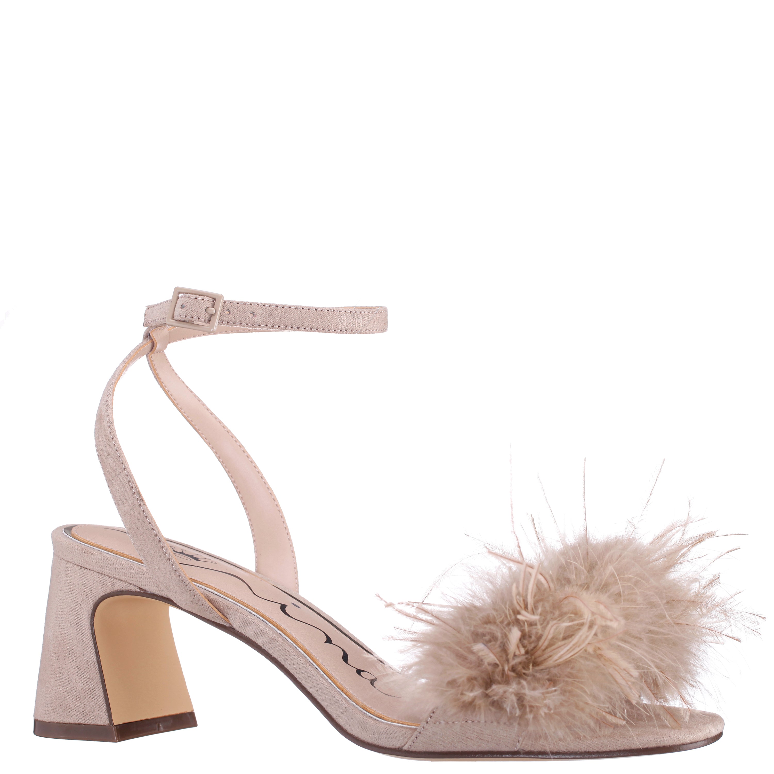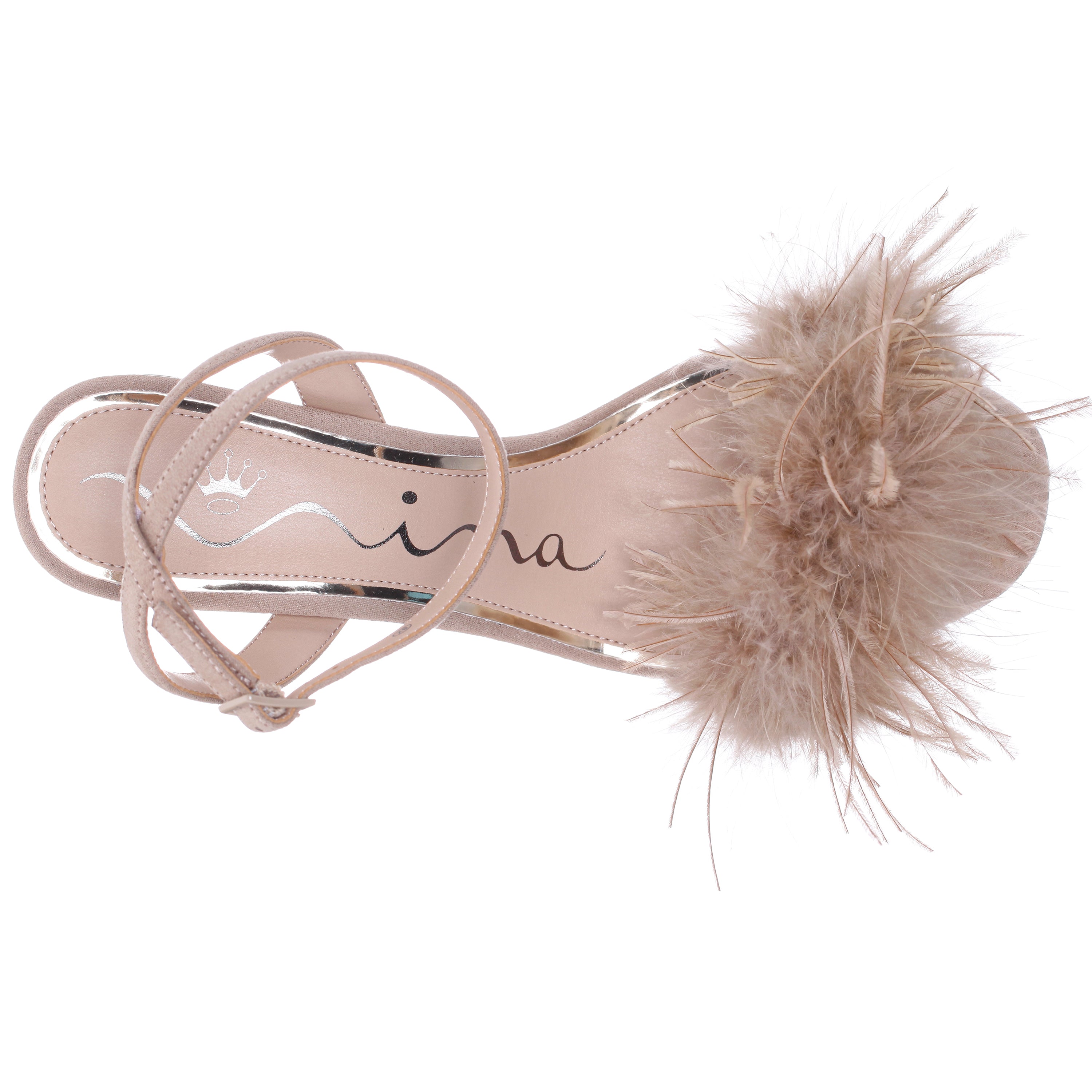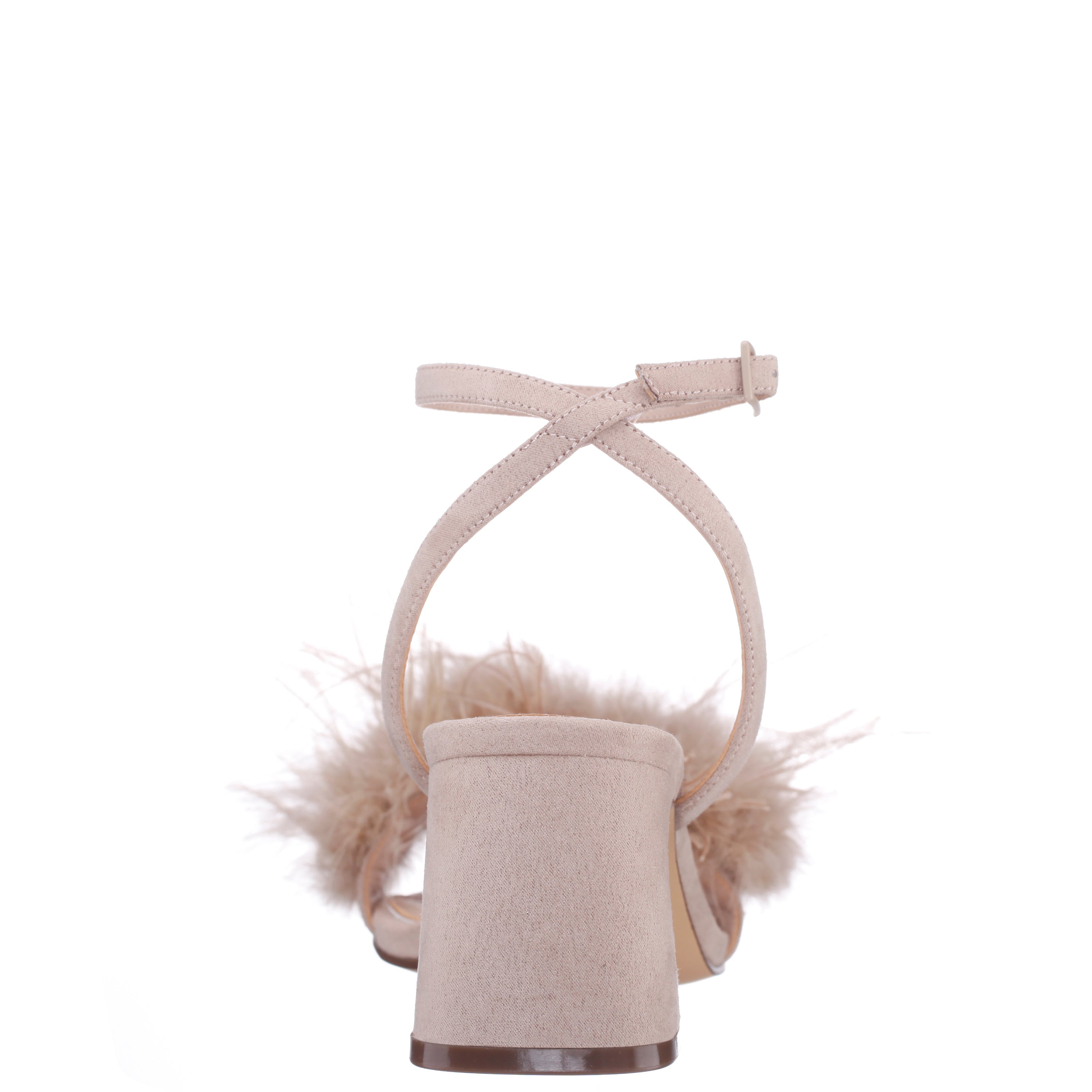 Step into one of the season’s biggest trends with BEV by Nina Shoes, a chic ankle-strap sandal adorned with a dramatic pouf of feathers across the vamp. Balanced by a delicate ankle strap and set on a comfortable 2-1/2" (63mm) mid block heel, this minimalist sandal is as fun as it is feminine. BEV captures the look of the season – bold, romantic, and soiree ready!