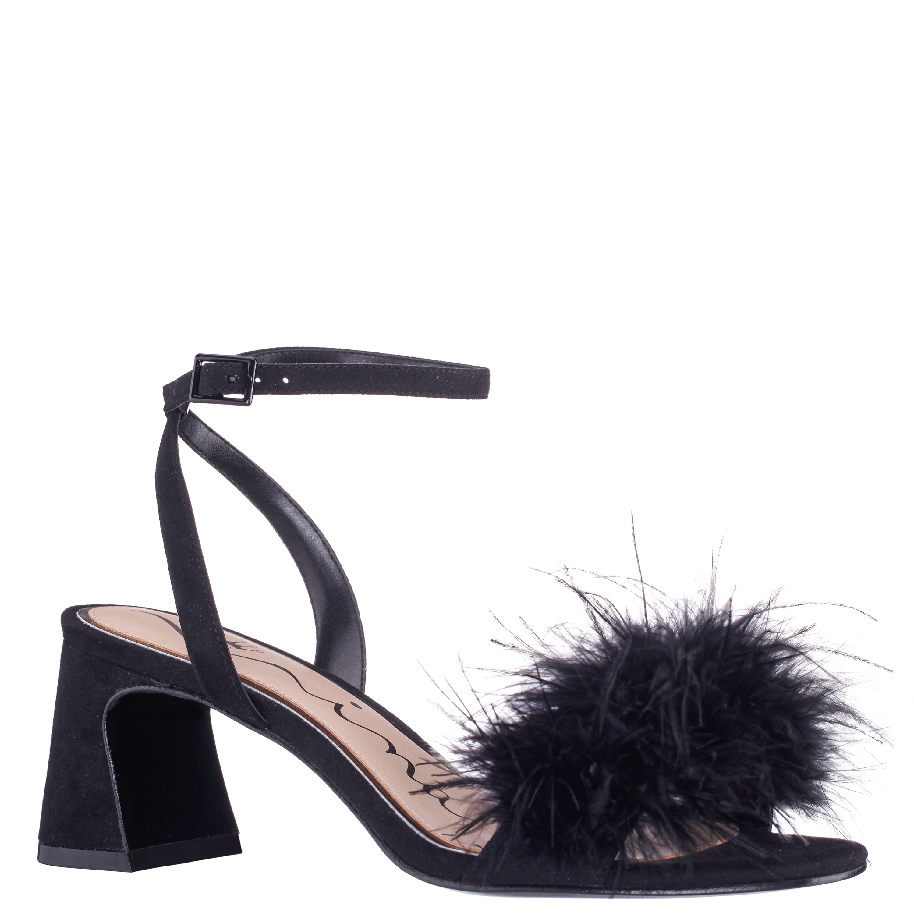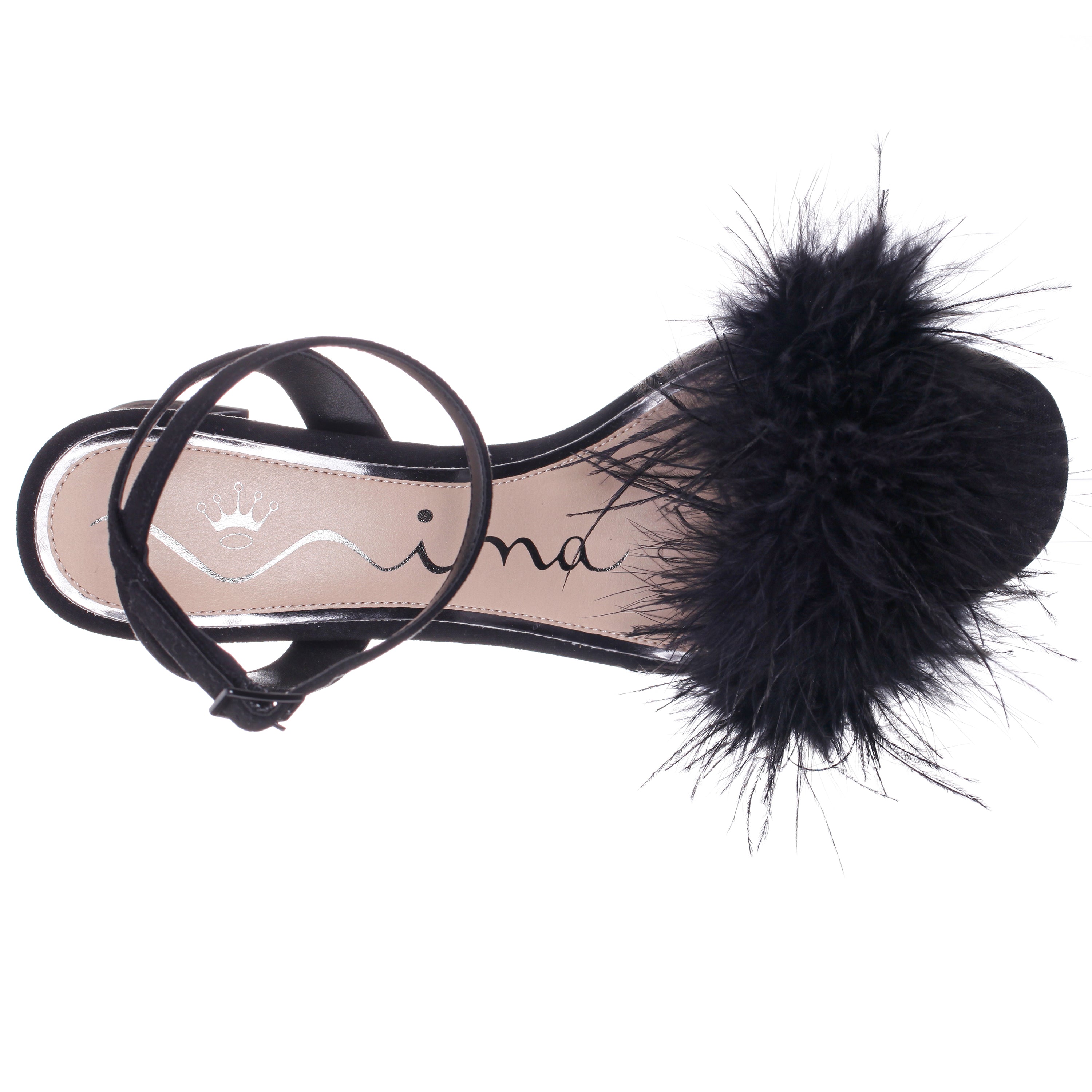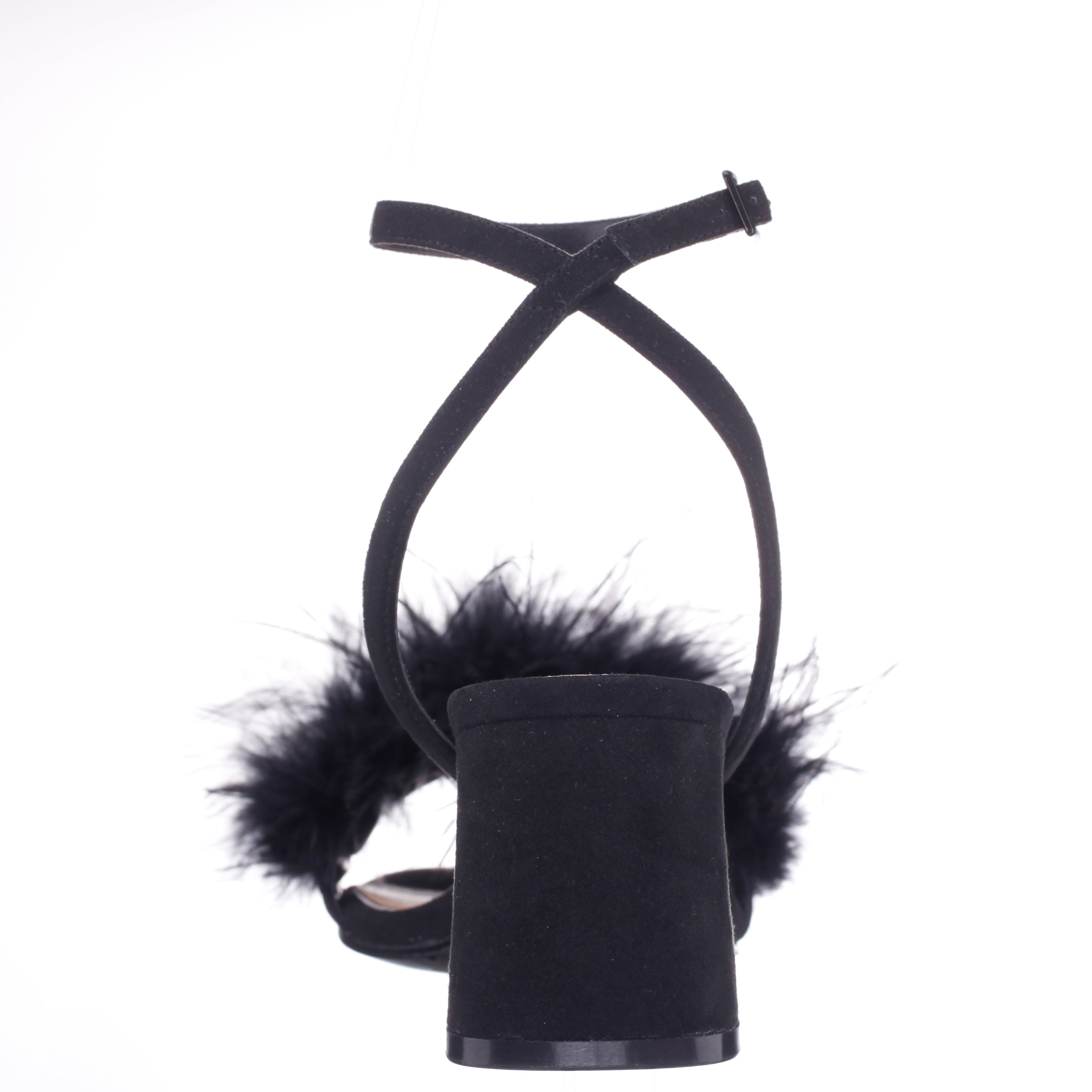 Step into one of the season’s biggest trends with BEV by Nina Shoes, a chic ankle-strap sandal adorned with a dramatic pouf of feathers across the vamp. Balanced by a delicate ankle strap and set on a comfortable 2-1/2" (63mm) mid block heel, this minimalist sandal is as fun as it is feminine. BEV captures the look of the season – bold, romantic, and soiree ready!