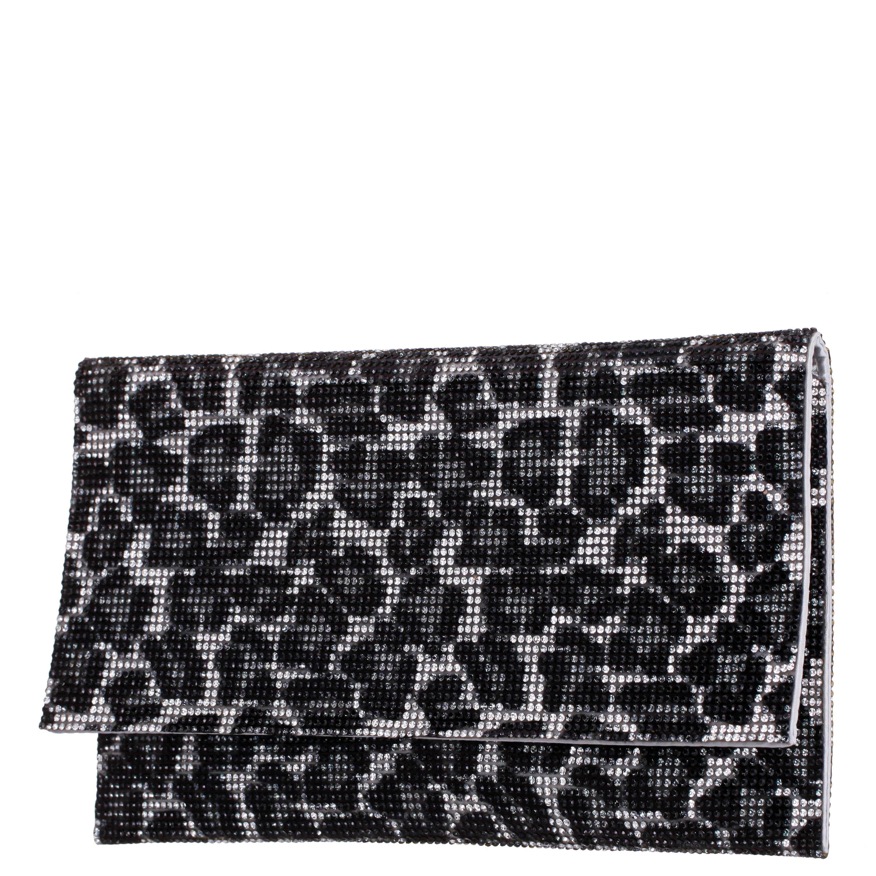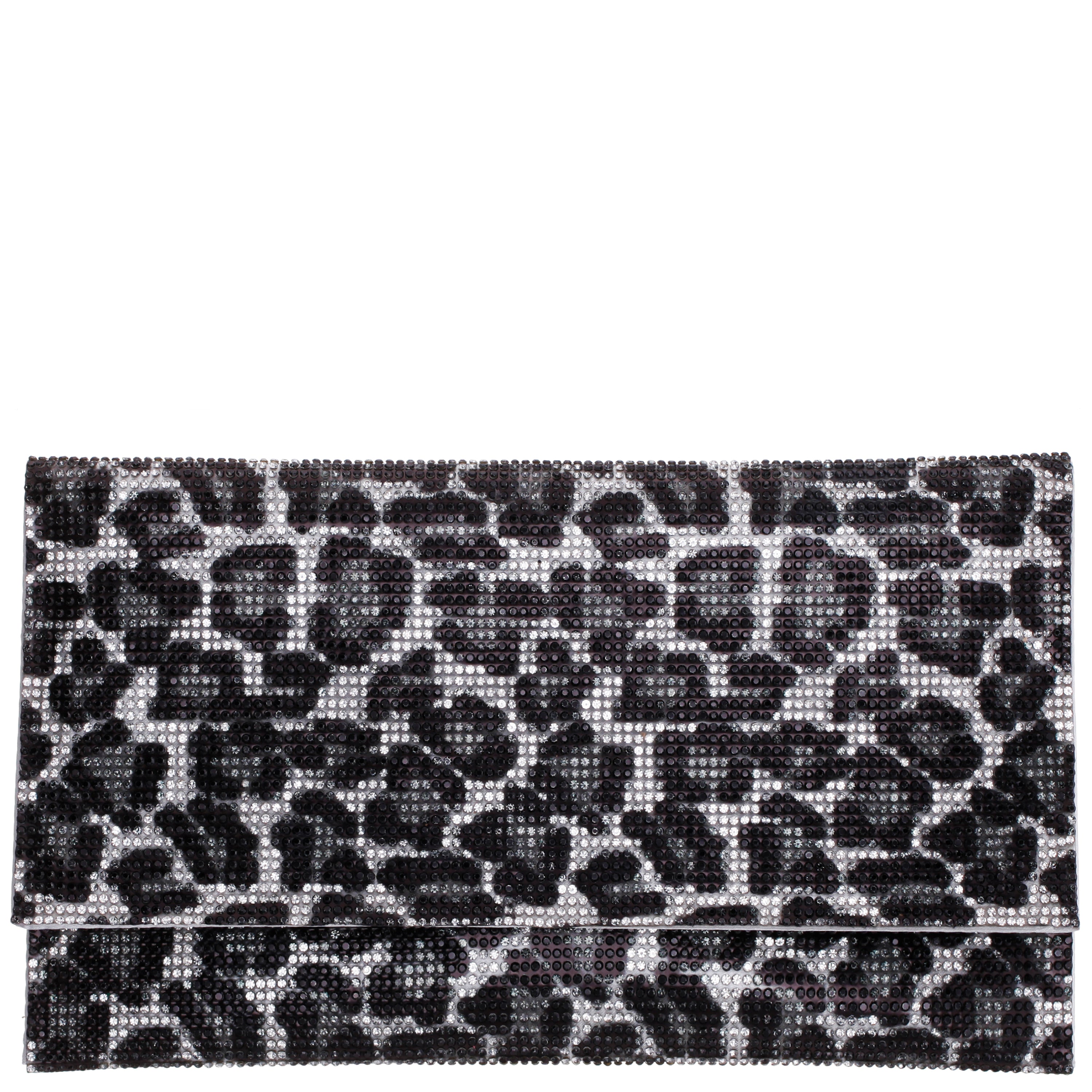 BLACK LEOPARD CRYSTAL BEADED ENVELOPE CLUTCH