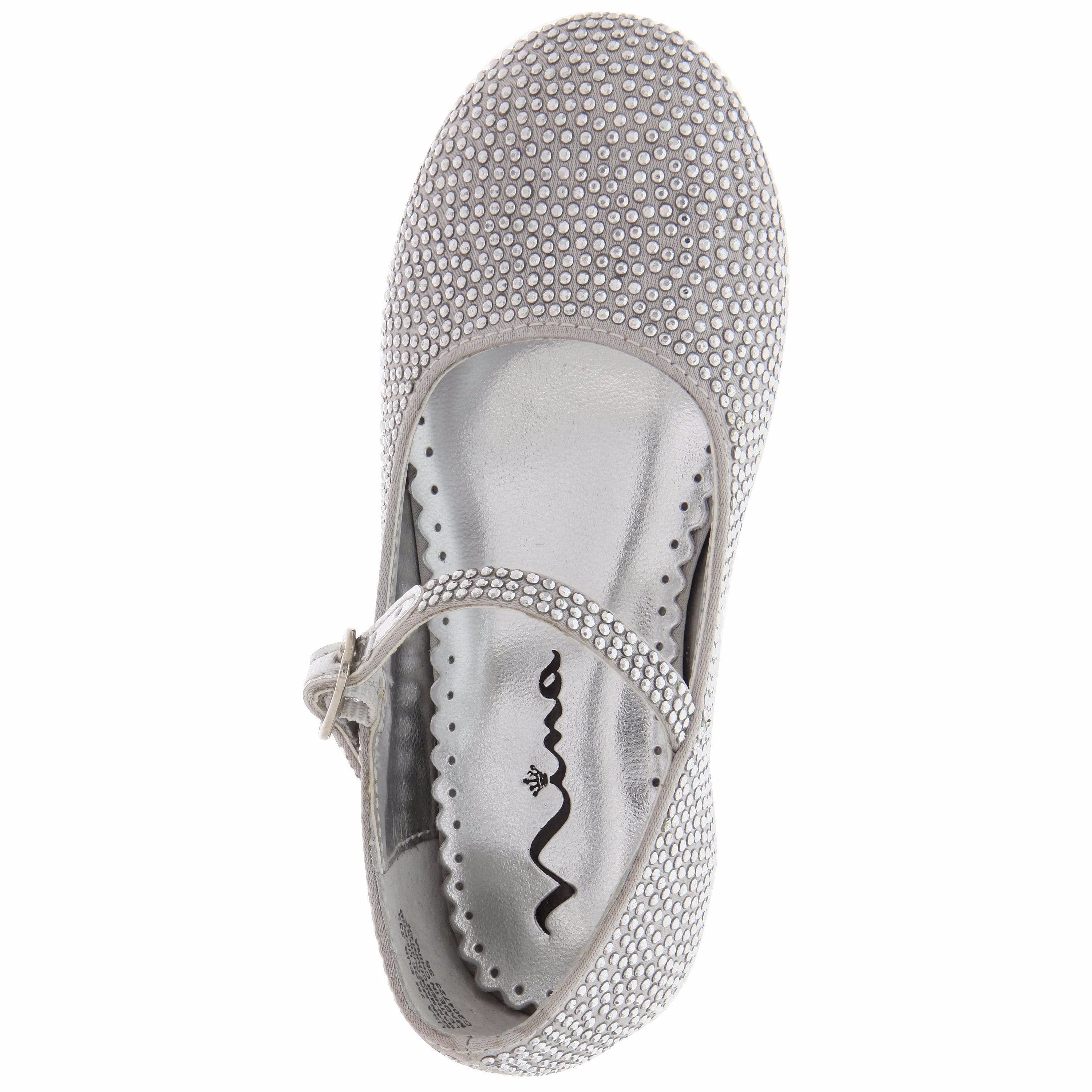 Chic and sparkling, ZELIA by Nina Shoes is a standout girls dress shoe that brings just the right amount of glamour to any outfit. Designed in a classic Mary Jane silhouette, this elegant style features shimmering satin with subtle metallic stud embellishments for a modern twist. With a comfortable low heel, a soft memory foam insole, and a flexible non-slip sole, ZELIA is perfect for celebrations, holidays, and stylish everyday moments.