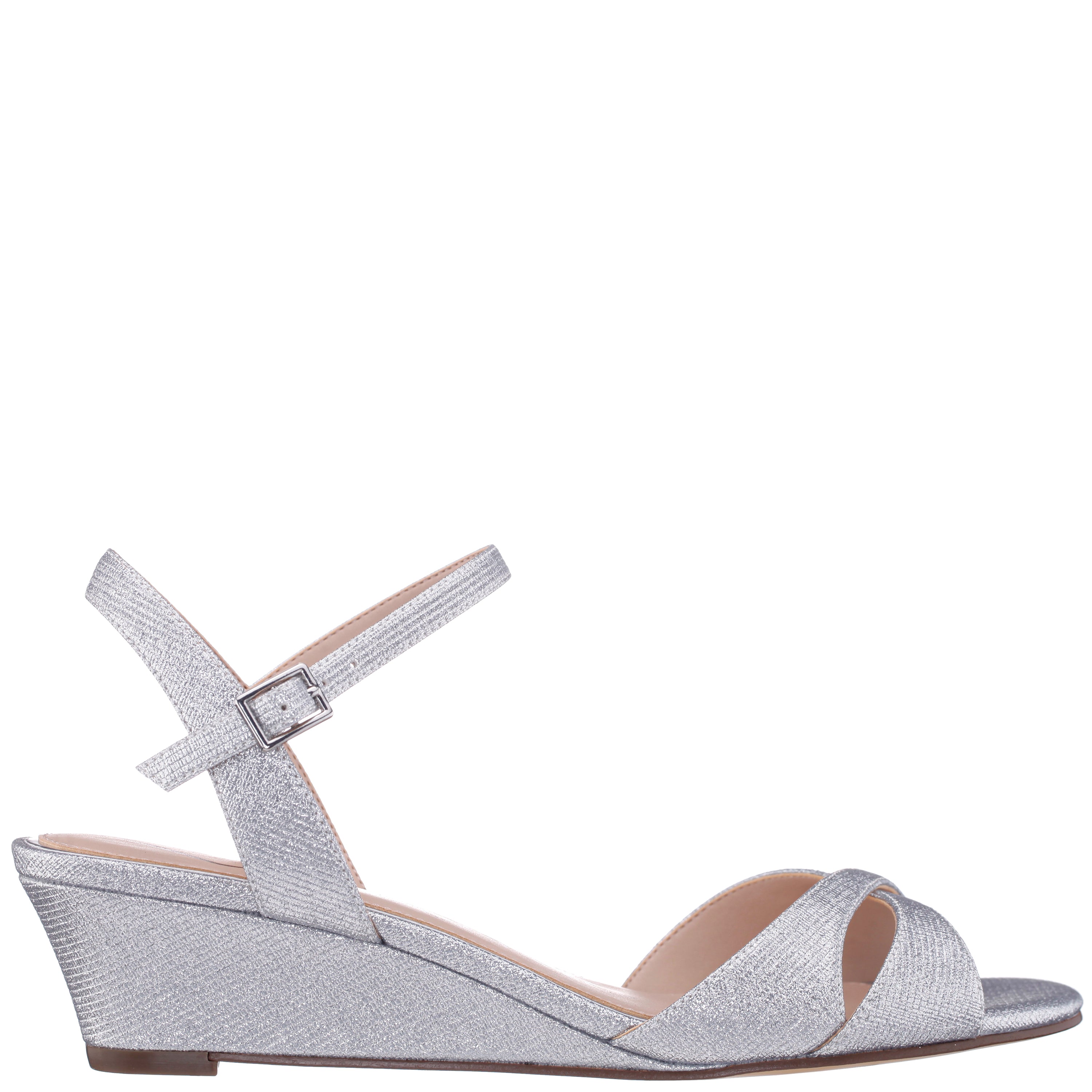 Elevate your look with Flora By Nina Shoes, a sophisticated wedge sandal designed for versatility and comfort. With shimmering materials and chic, criss-cross straps, this sandal effortlessly complements any occasion, from special events to casual outings. The slender, wrapped wedge adds a gentle lift, making Flora a perfect choice for all-day wear.