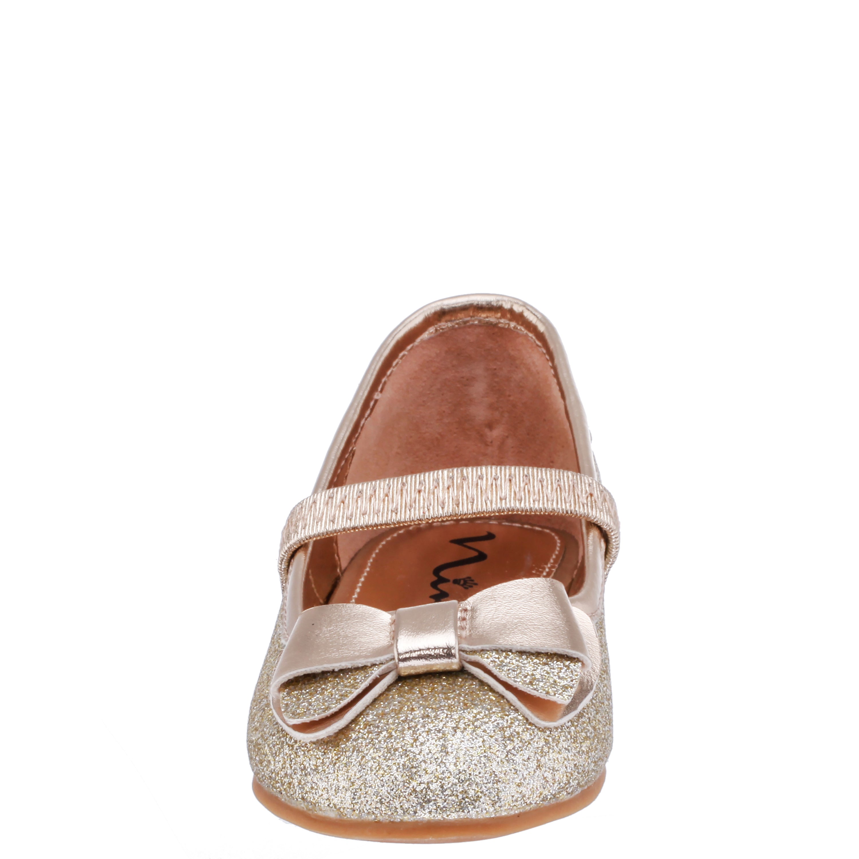 Shine bright with KENZEE by Nina Shoes, a glittering girls ballet flat that adds the perfect sparkle to any outfit. Covered in dazzling glitter and finished with a sweet bow detail, this charming flat is made to light up every room. Crafted with patent vegan leather, a cushioned memory foam insole, and a flexible non-slip sole, KENZEE delivers all-day comfort and shine for every special moment.