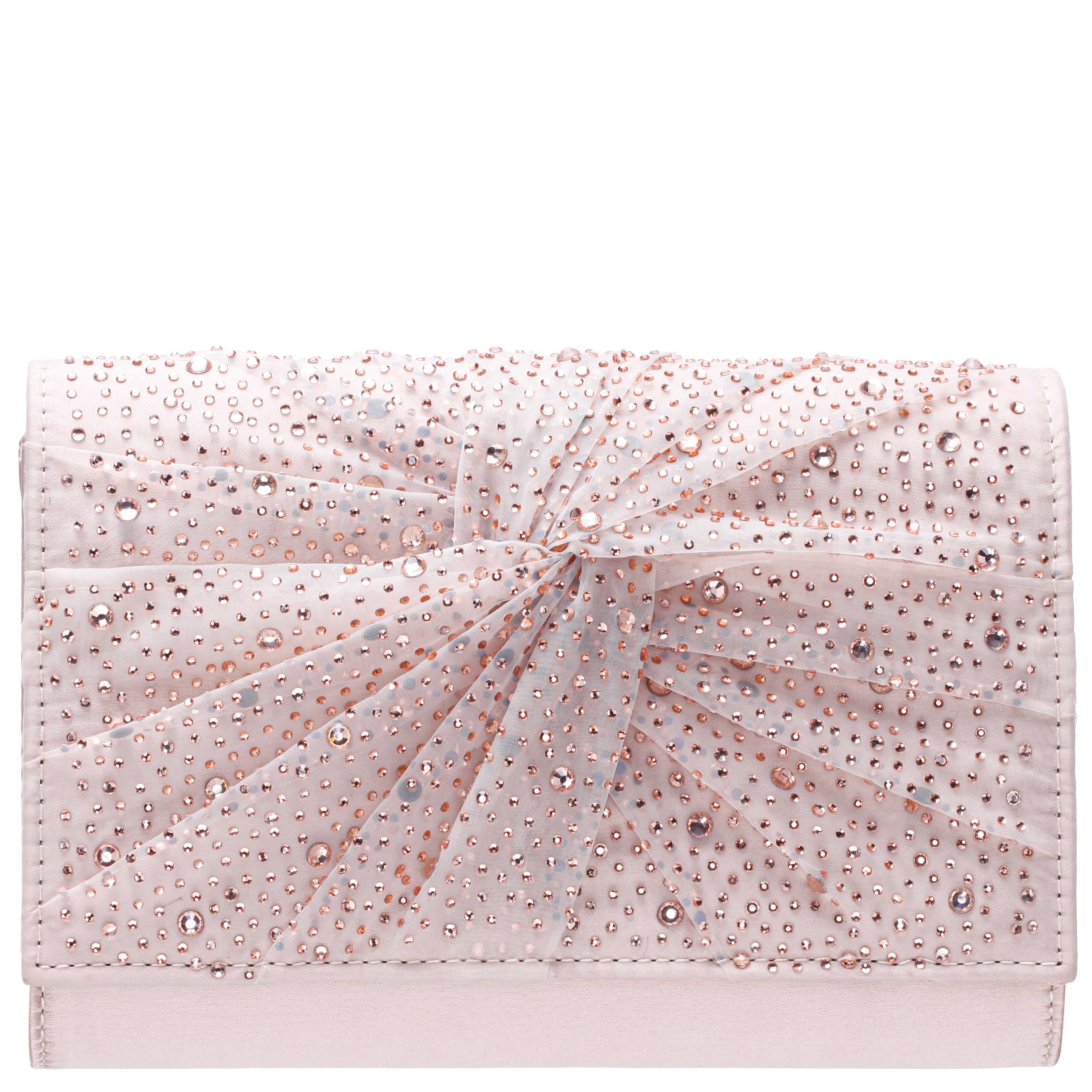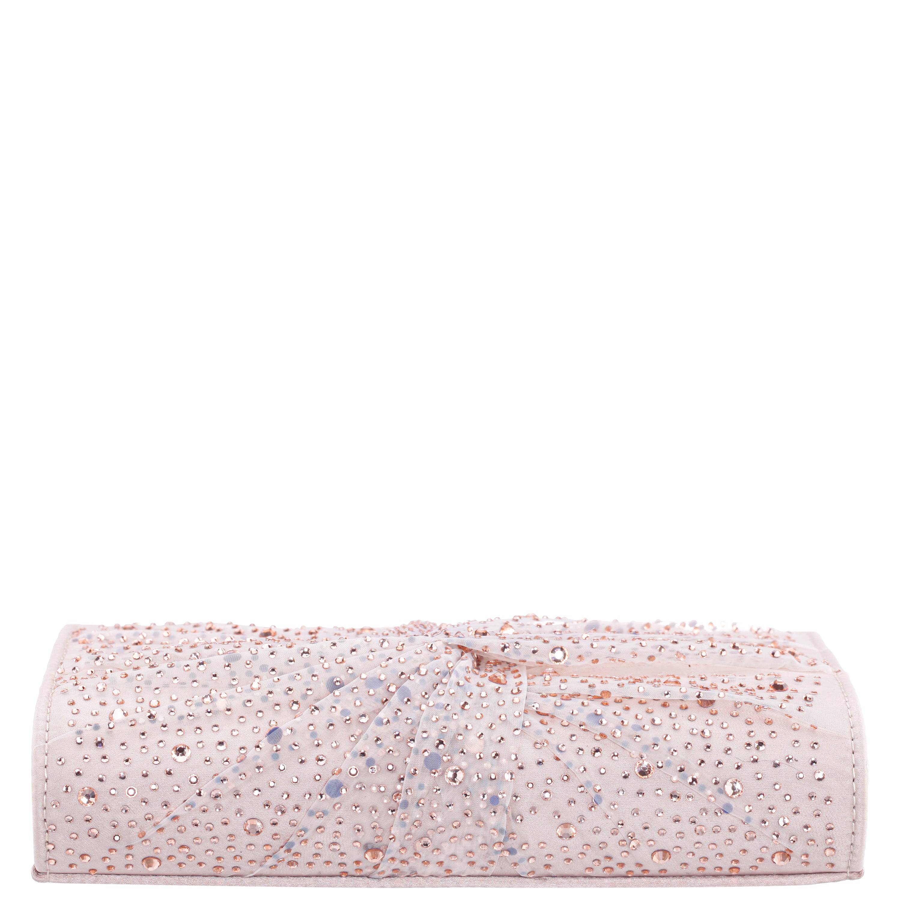 PEARL ROSE CHIFFON/SATIN/GLASS CRYSTAL CLUTCH