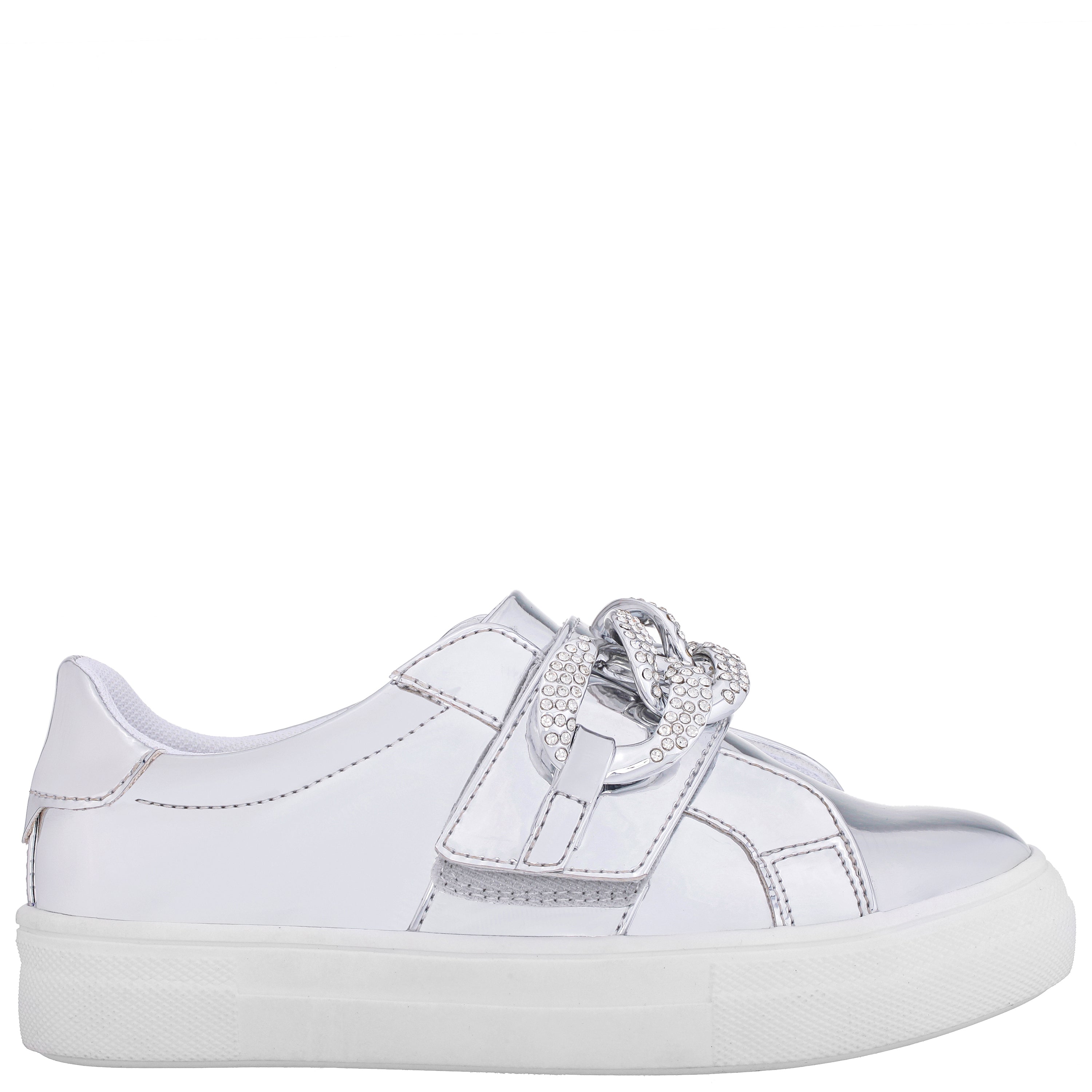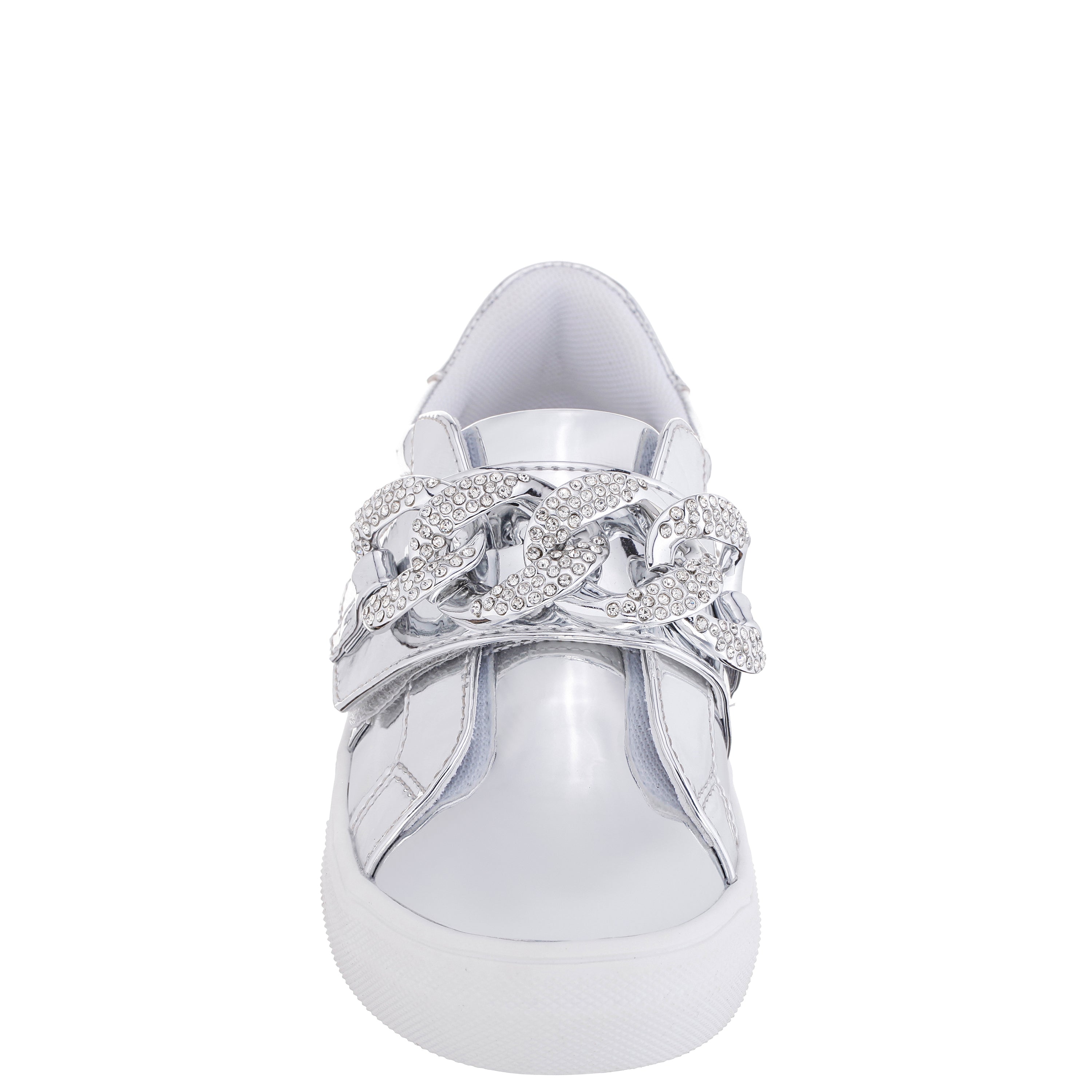 SILVER METALLIC LOW TOP SLIP-ON SNEAKERS