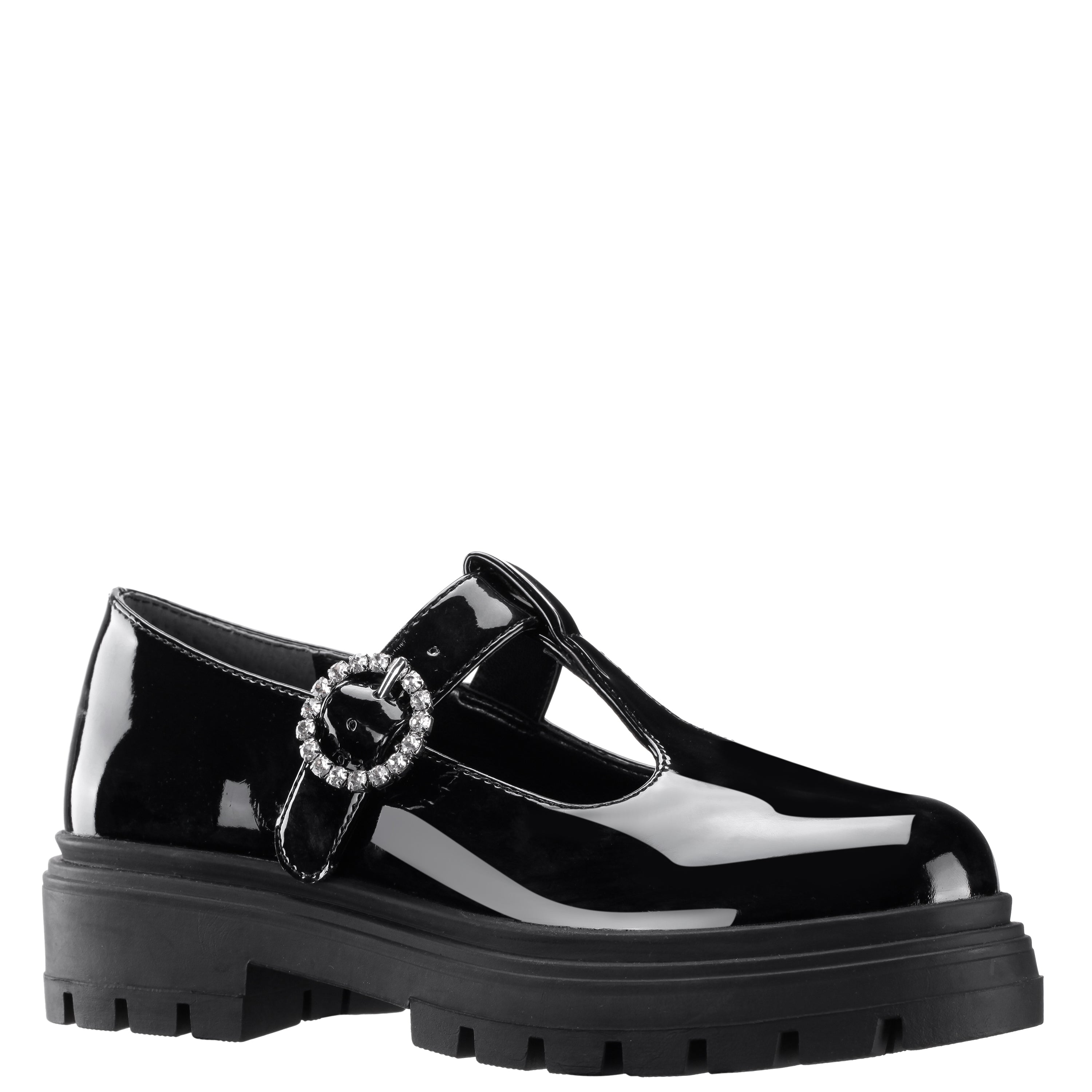 Patent Synthetic Leather T-Strap Functional Rhinestone Buckle Closure Cushioned Memory Foam Insole Flexible Non-slip TPR Outsole Imported Man-made Upper and Lining Material Heel Height= 1.5"