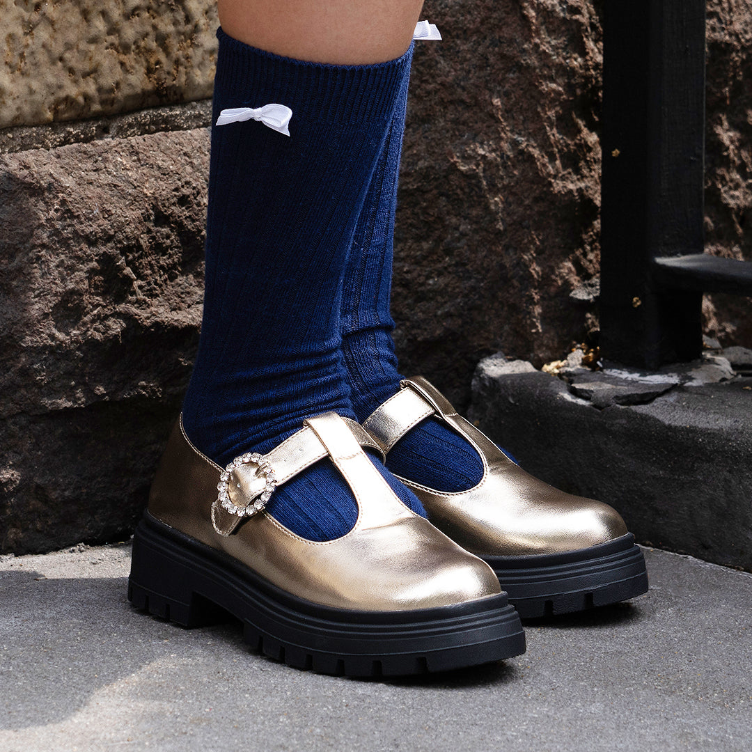 The adjustable strap with a captivating rhinestone buckle not only adds a touch of glamour but also allows for a customized fit. This T-strap design effortlessly combines style and practicality. The classic silhouette adds a touch of elegance to any school uniform, making your little one stand out with confidence and grace.