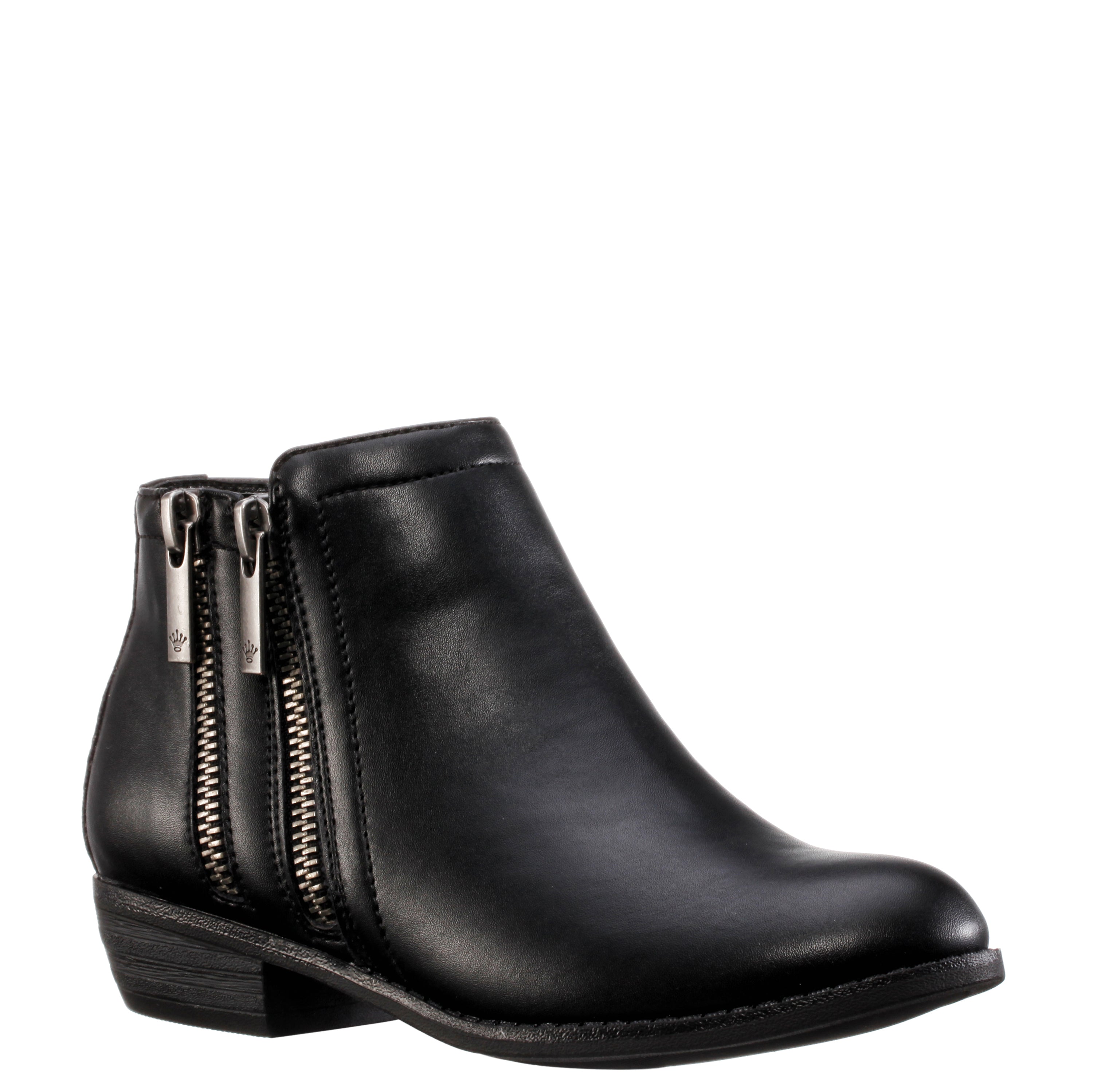 Our TABARA-T ankle bootie with dual metal zipper detailing will quickly become one of her fall favorites. This crackle metallic or smooth boot with a functional zipper is a great transitional style.