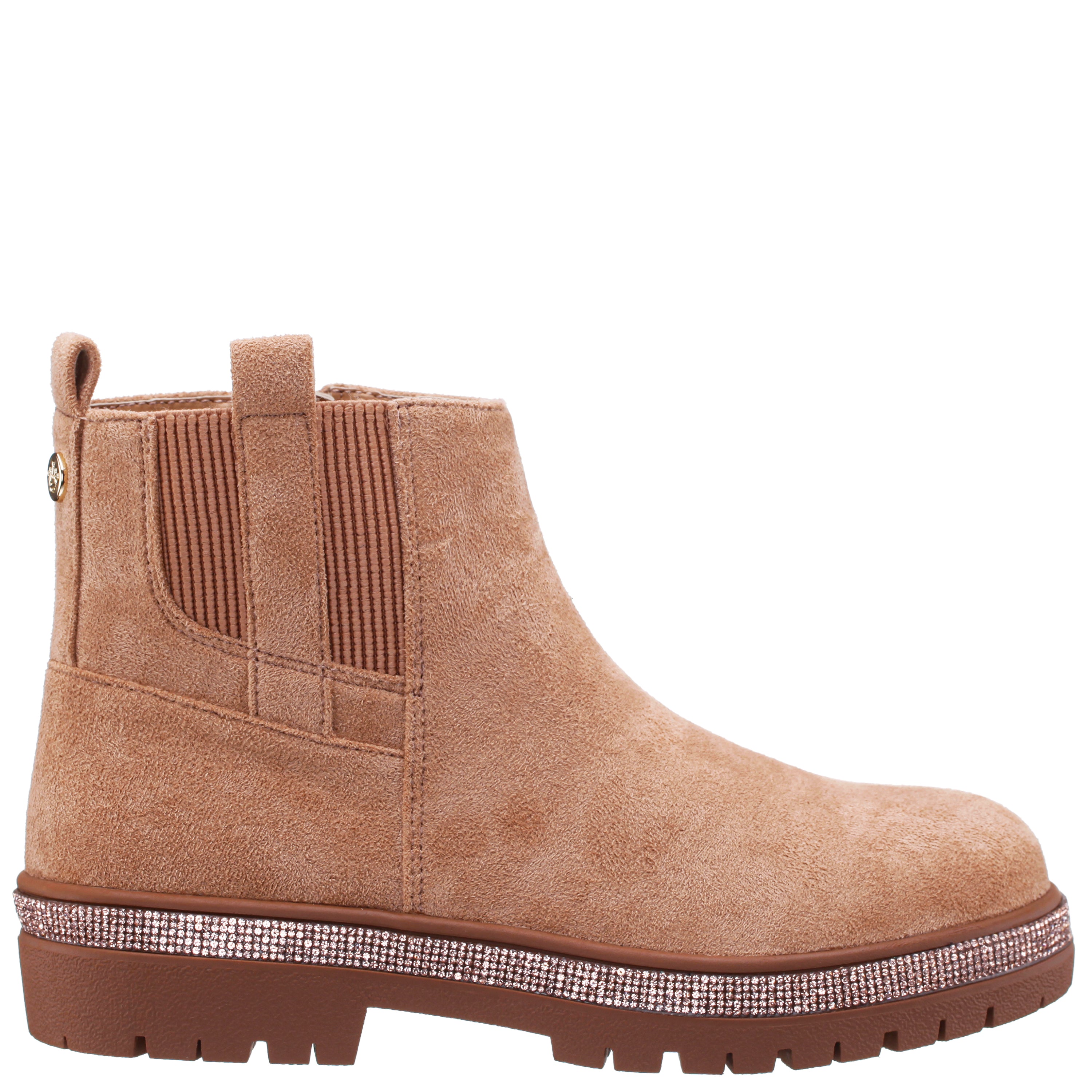 Featuring a glitter welt and elastic gore for added flair and flexibility, these booties are a charming addition to any outfit. With the convenience of an inside zipper, they're as easy to wear as they are stylish. Let her step out in shimmering confidence with these adorable booties, perfect for adding a touch of magic to any outfit.