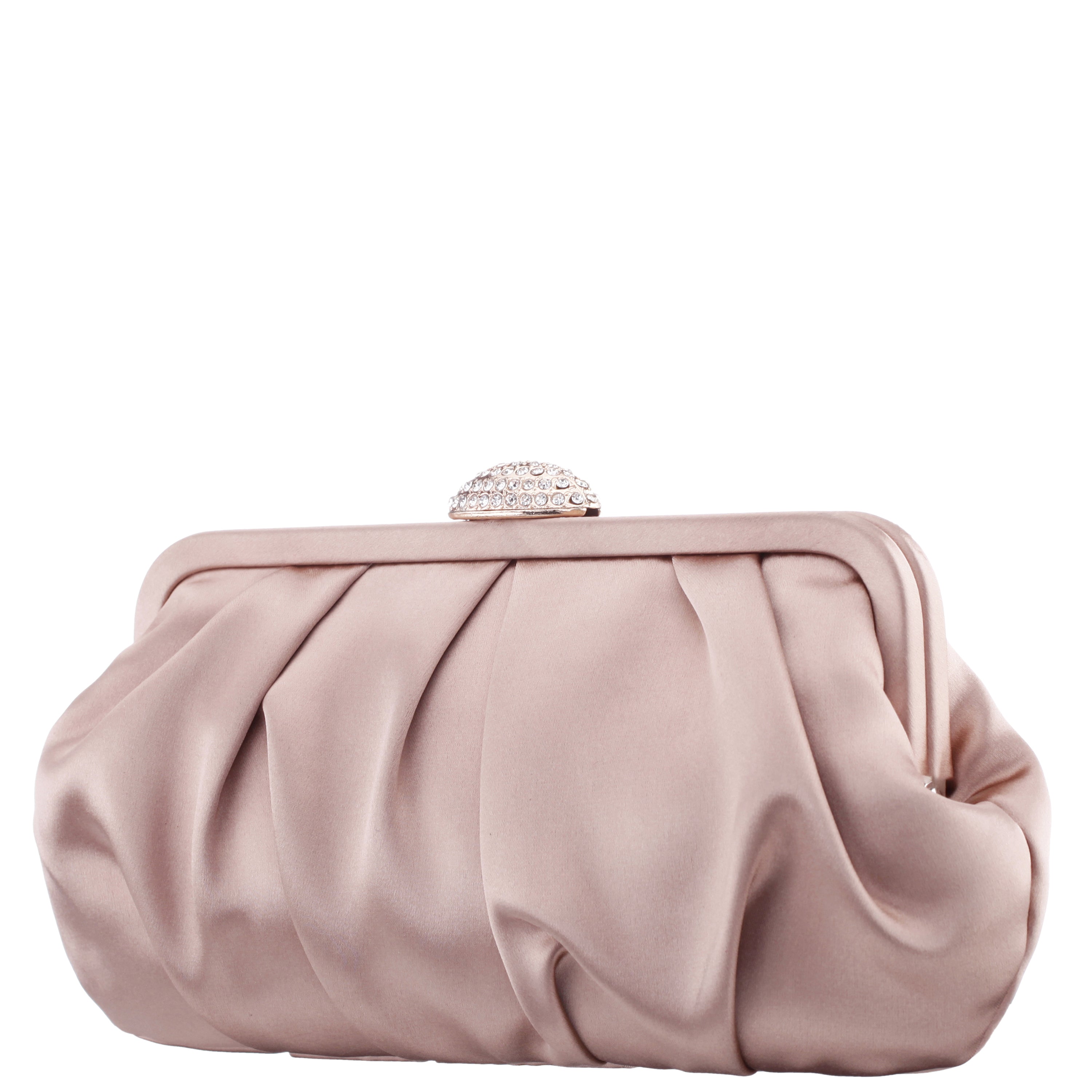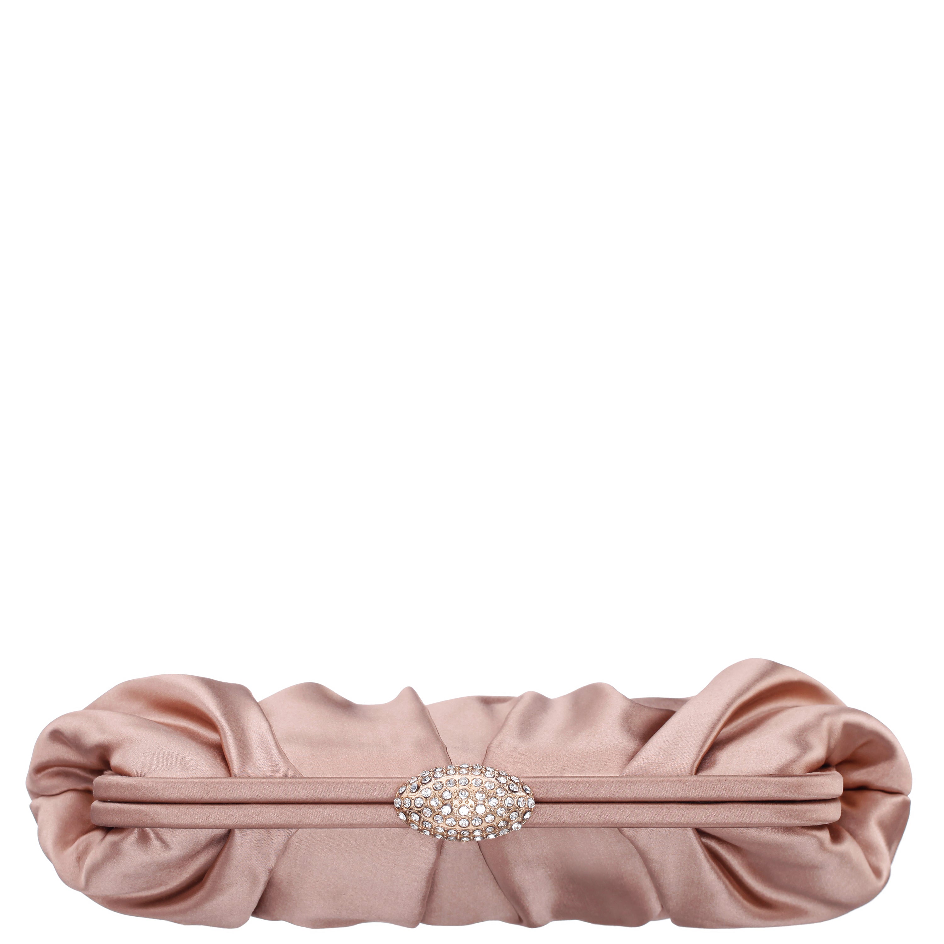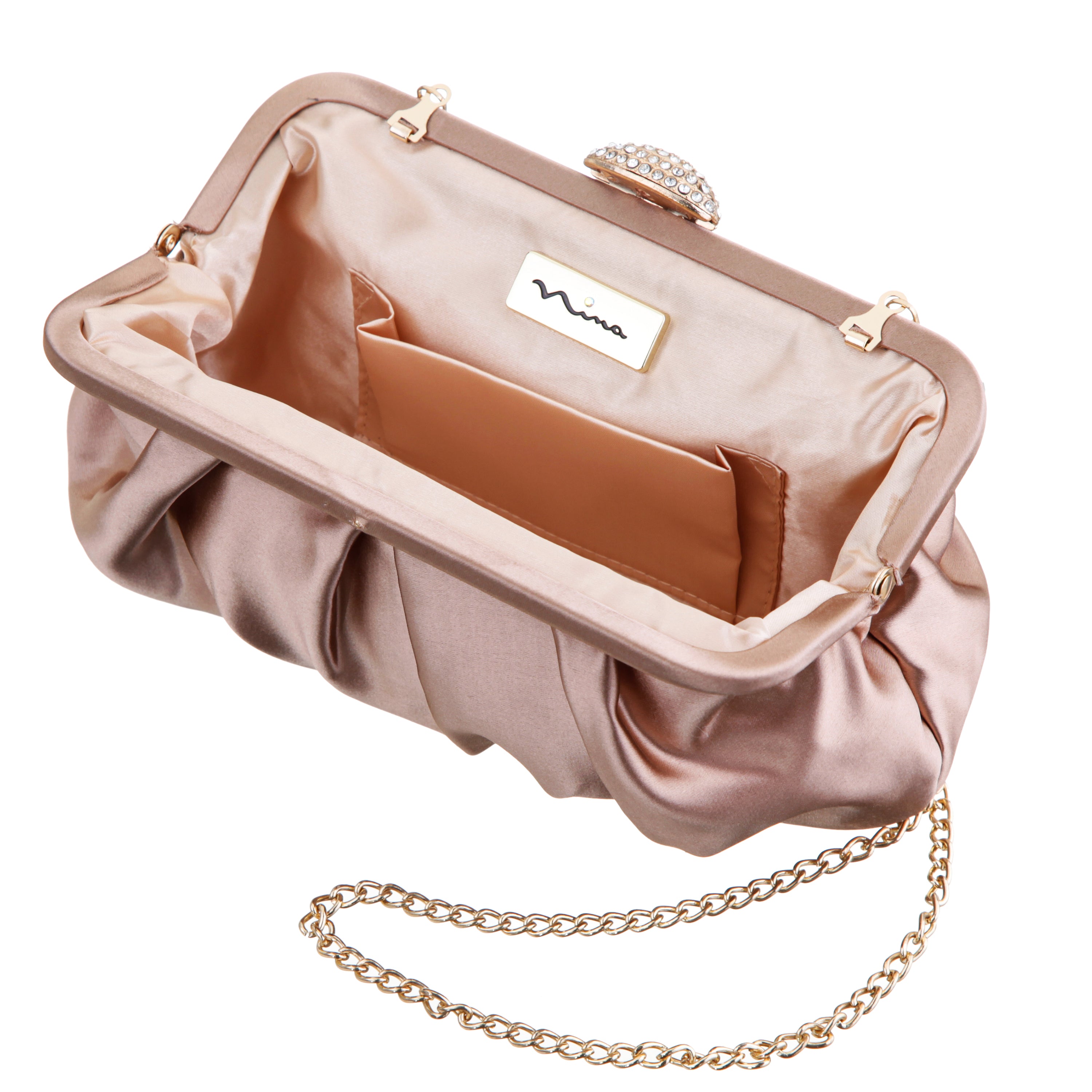 CONCORD is the epitome of understated elegance, offering a classic satin frame clutch with a pavé crystal clasp for a refined touch of sparkle. Its pleated satin body exudes sophistication, making it the perfect companion for weddings, formal events, and special evenings out. Designed with versatility in mind, this clutch can be carried as a sleek handheld bag or worn as a shoulder bag using the 22" drop-length flat curb chain strap. The satin synthetic fabric lining and back interior wall pocket provide both luxury and practicality, ensuring your essentials stay organized. Finished with a lift-lock closure, CONCORD by Nina is an effortlessly timeless piece that complements any elegant ensemble. For complementary styles, explore our satin shop or browse our newest arrivals.