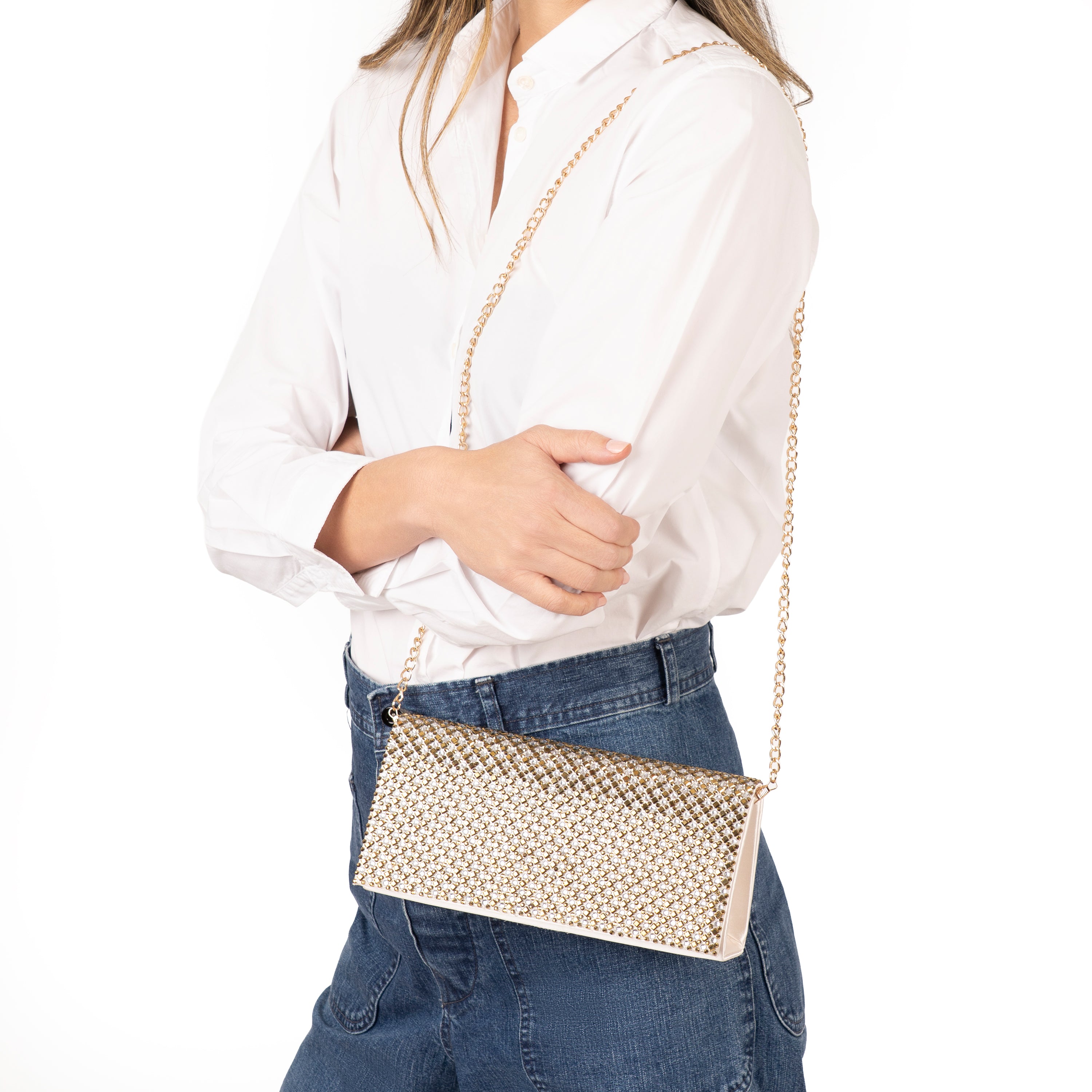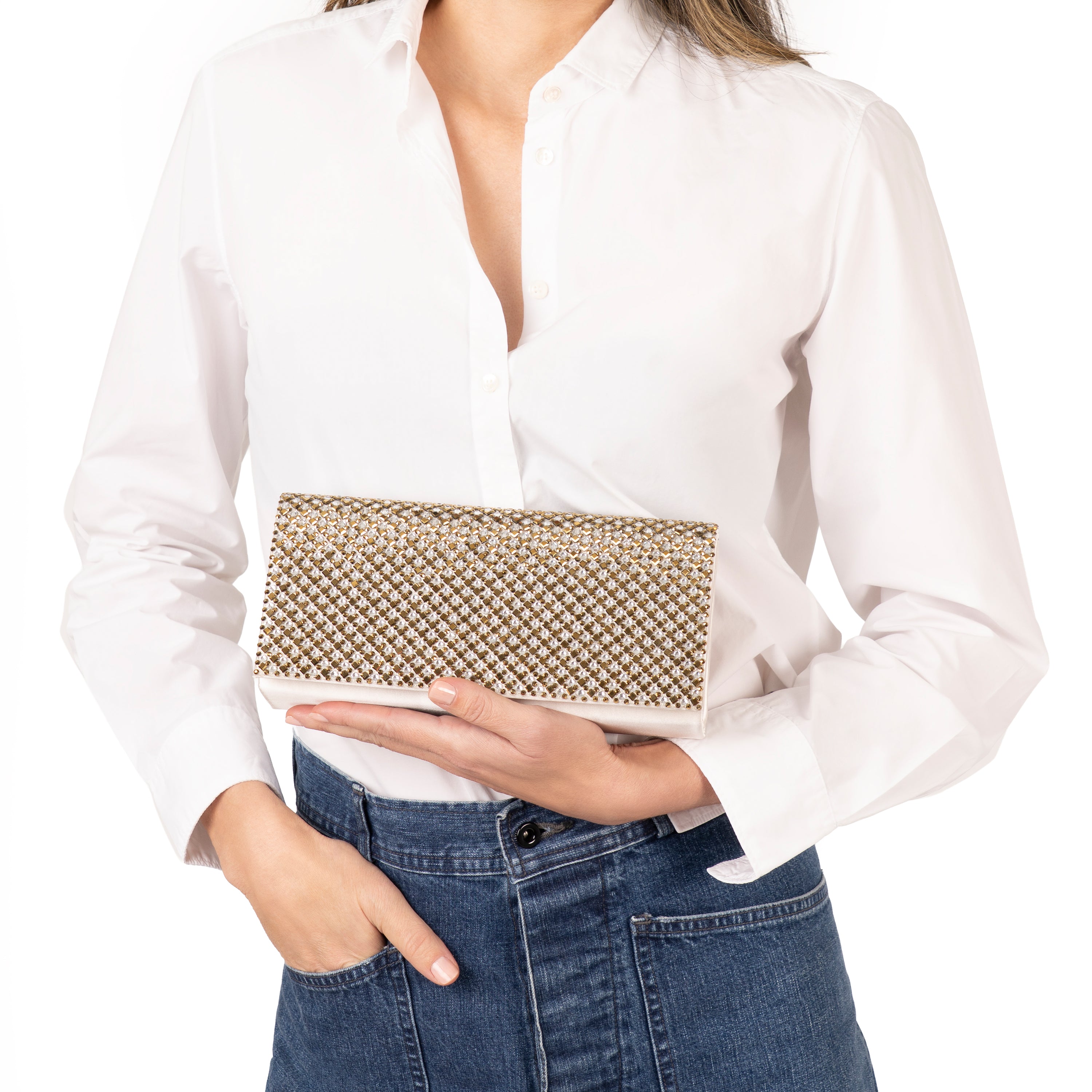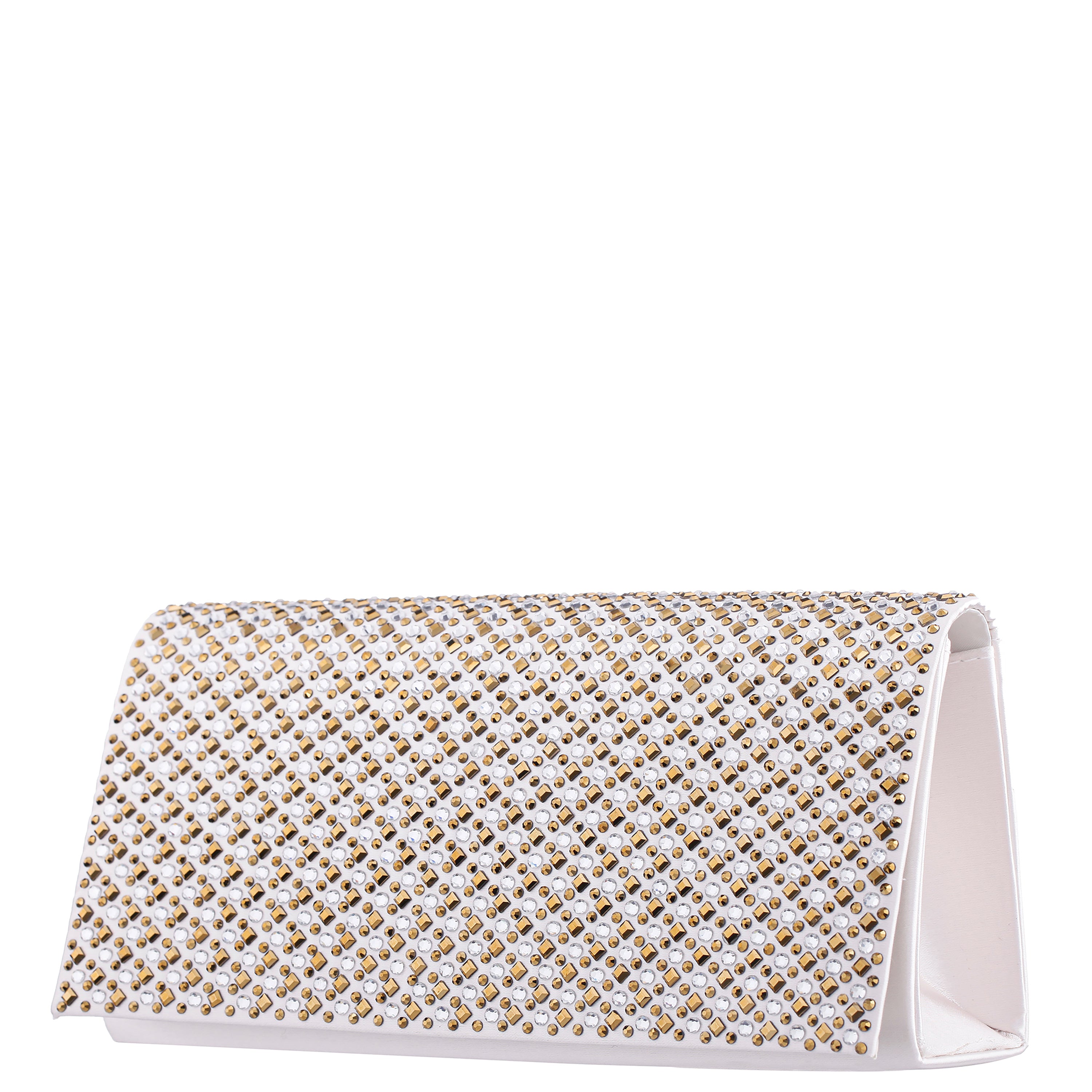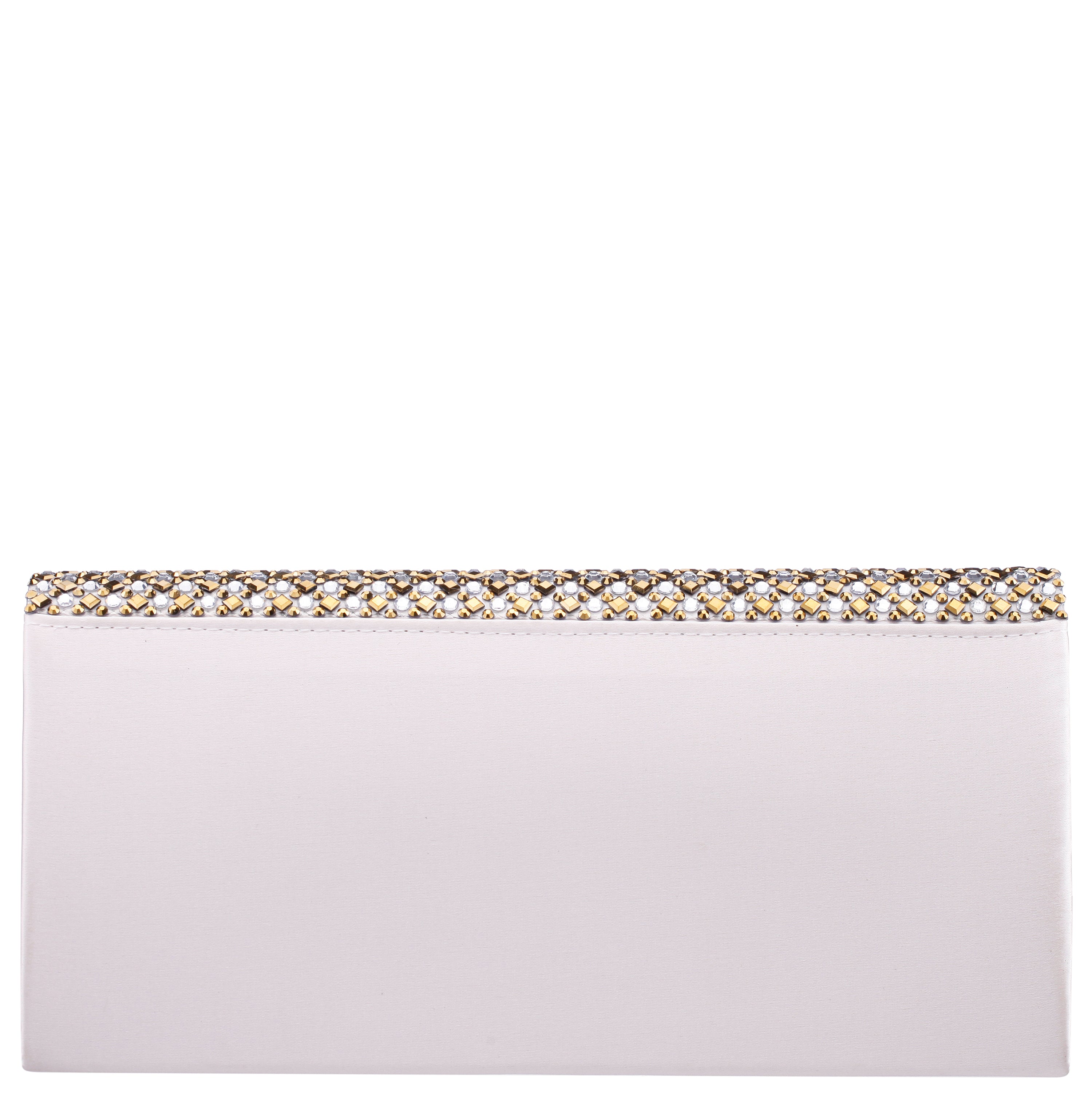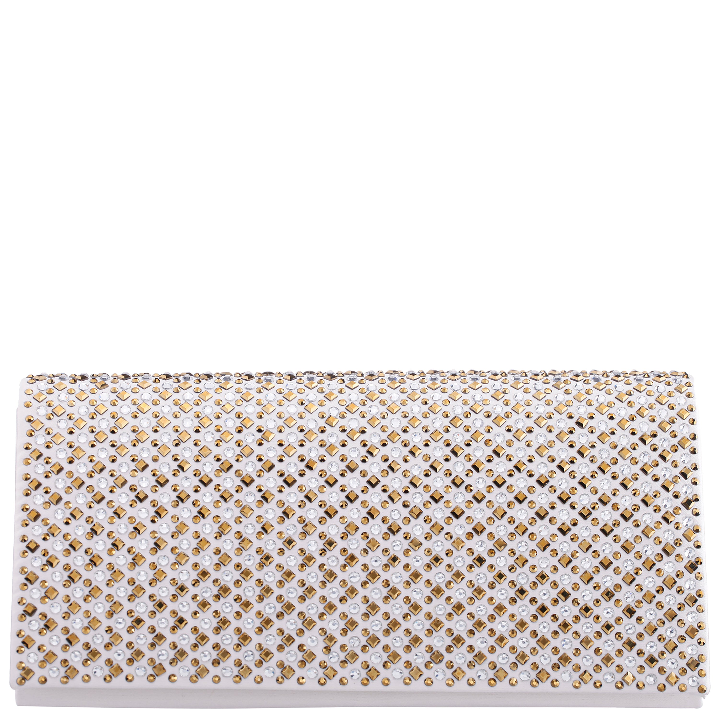 IVORY GLASS CRYSTAL / SATIN FOLDOVER CLUTCH