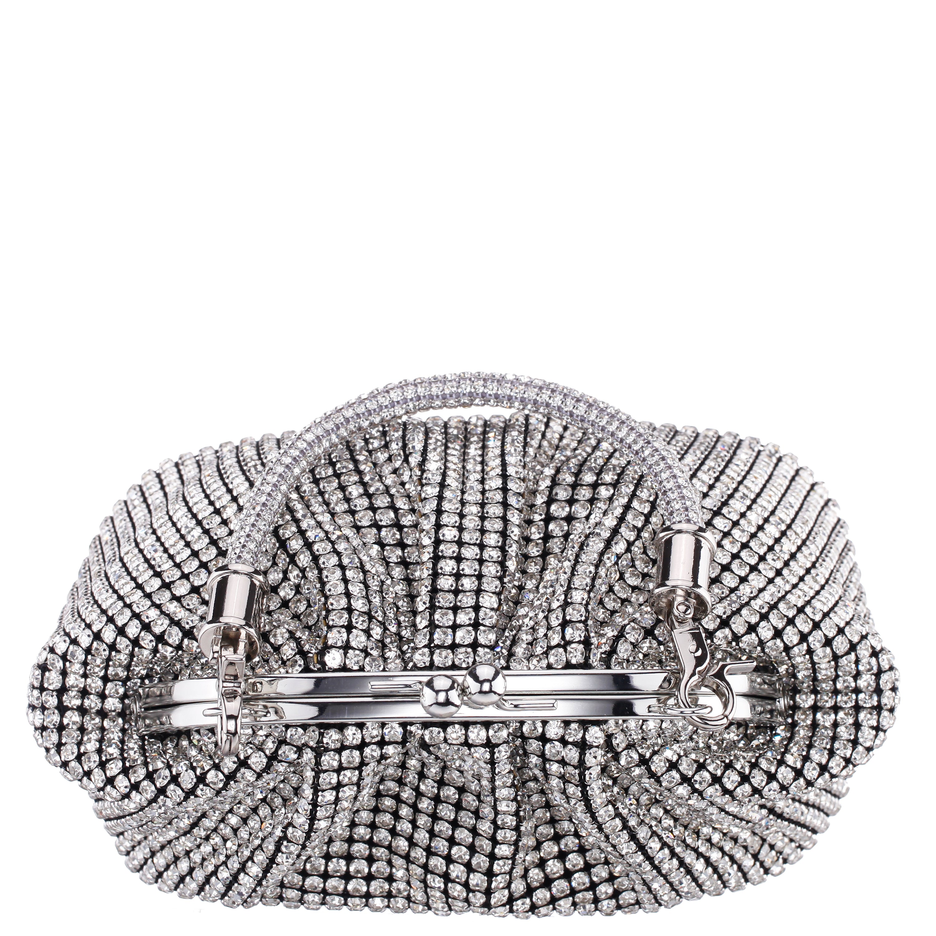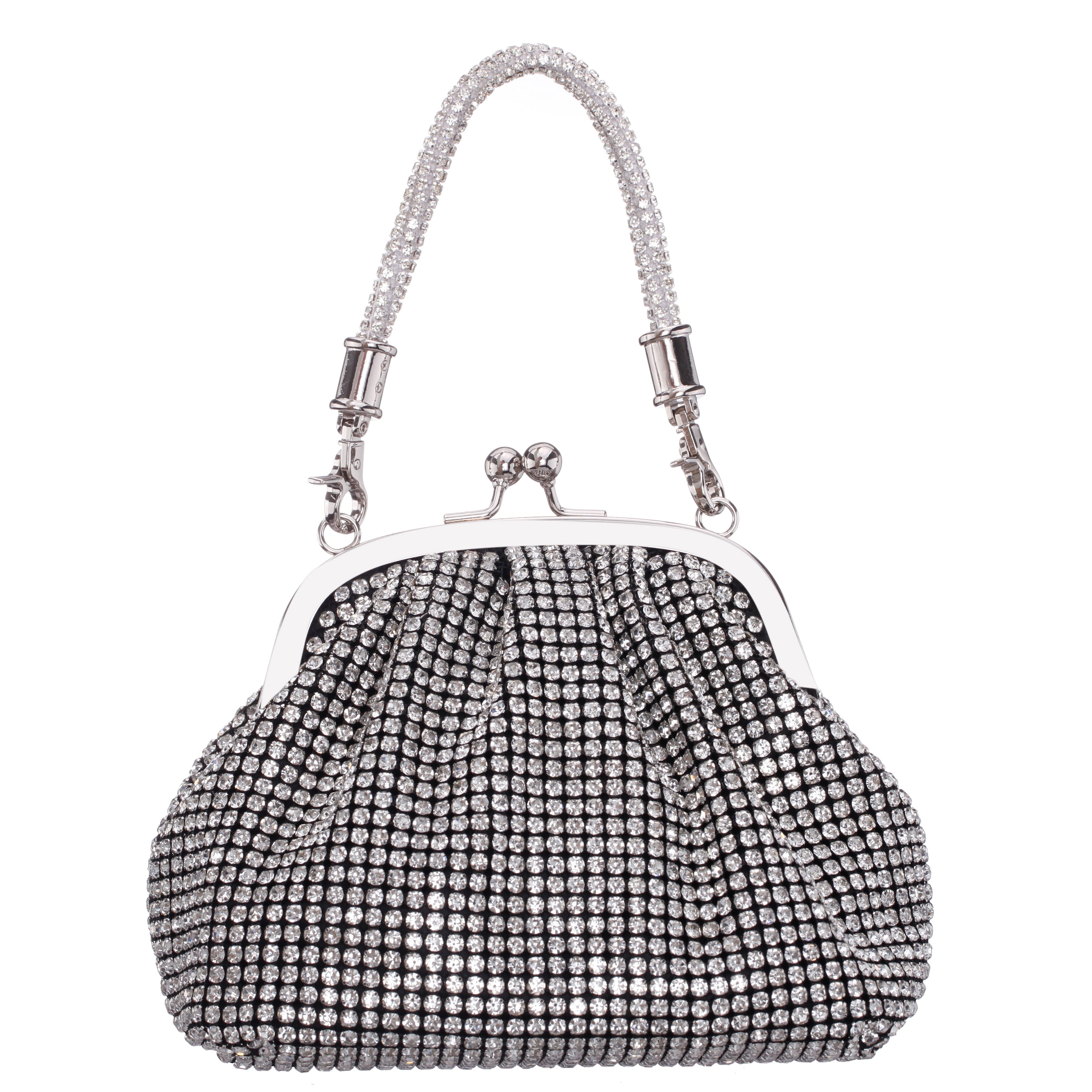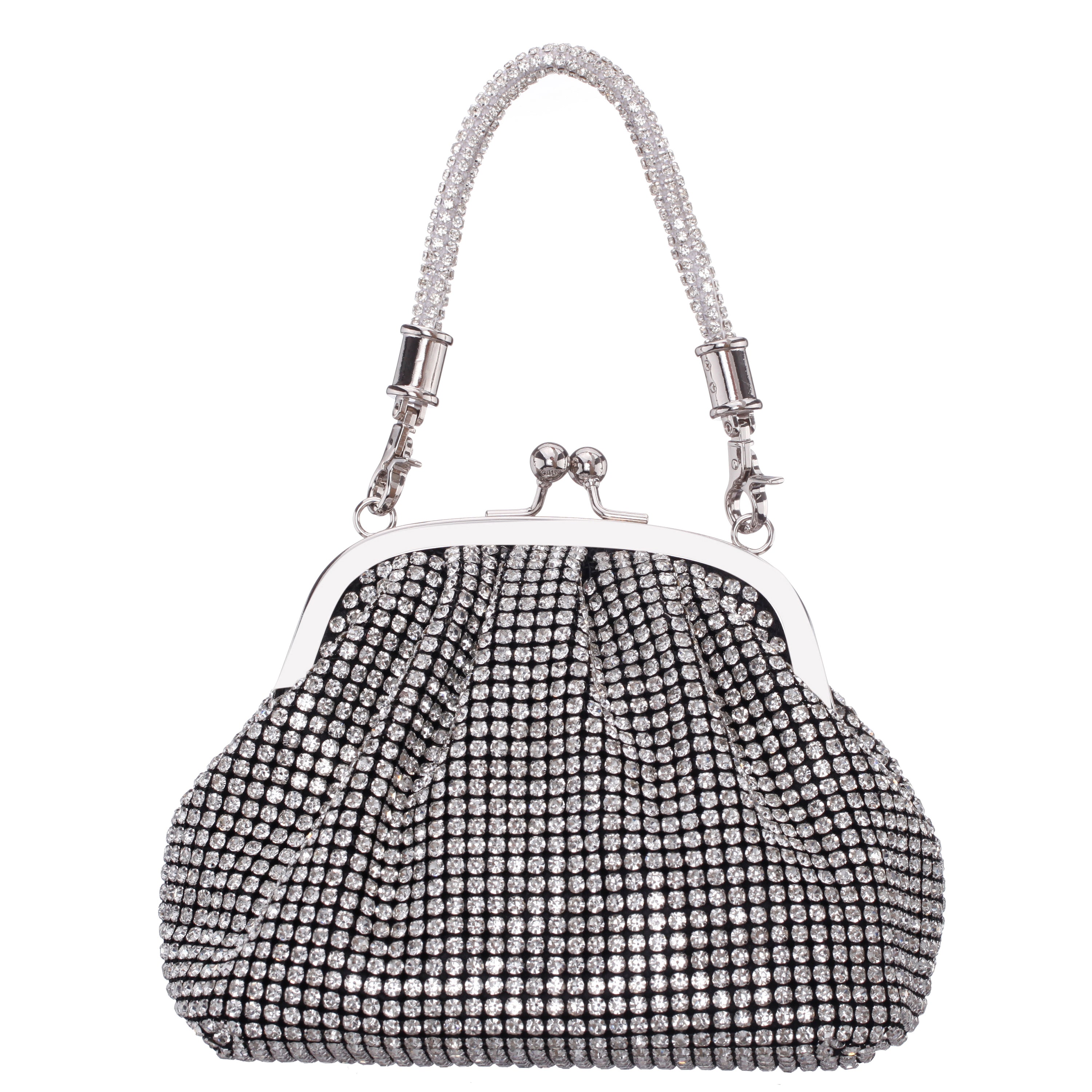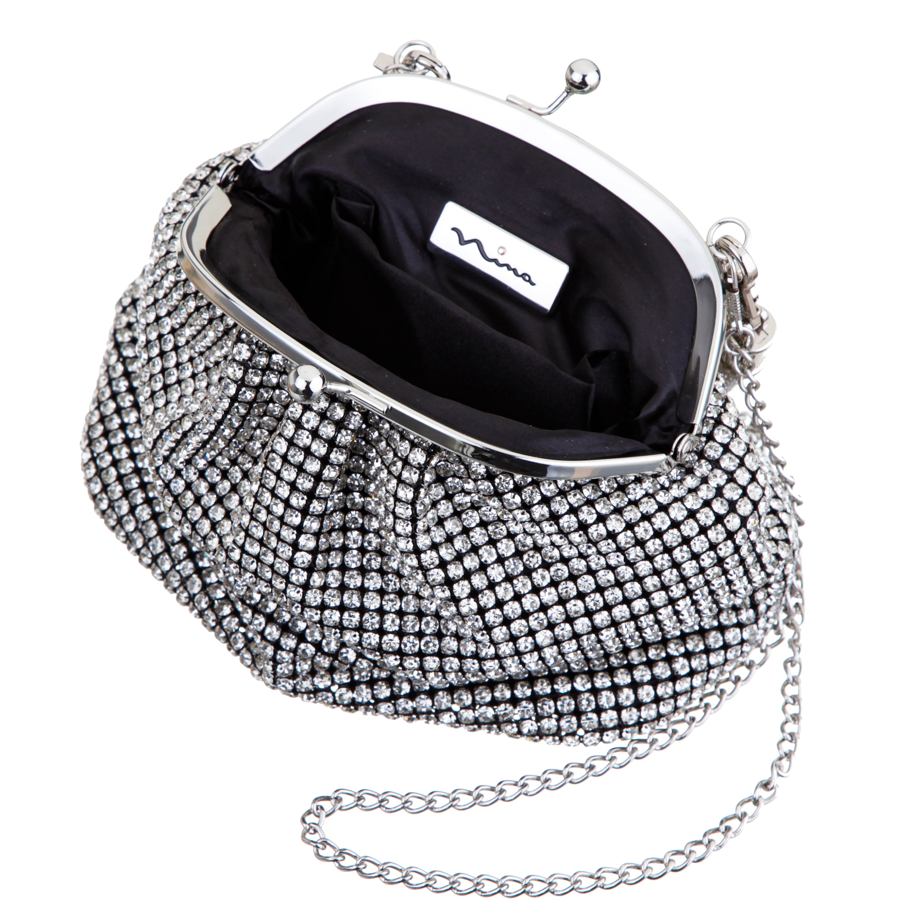 The KIARA by Nina is an irresistible blend of vintage glamour and modern sparkle, designed to dazzle from every angle. Its sculpted silhouette and crystal mesh handle offer a high-shine statement, while the kiss-lock closure adds timeless charm. Whether you’re attending a wedding, black-tie affair, or festive evening event, KIARA elevates your ensemble with chic elegance. The satin-lined interior features a back wall pocket for organization, and the 18” drop-length chain strap lets you wear it hands-free or as a stylish clutch. With every detail crafted for sophistication, the KIARA by Nina is a radiant finishing touch you’ll reach for again and again.