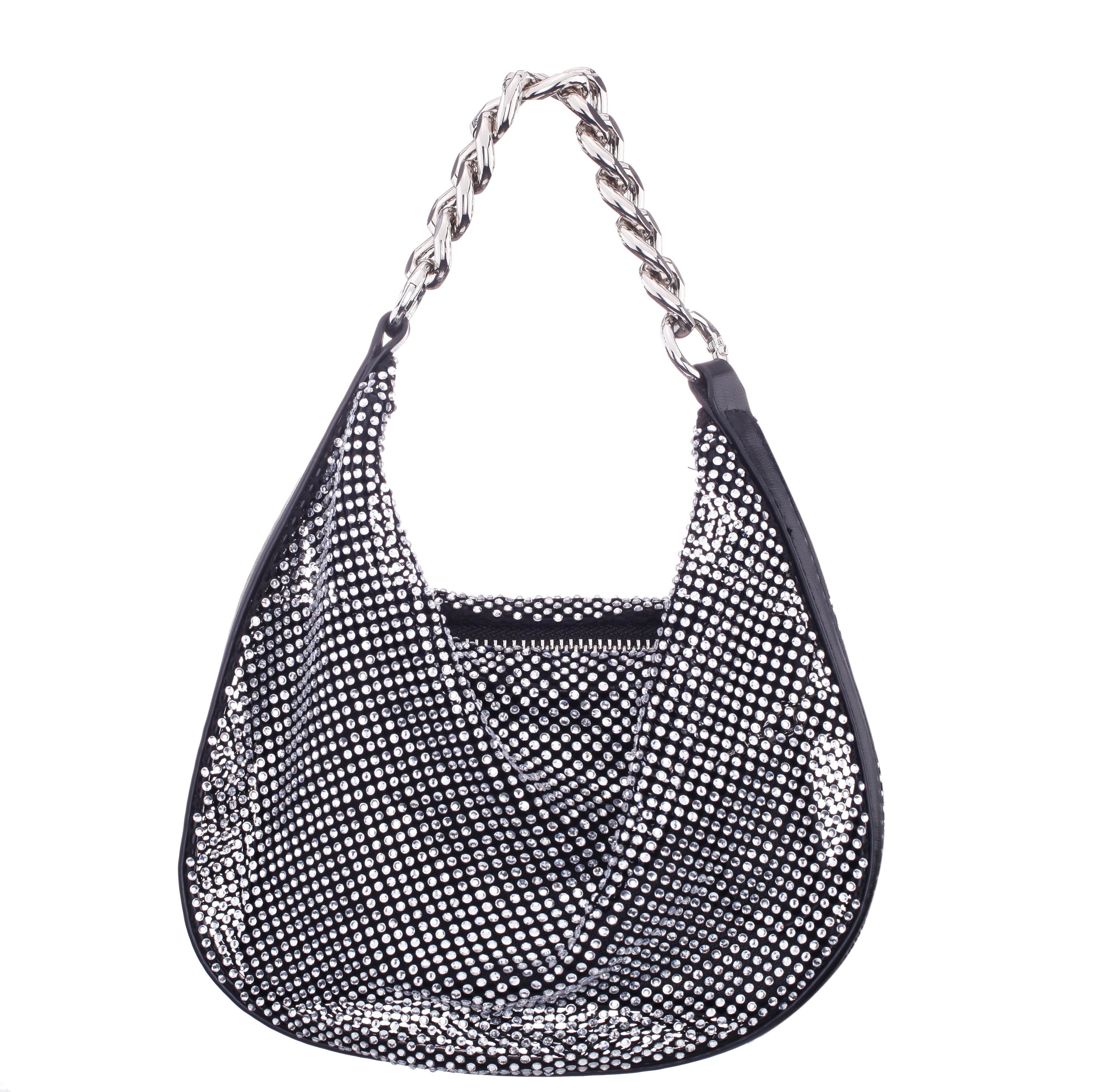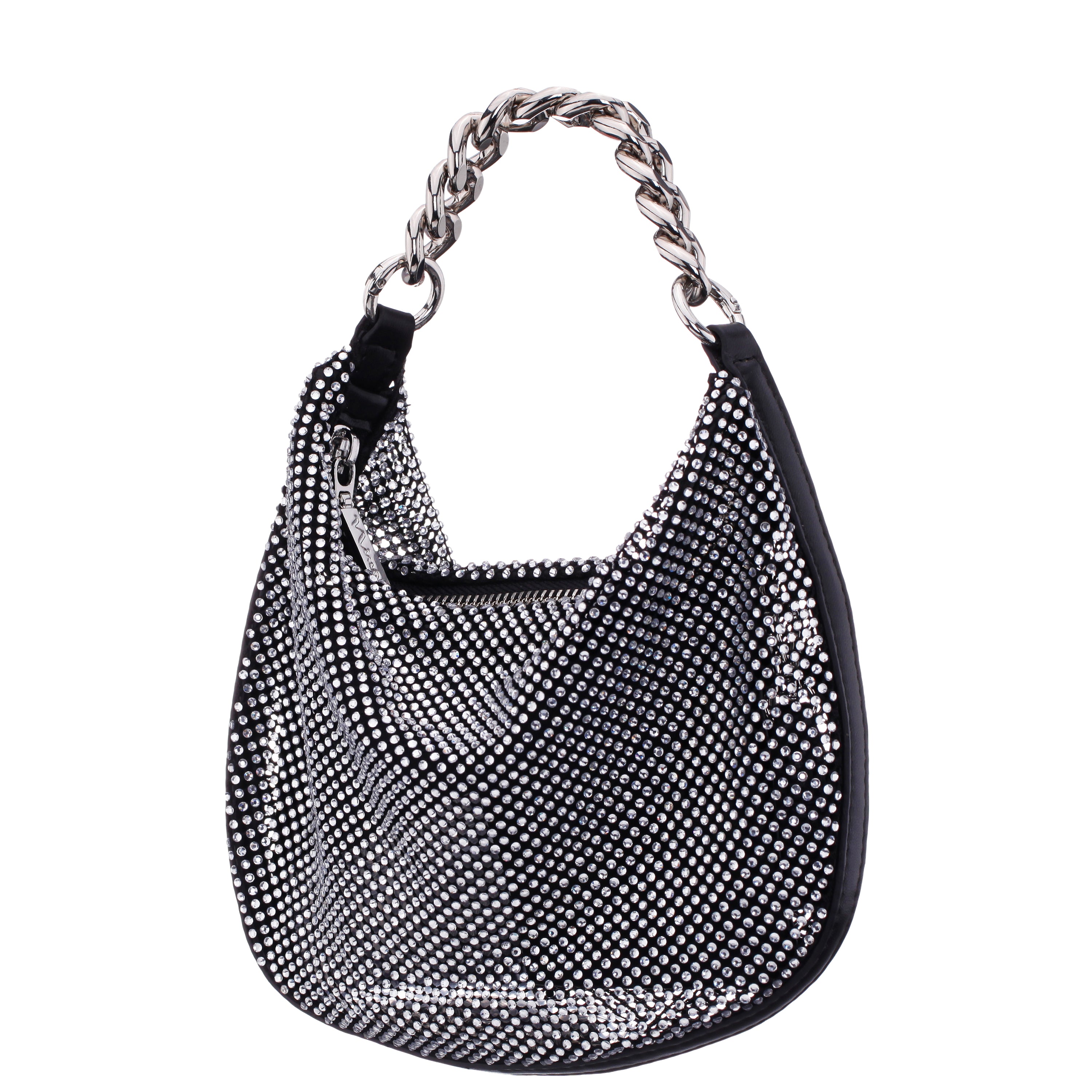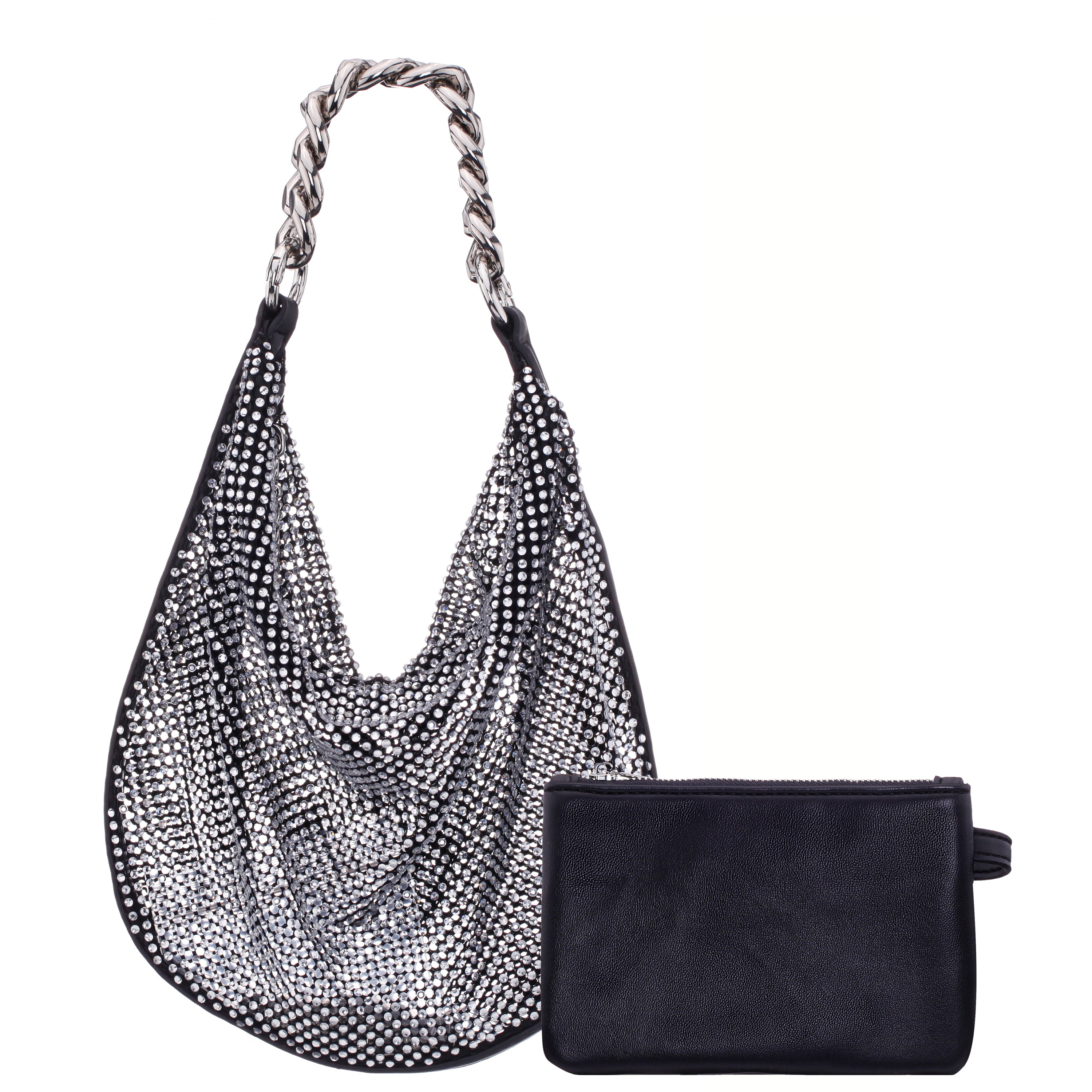 The RACQUEL by Nina is the embodiment of sleek elegance with a bold metallic twist. Featuring a 4" sculptural metal handle and a shimmering surface, this modern clutch-meets-shoulder bag adds instant edge to any ensemble. Its slim yet structured shape makes it perfect for chic evenings out, weddings, or upscale events. A zipper closure keeps your essentials secure, while the inner pouch adds discreet organization. The 24" drop-length chain strap offers a comfortable over-the-shoulder option, or carry it by the glossy metal handle for a more architectural look. Whether worn crossbody or handheld, the RACQUEL by Nina delivers contemporary glamour with effortless charm.