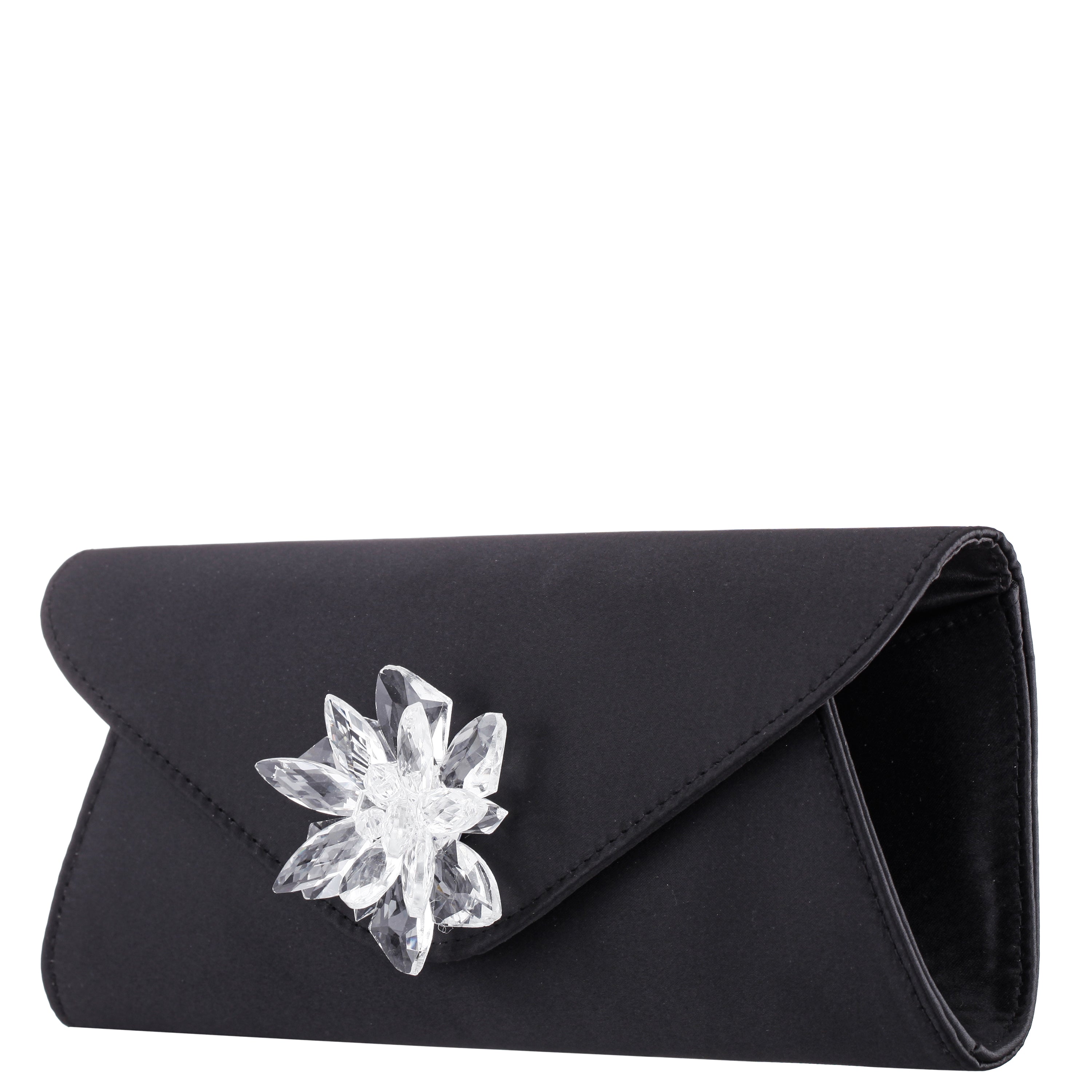 The TWILA by Nina is a refined clutch that radiates evening elegance. Its smooth satin body is adorned with a brilliant crystal cluster ornament—a dazzling focal point that elevates any special occasion look. Sleek in silhouette and finished with a magnetic snap closure, it transitions effortlessly from hand-held sophistication to shoulder styling with the optional 18" drop-length chain strap. Whether you’re headed to a formal event or a festive night out, the TWILA by Nina brings sparkle and sophistication to your style.