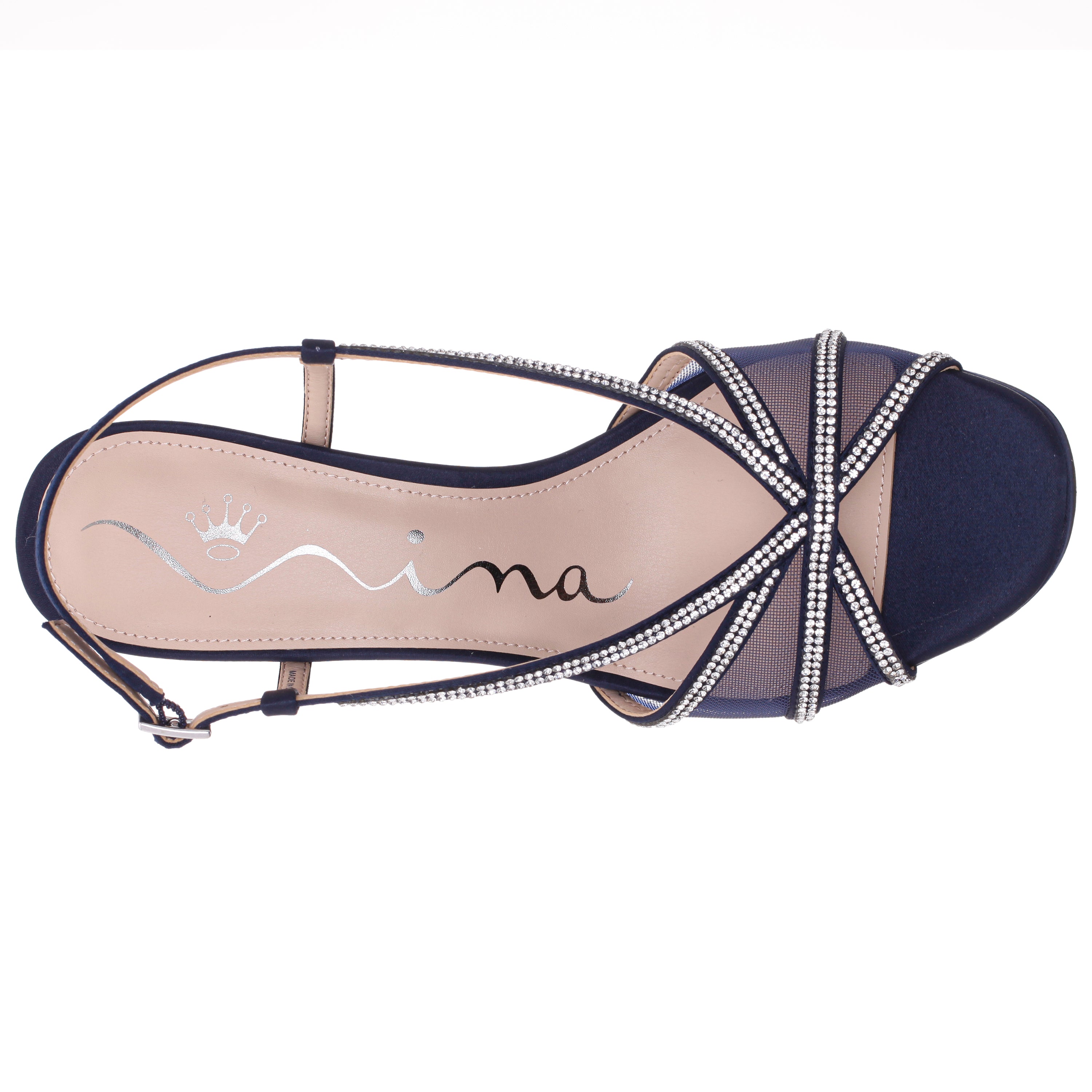 We love the chunky heel featured on BONNEY by Nina Shoes, a platform sandal that creates head-turning looks, while offering comfort on a slender platform. Mesh inserts give a light covering across the toes, as rhinestone straps elongate the leg. A bold, striking look to wear with a ball gown or a pair of denims, the BONNEY sandal offers glamour to any ensemble.