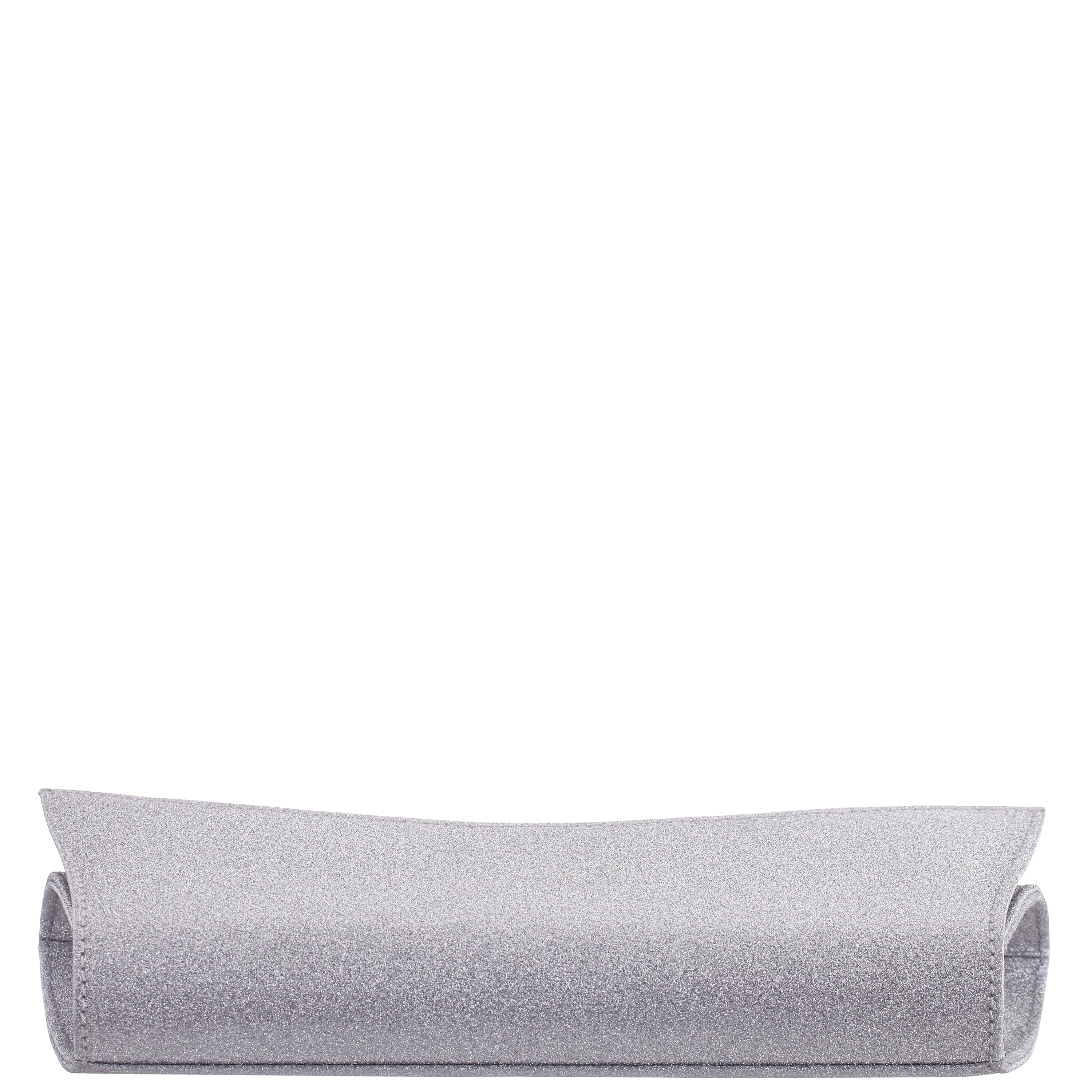 - Silhouette: Slim clutch with a curved flap for graceful structure