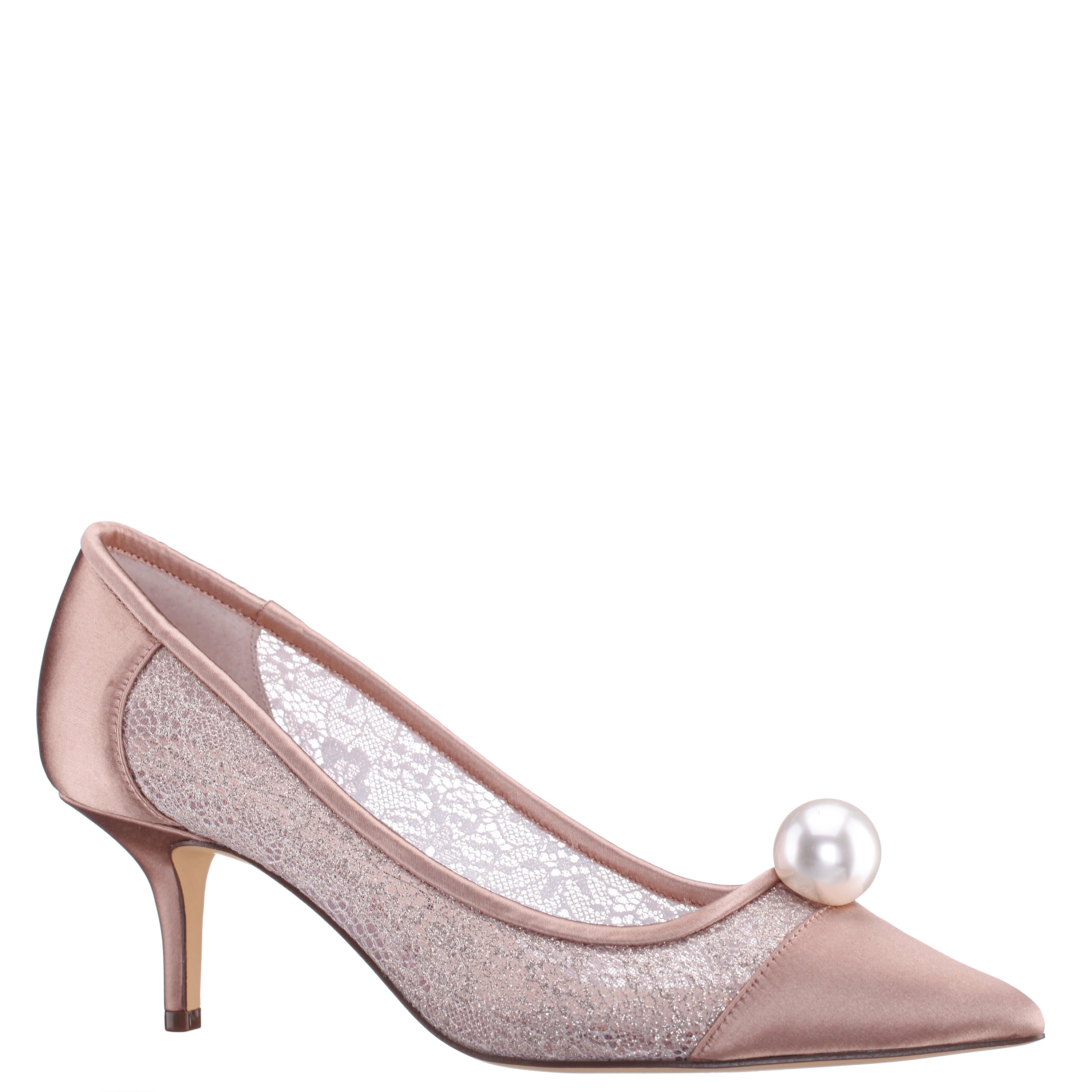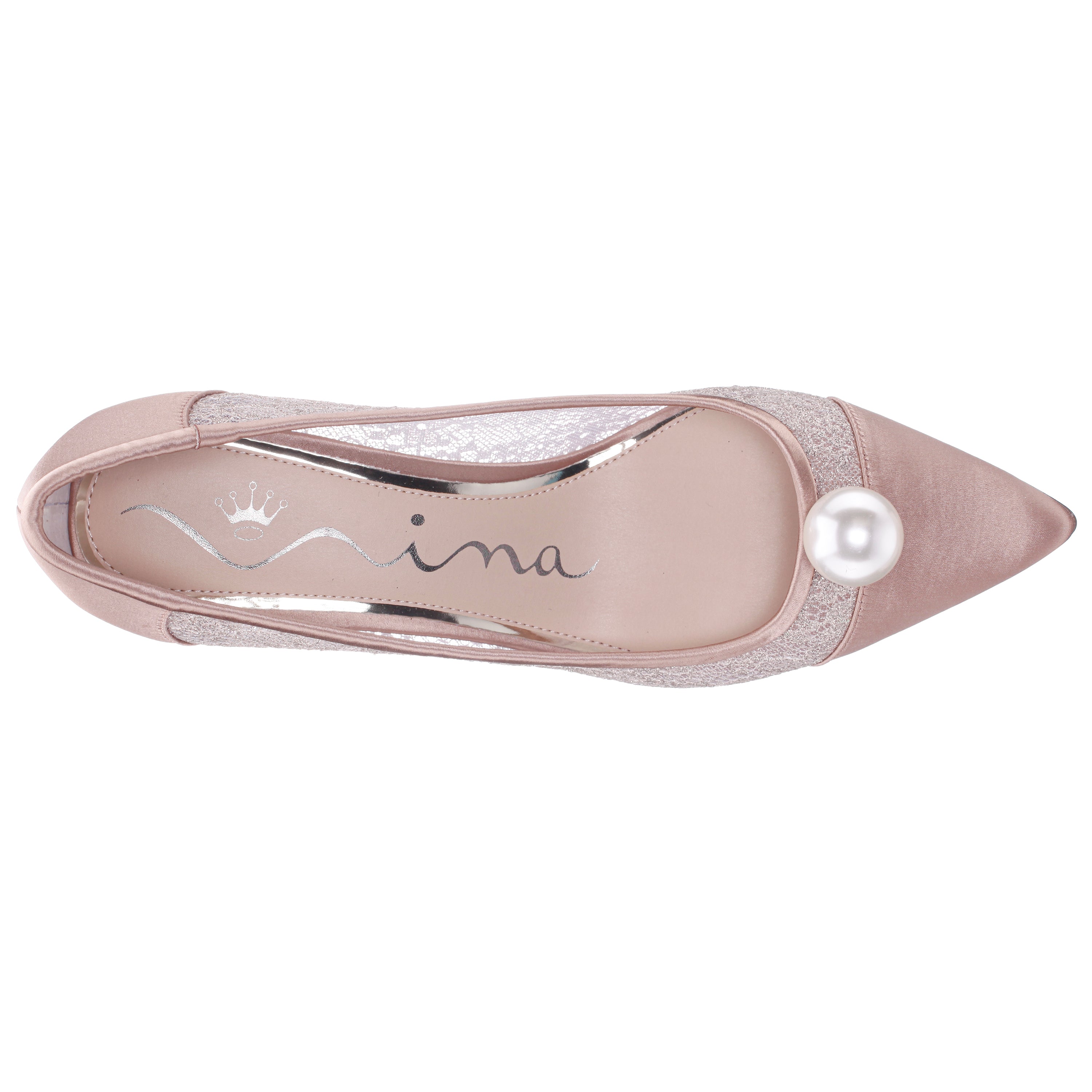 BENCE by Nina Shoes combines glittering lace, lustrous satin, and a single luminous pearl accent to create a special occasion pump that exudes refined femininity. Every detail reflects the season’s love of texture and embellishment, making it a statement piece with timeless appeal. A graceful throat line gives the leg an elongated look, while its flat design ensures comfort. Designed for memorable moments, BENCE brings radiant sparkle and chic sophistication to every step.