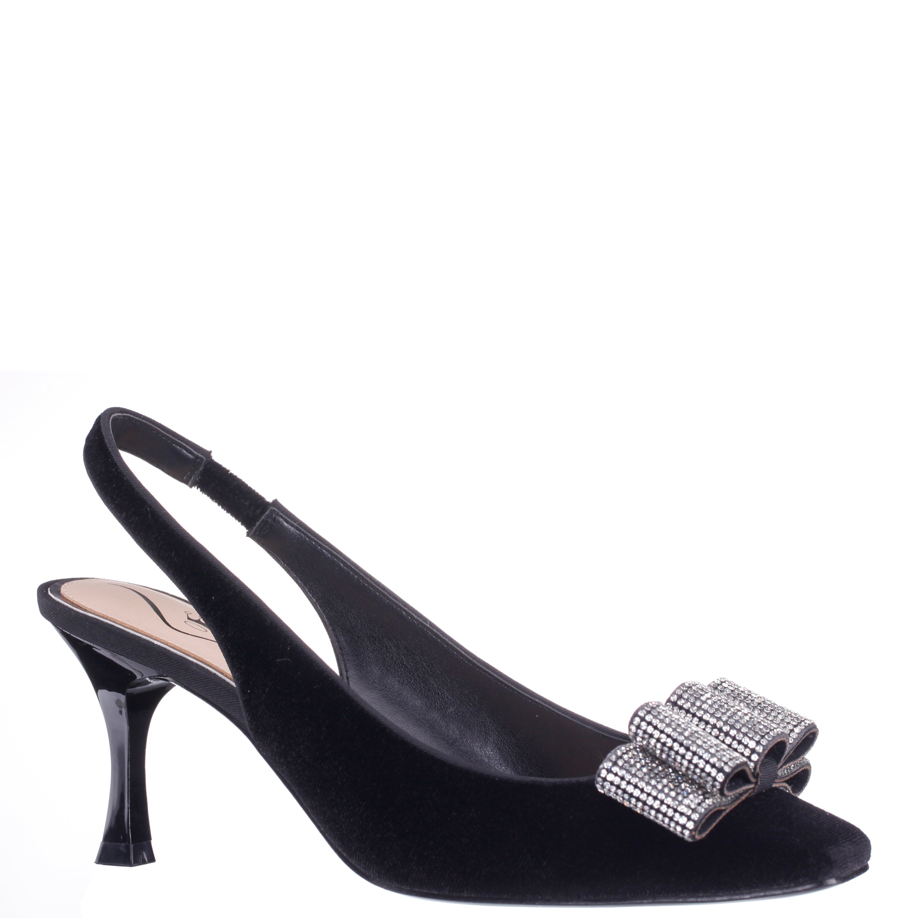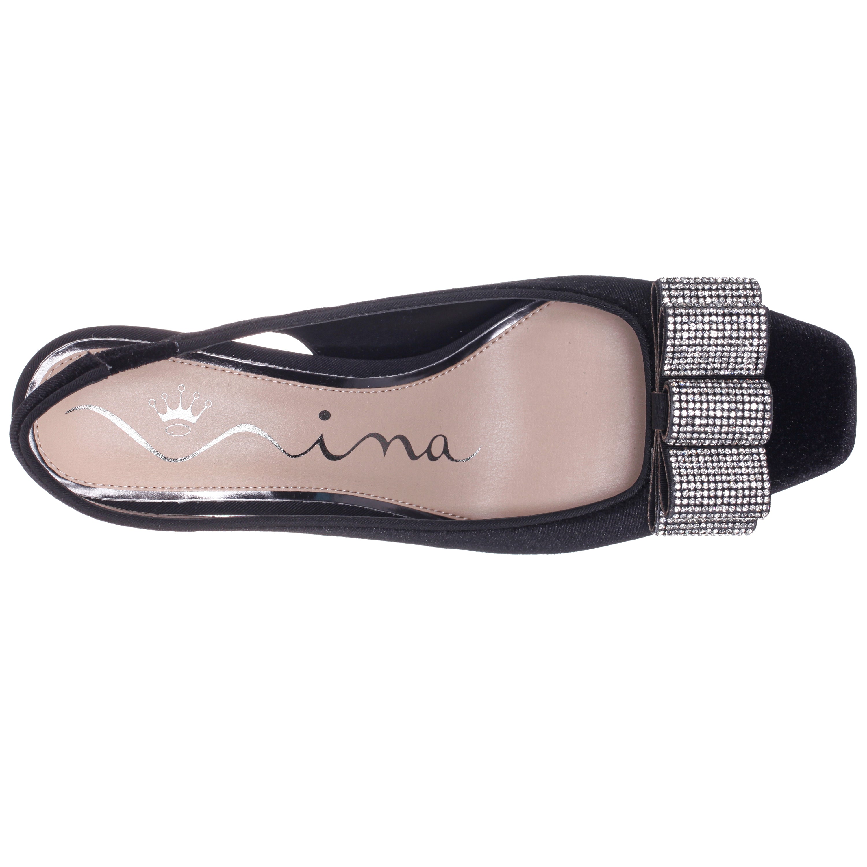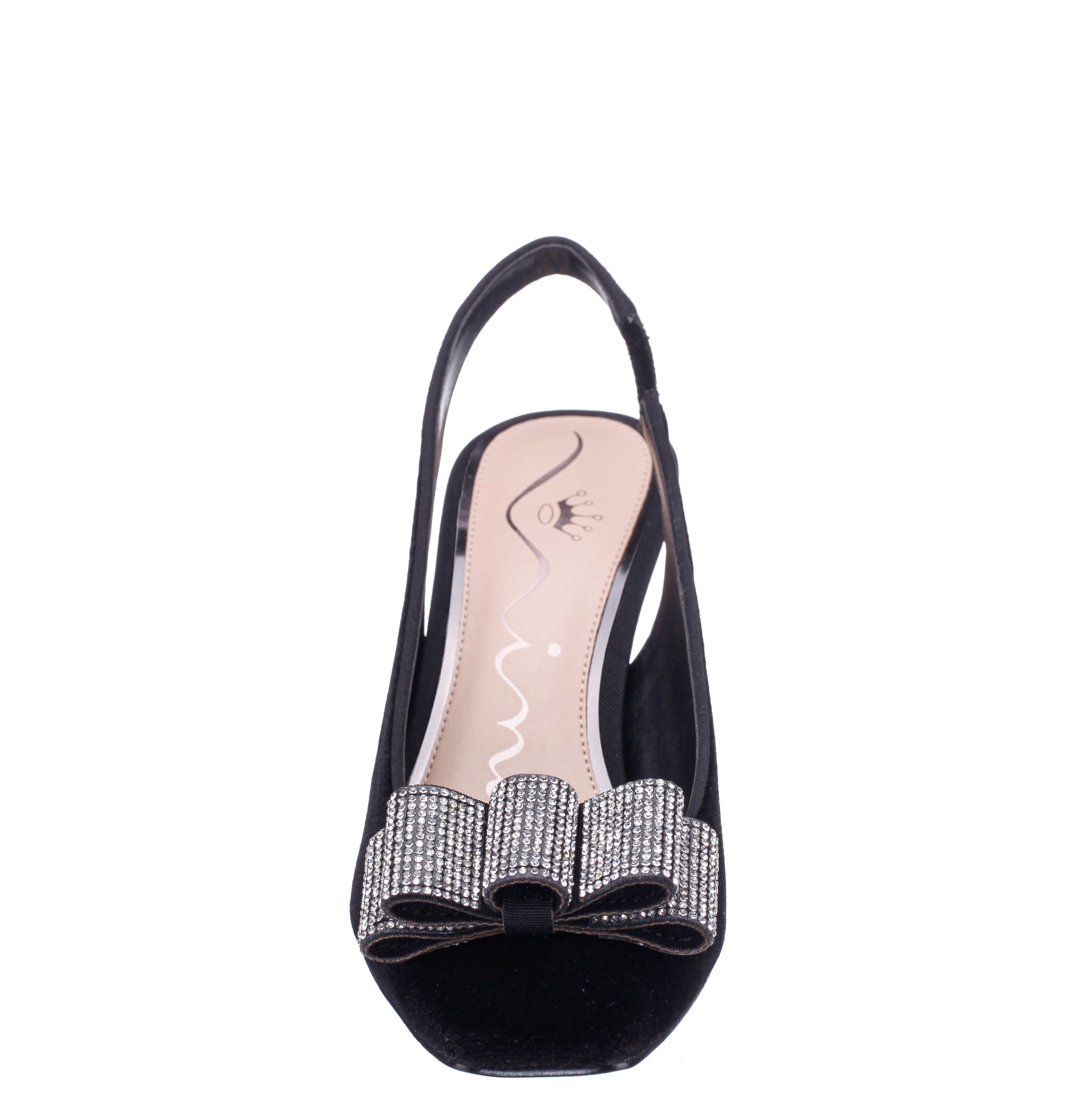 Designed to captivate, JOLANDA by Nina Shoes is a chic slingback pump that embodies modern elegance. Its softly squared toe and flattering throatline create a leg-lengthening effect, while the 2-3/4" (71mm) mid heel delivers both comfort and height. Offered in plush velvets or sparkling mesh, this pump is elevated by a double-layer crystal bow that shimmers with every step. Glamorous and chic, JOLANDA transitions seamlessly from cocktail hour to black-tie affairs. For complementary styles, explore our satin shop or browse our newest arrivals.