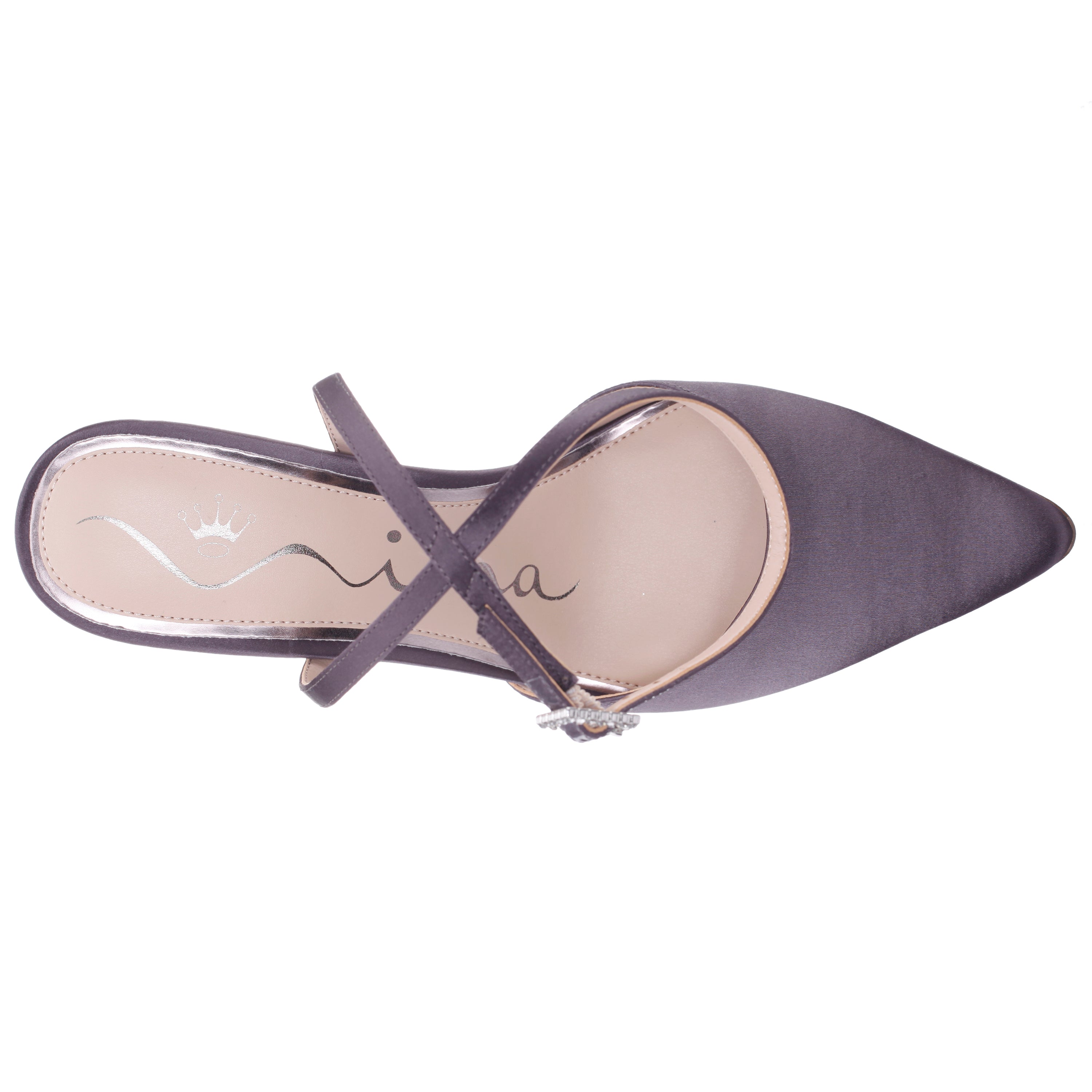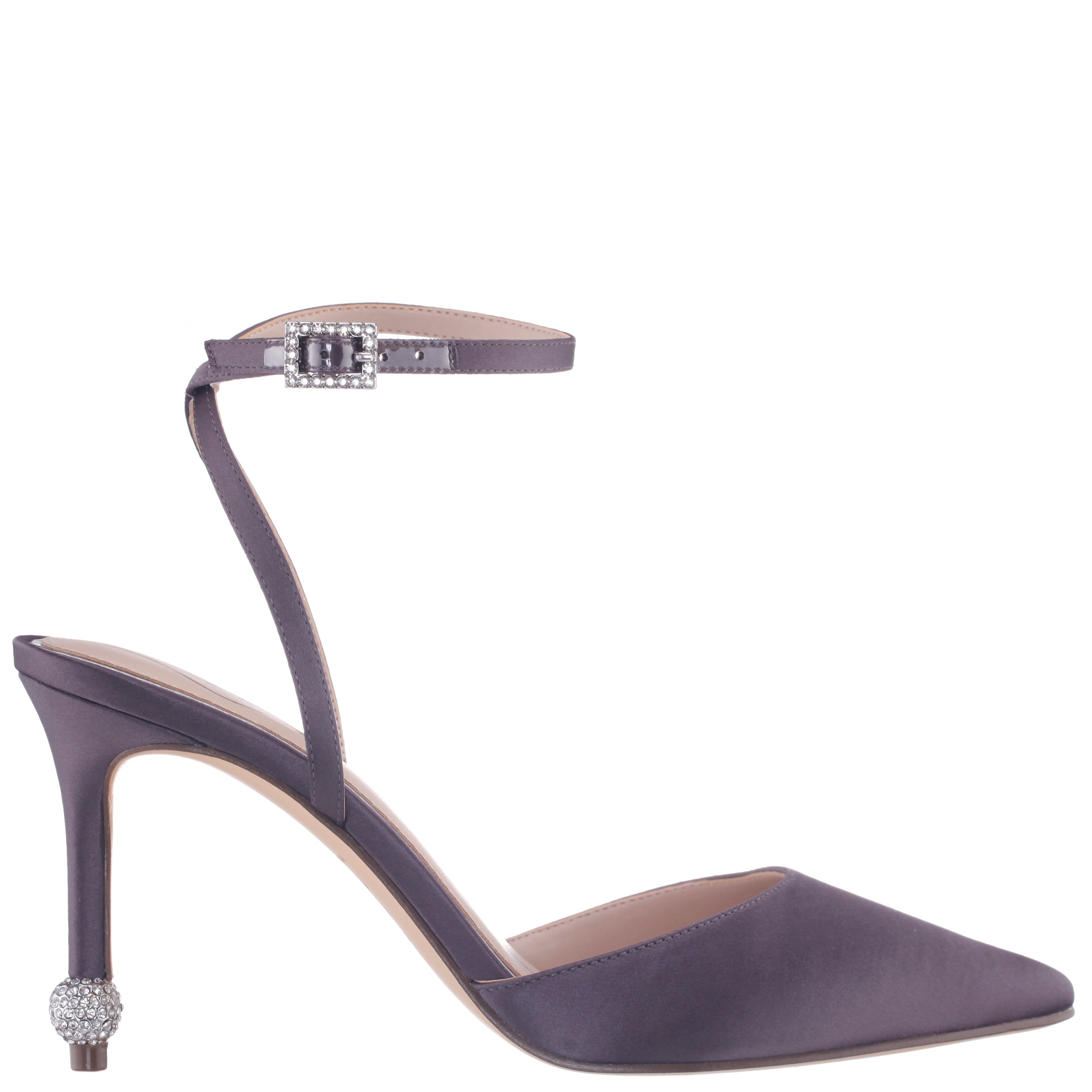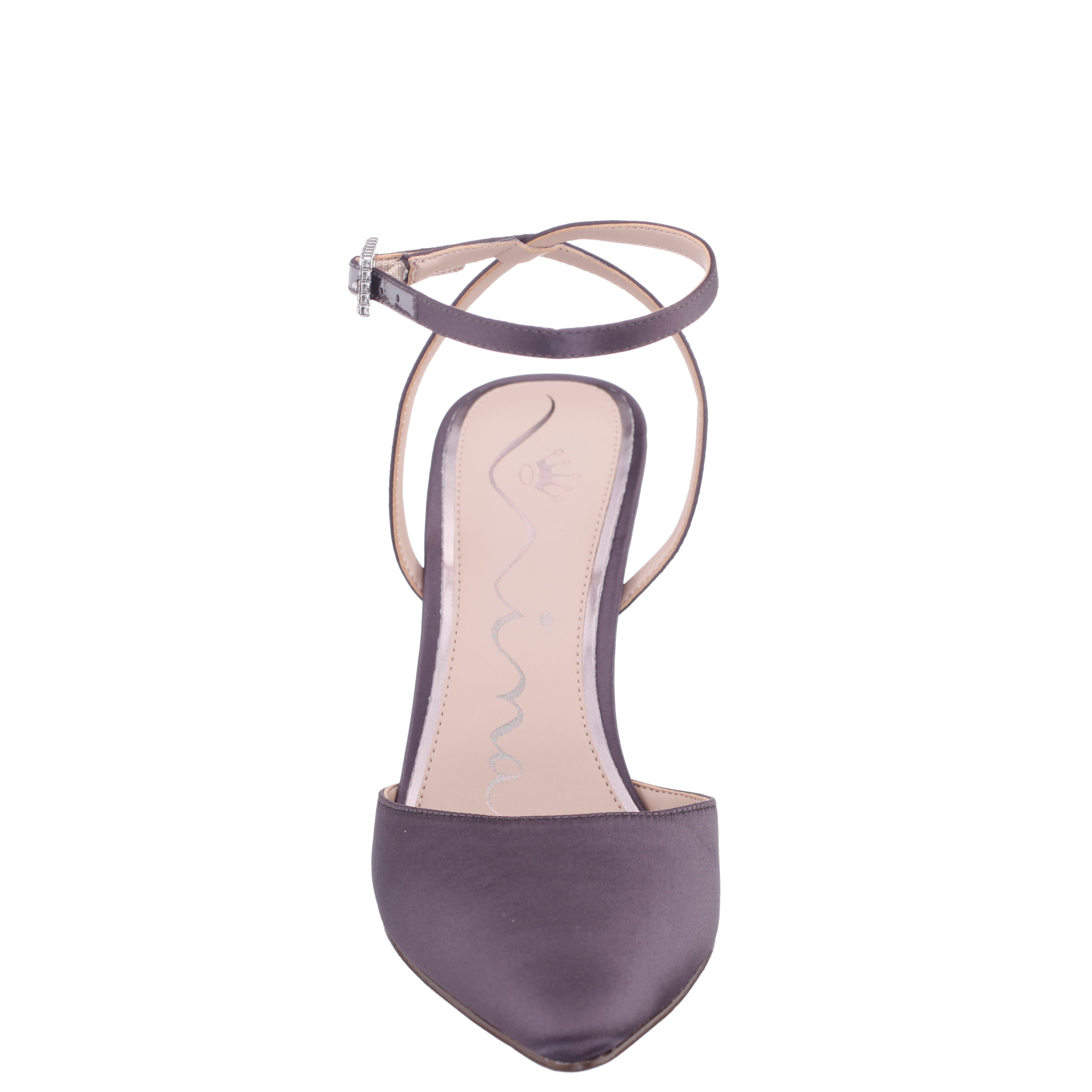 Embellished with a diamond boule heel, NASHA by Nina Shoes—a glamorous pump detailed in luxurious satin—embodies refinement and glamour. Featuring a crisp pointed-toe and a bejeweled, adjustable buckle for a secure fit, this perfect combination of sophistication and undeniable elegance just adds to your evening delight!