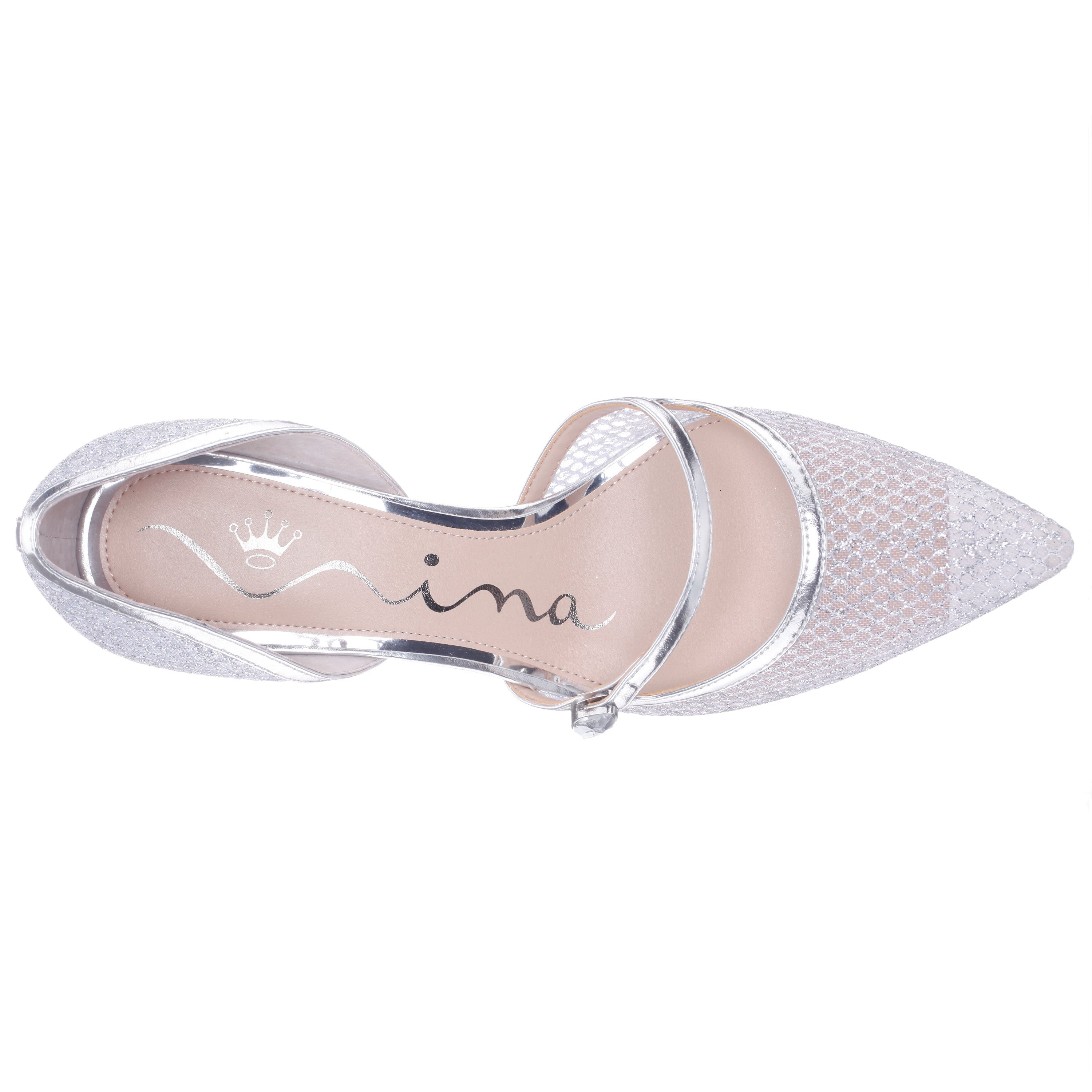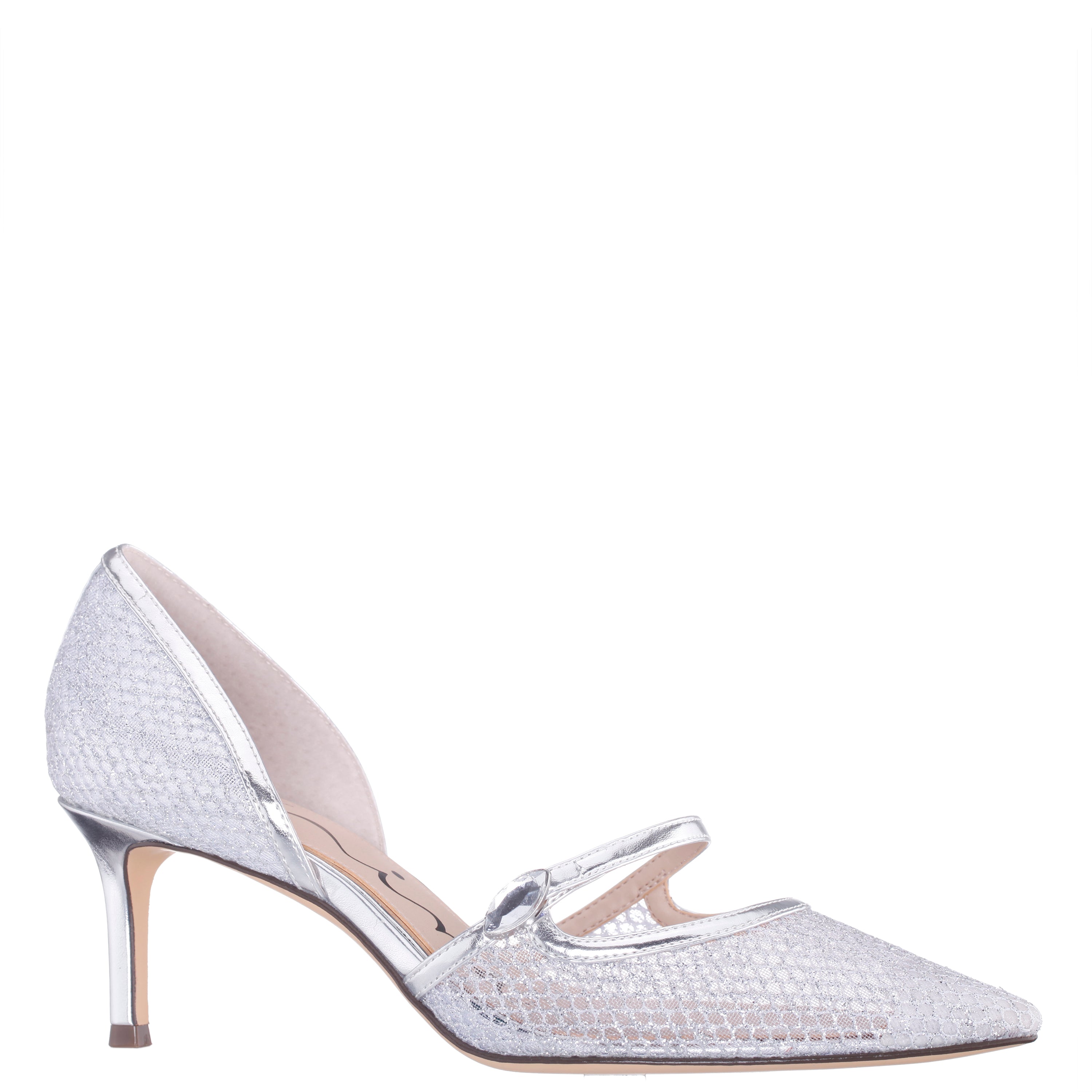 You will turn heads when you wear NASHLY by Nina Shoes, a two-piece D'Orsay pump that delivers the look of the season. It’s your choice to choose sleek, fashion-right patents or peekaboo mesh in this pointed-toe two-piece pump. Sophisticated yet feminine at the same time, NASHLY by Nina Shoes lengthens the leg while featuring a gem at the instep for a touch of understated bling.