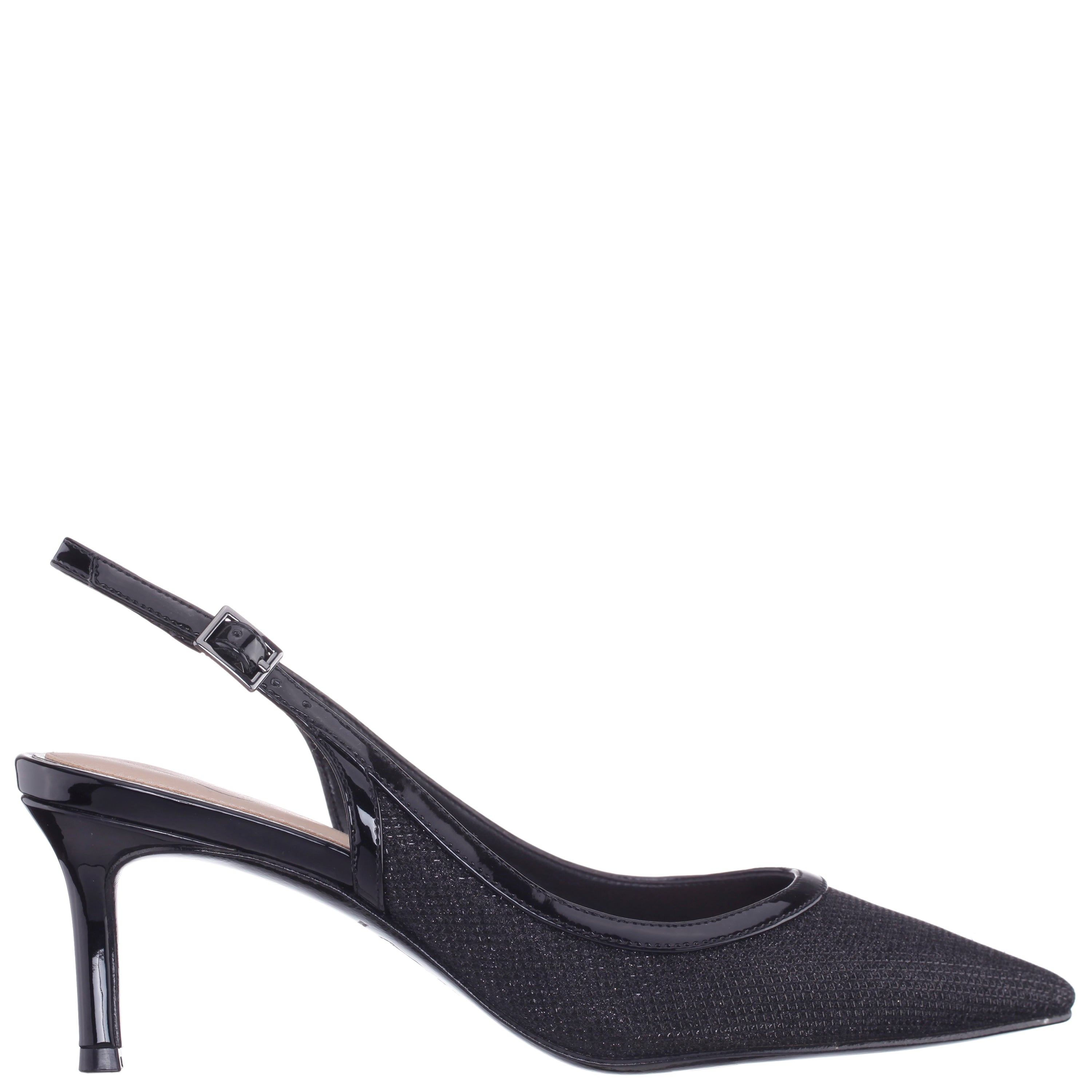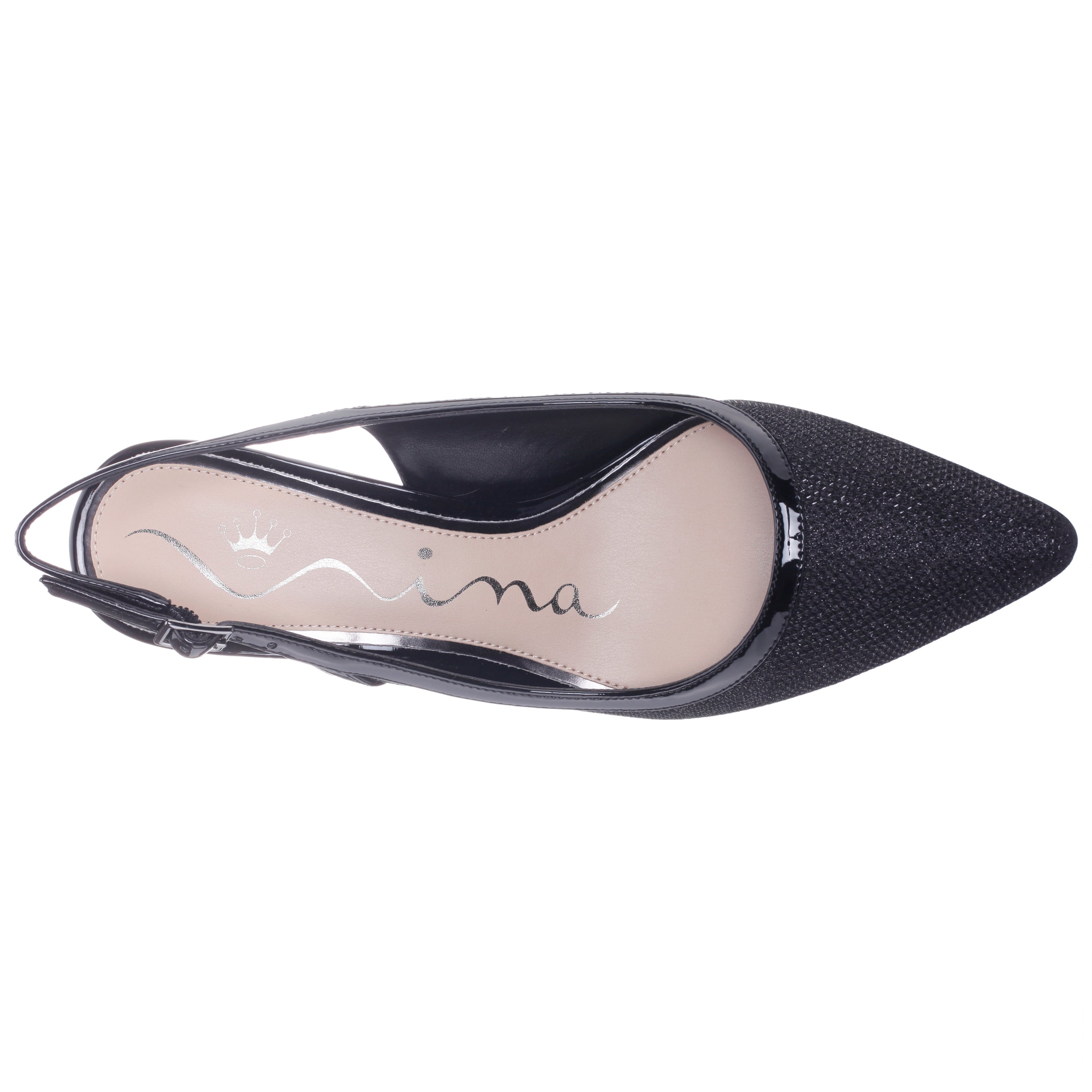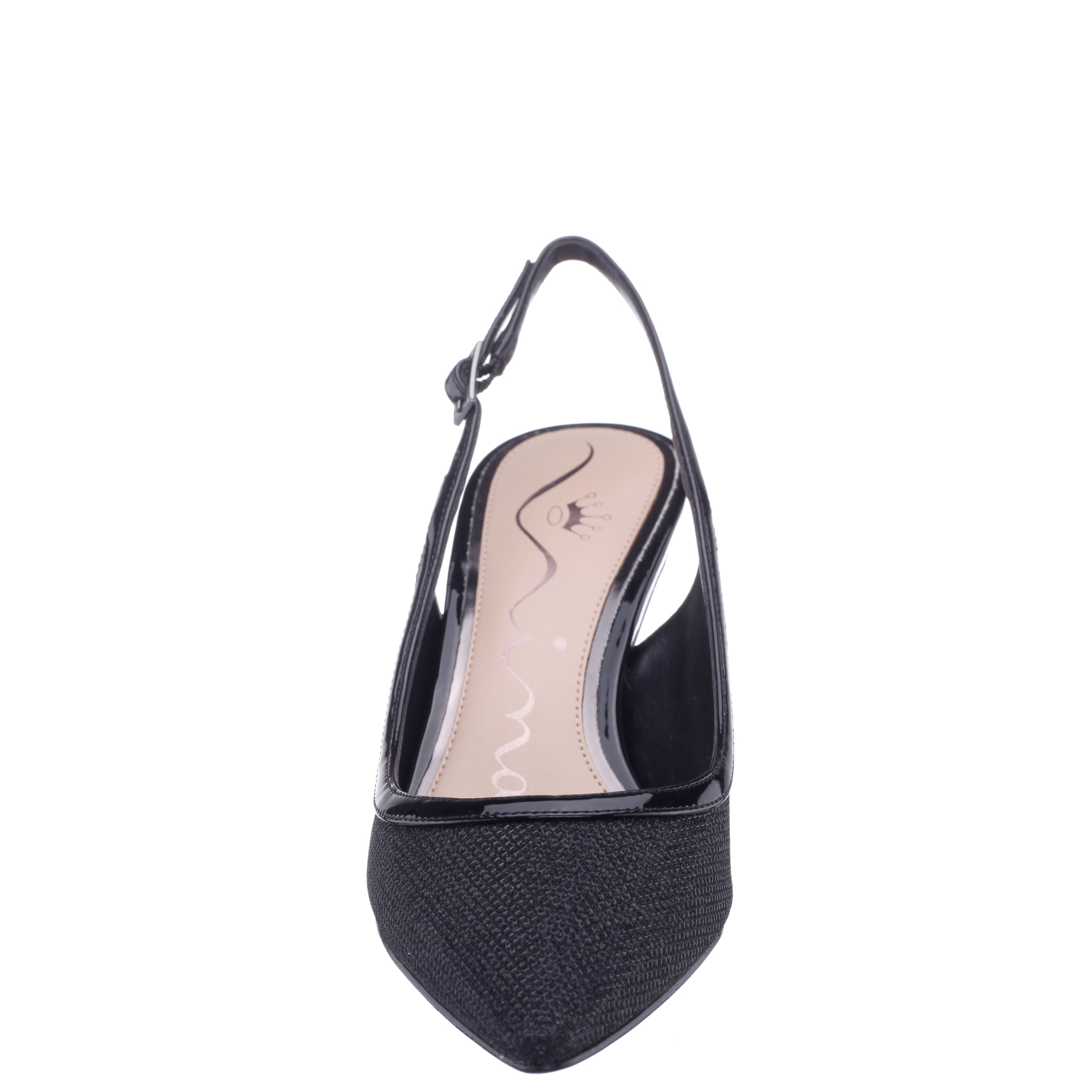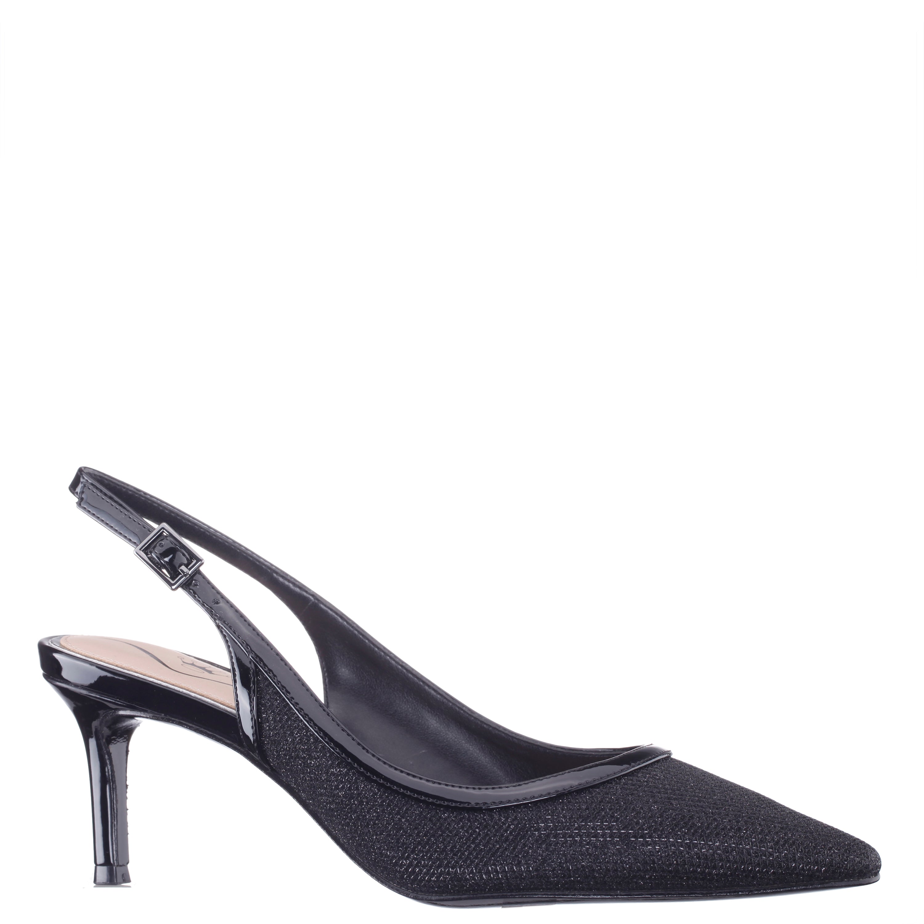 A pump for all seasons, NAZURI by Nina Shoes is a classic slingback pump designed in a fresh, trend-right material with just the right touch of metallic shine to complete and complement any day or night ensemble. Set on a shapely mid-height heel, with an elegant pointed toe and an adjustable slingback strap, NAZURI by Nina Shoes adds modern elegance without compromising comfort.
