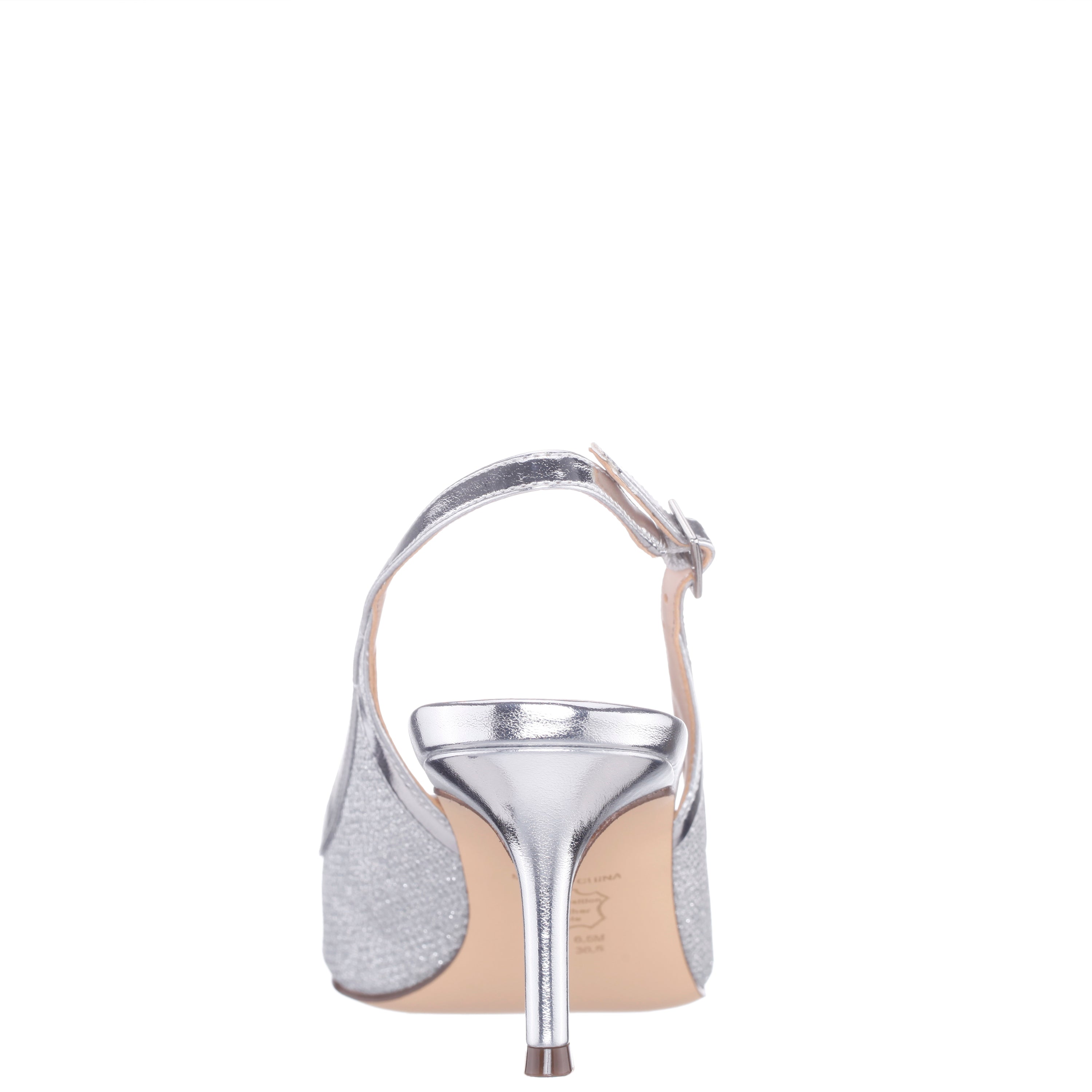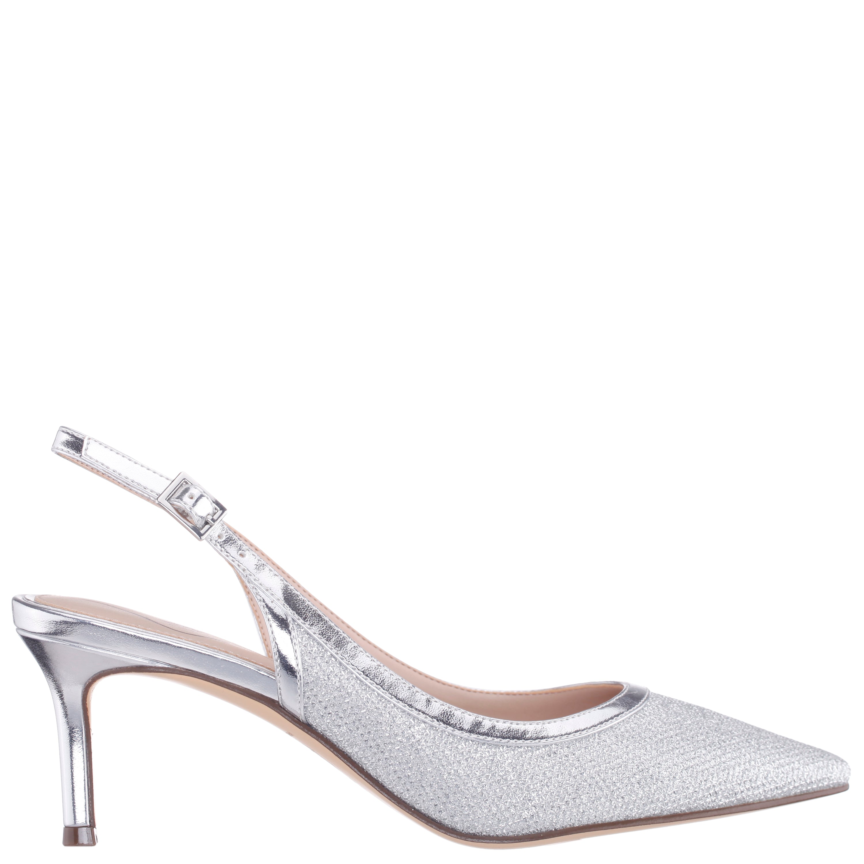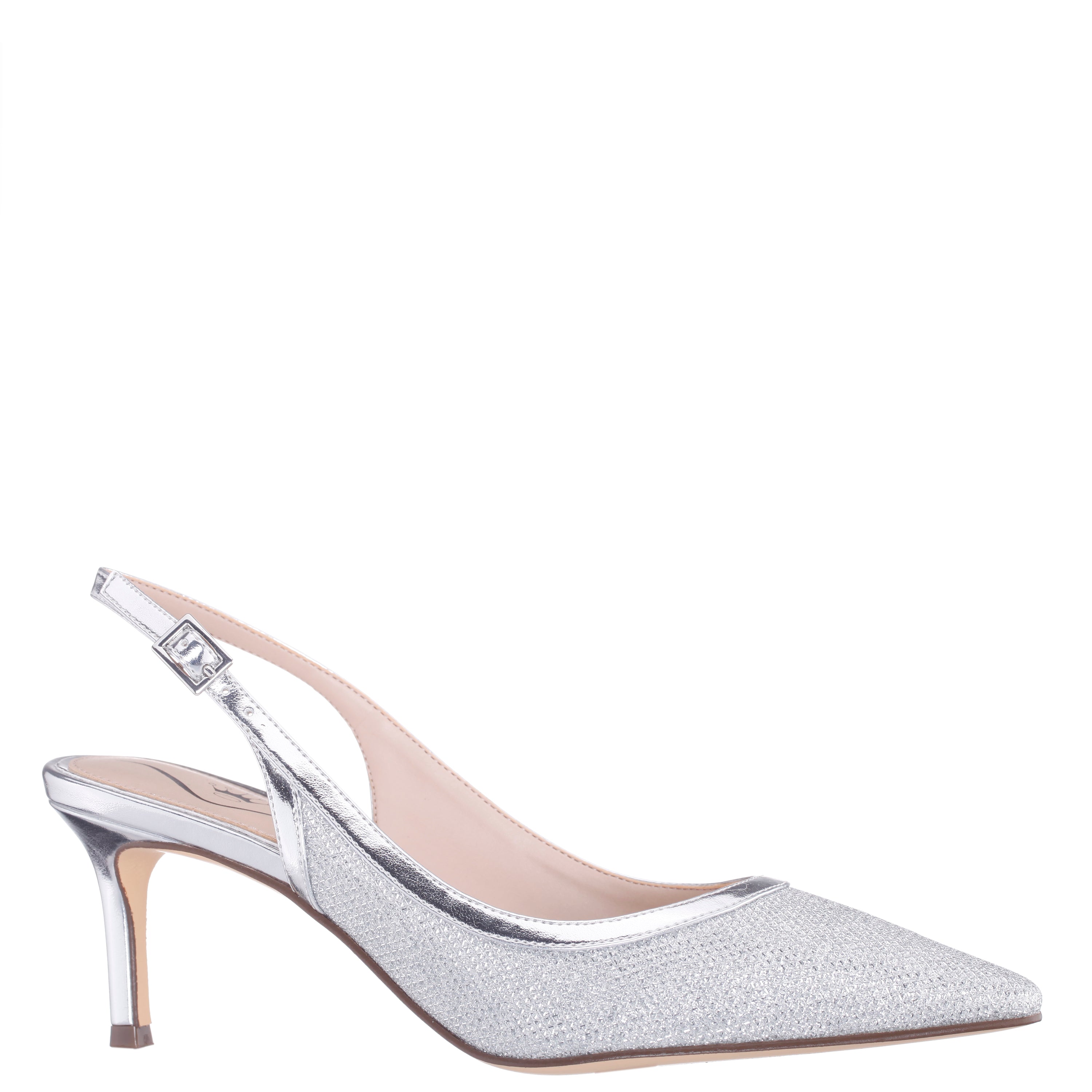 A pump for all seasons, NAZURI by Nina Shoes is a classic slingback pump designed in a fresh, trend-right material with just the right touch of metallic shine to complete and complement any day or night ensemble. Set on a shapely mid-height heel, with an elegant pointed toe and an adjustable slingback strap, NAZURI by Nina Shoes adds modern elegance without compromising comfort.