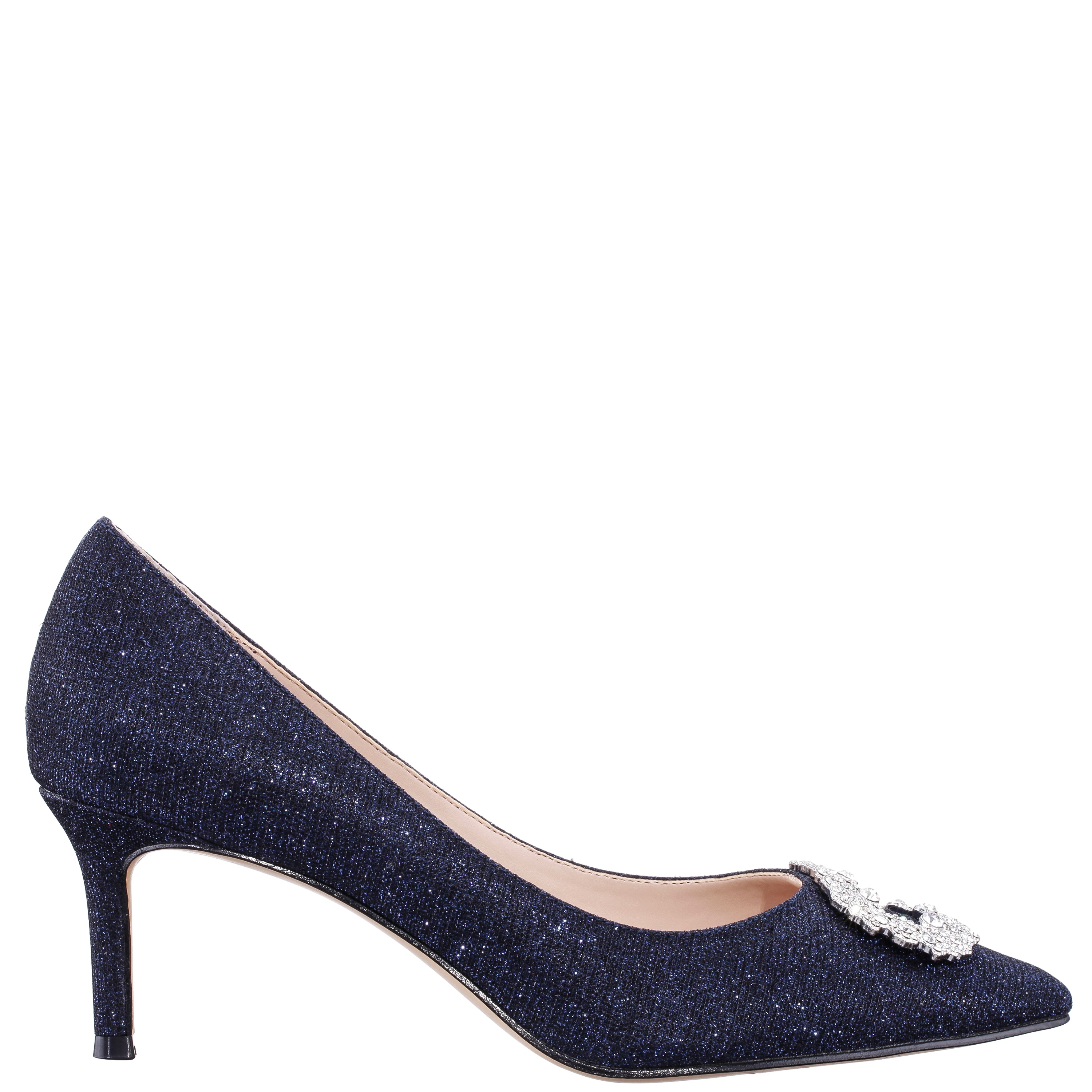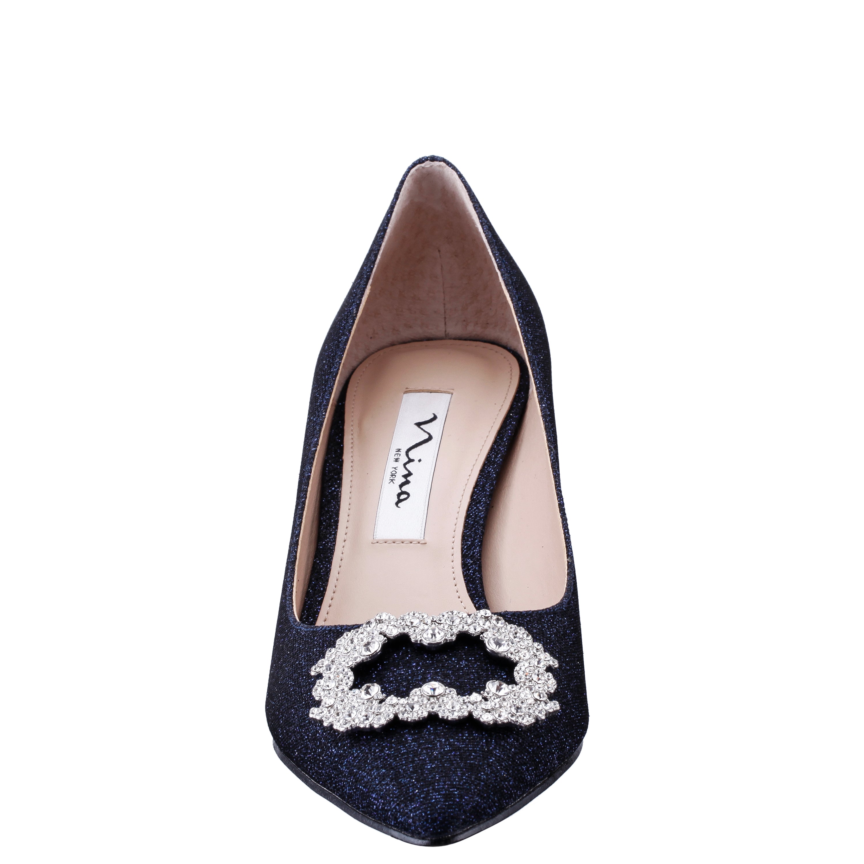 A stunning crystal-jewel buckle adorns Neya by Nina -  an elegant pump inspired by the opulence of the French court. A must-have mid-height heel addition to your footwear wardrobe is also available in wide-widths.