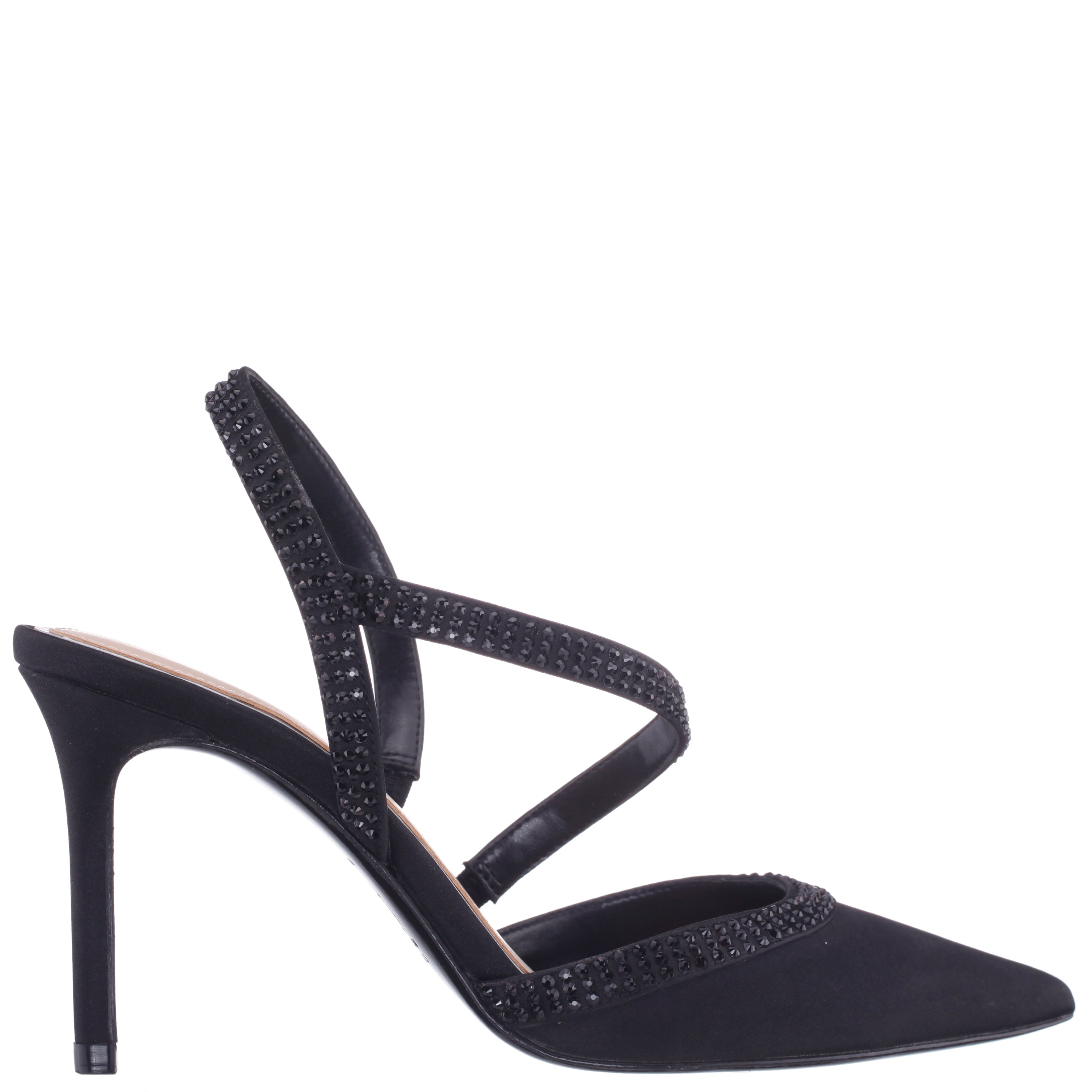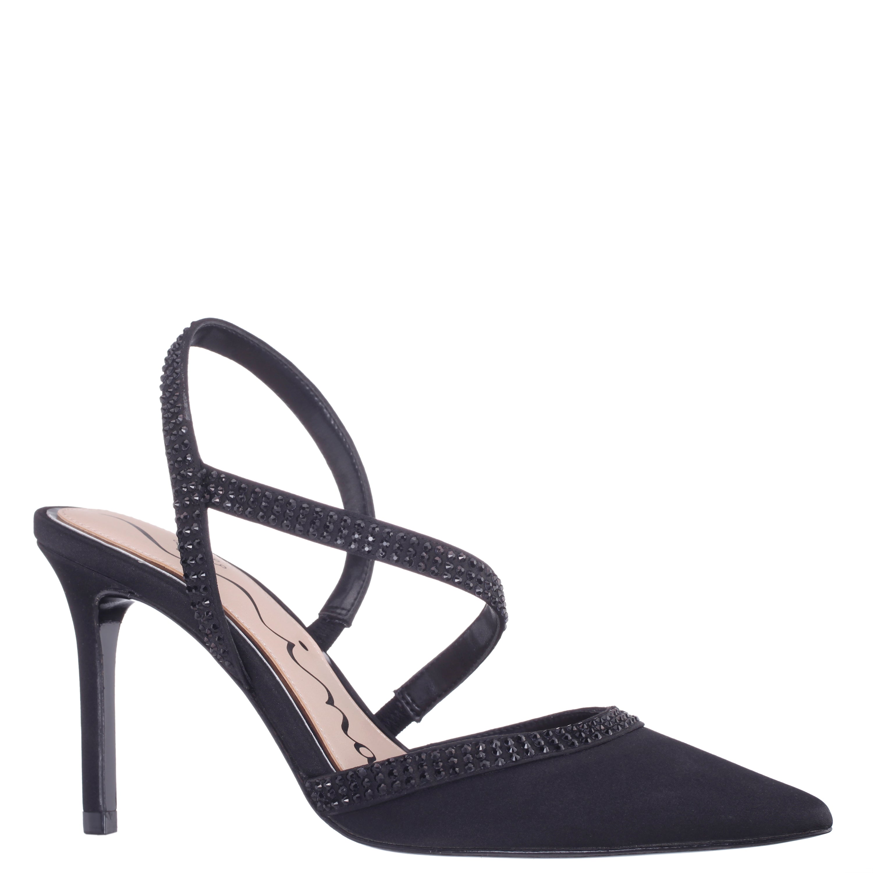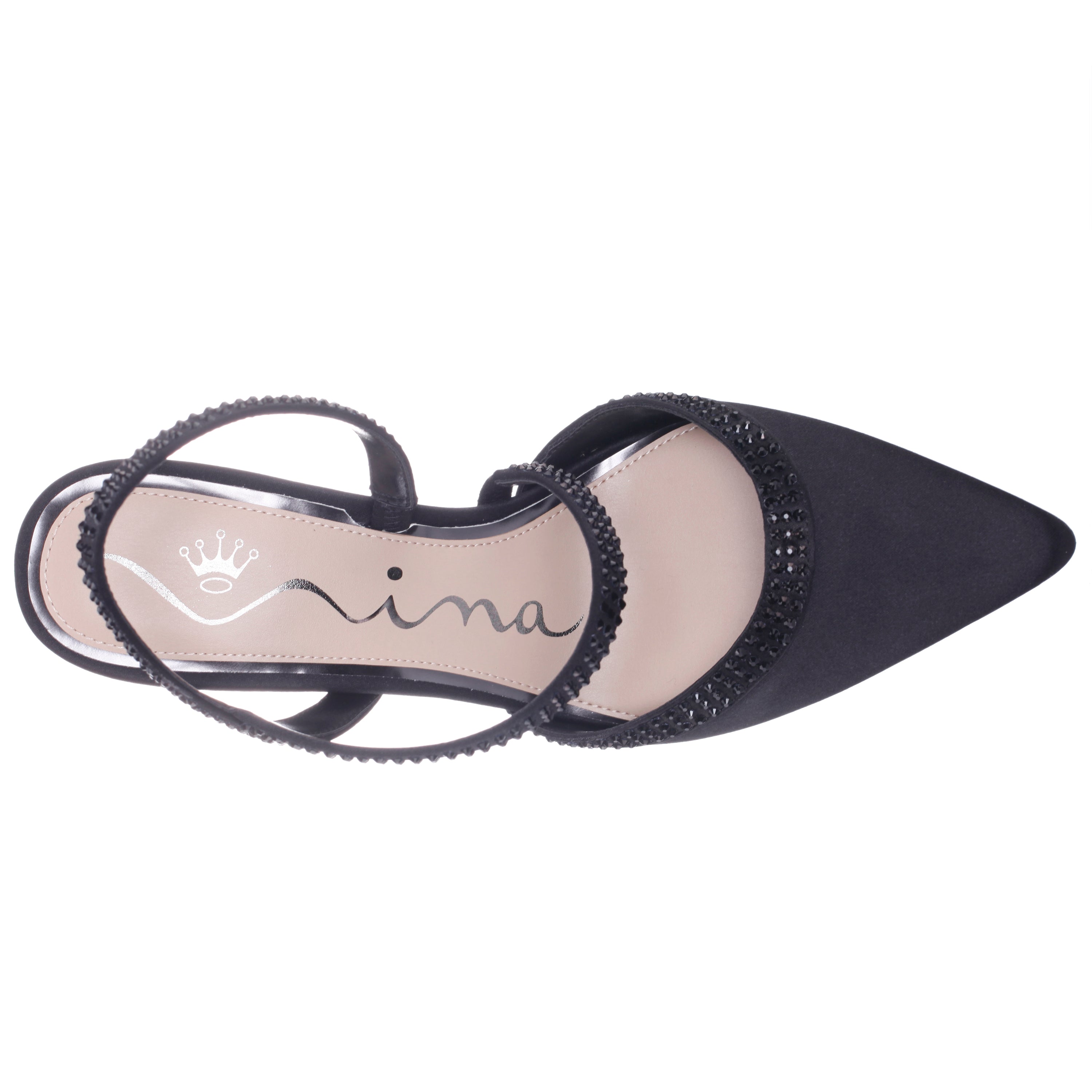Bold yet elegant, NICARA by Nina Shoes is a sophisticated pointed-toe pump adorned with sparkling crystal-accented details. A slender strap, fully covered in matching crystals, wraps gracefully across the instep to create a stunning silhouette. Designed with a lightly cushioned insole for comfort, this pump brings event-worthy glamour to ensure you look and feel your best, wherever you go.