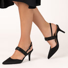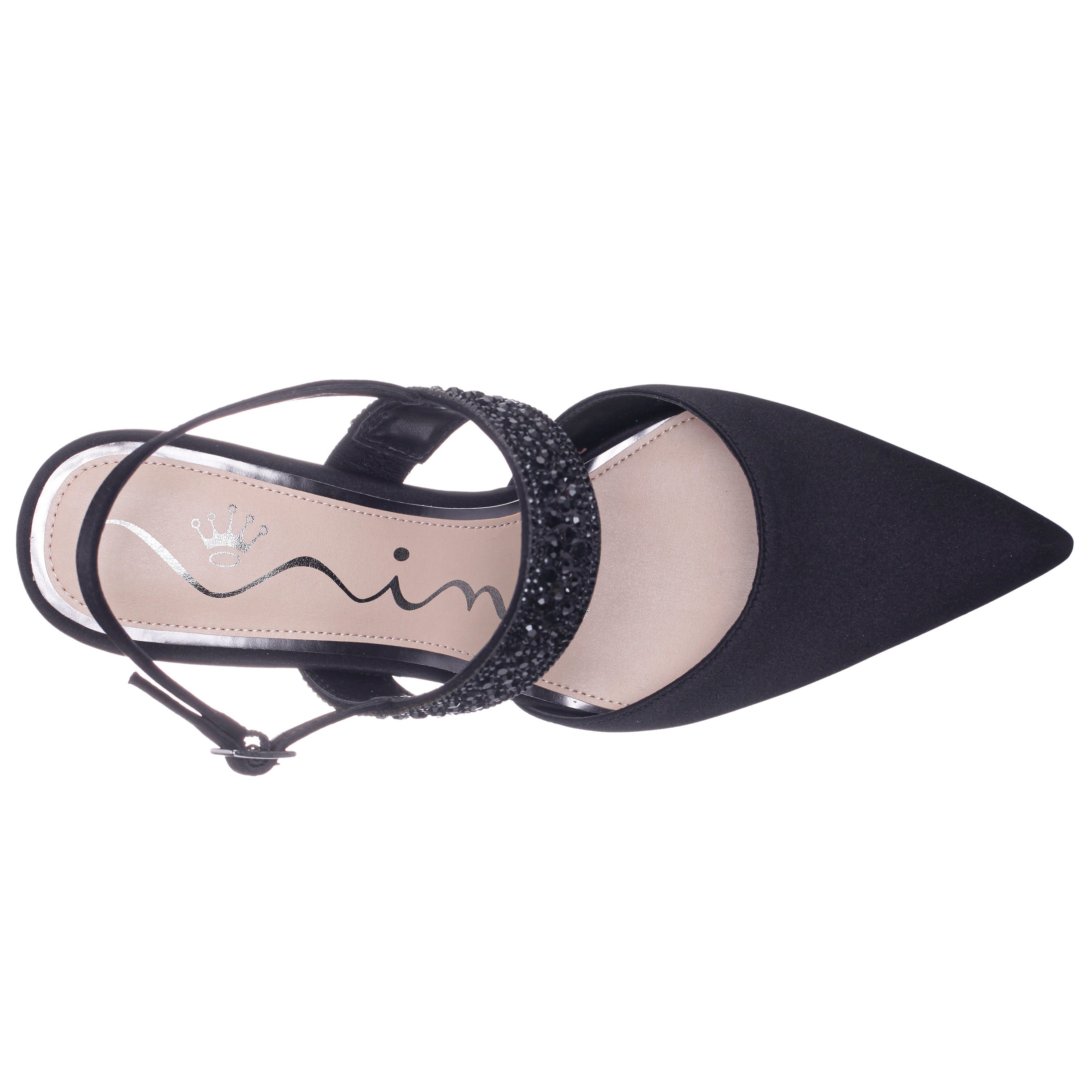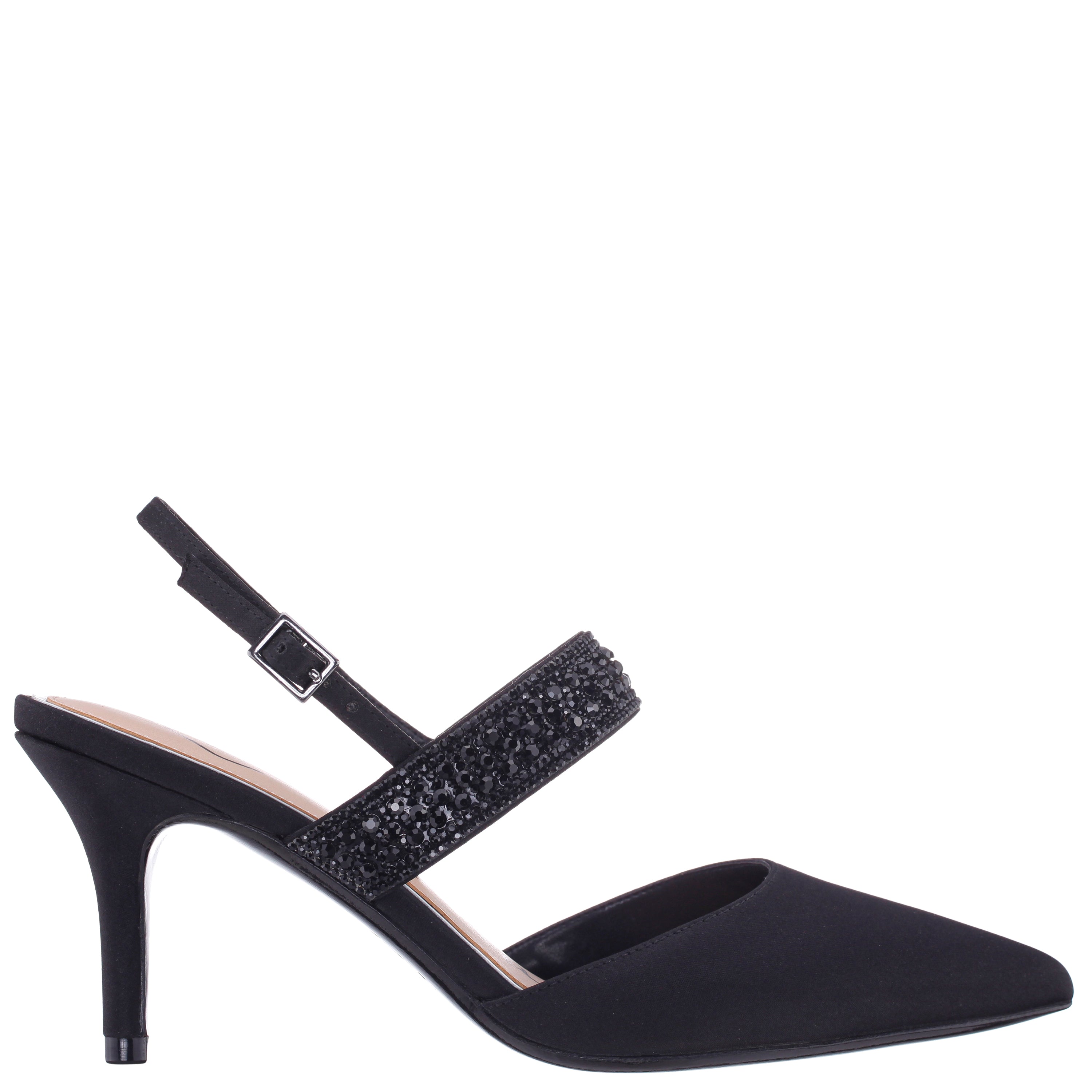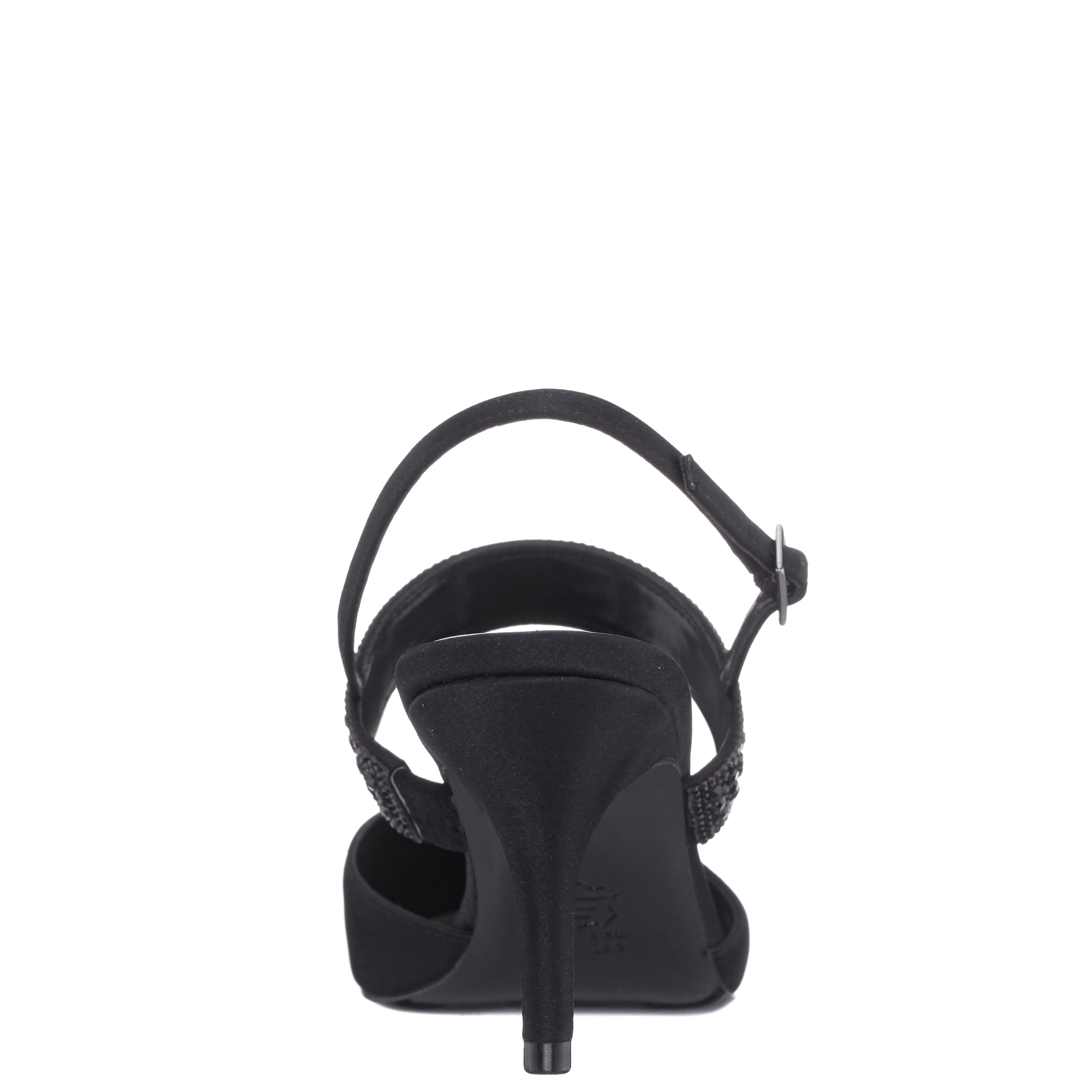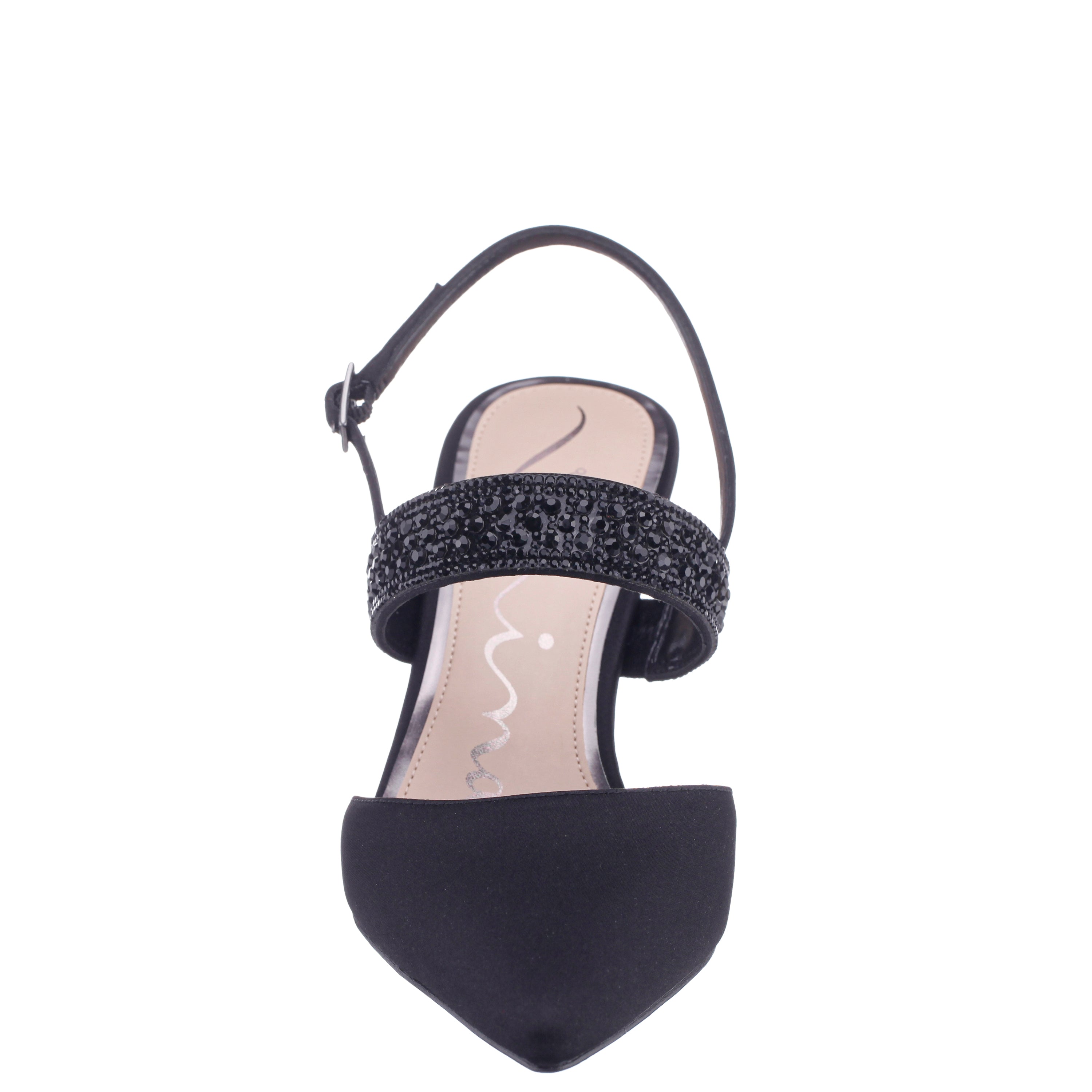 A study in stunning sophistication, TRISTA by Nina Shoes is designed to captivate. This chic mid-heel pump with its crystal-covered instep strap dazzles with every step. The graceful silhouette is elevated by a flattering 3" heel, while the adjustable slingback strap ensures a secure, polished fit. When you're stepping out for a night that calls for head-turning glamour, TRISTA is your invitation to shine with special occasion style.