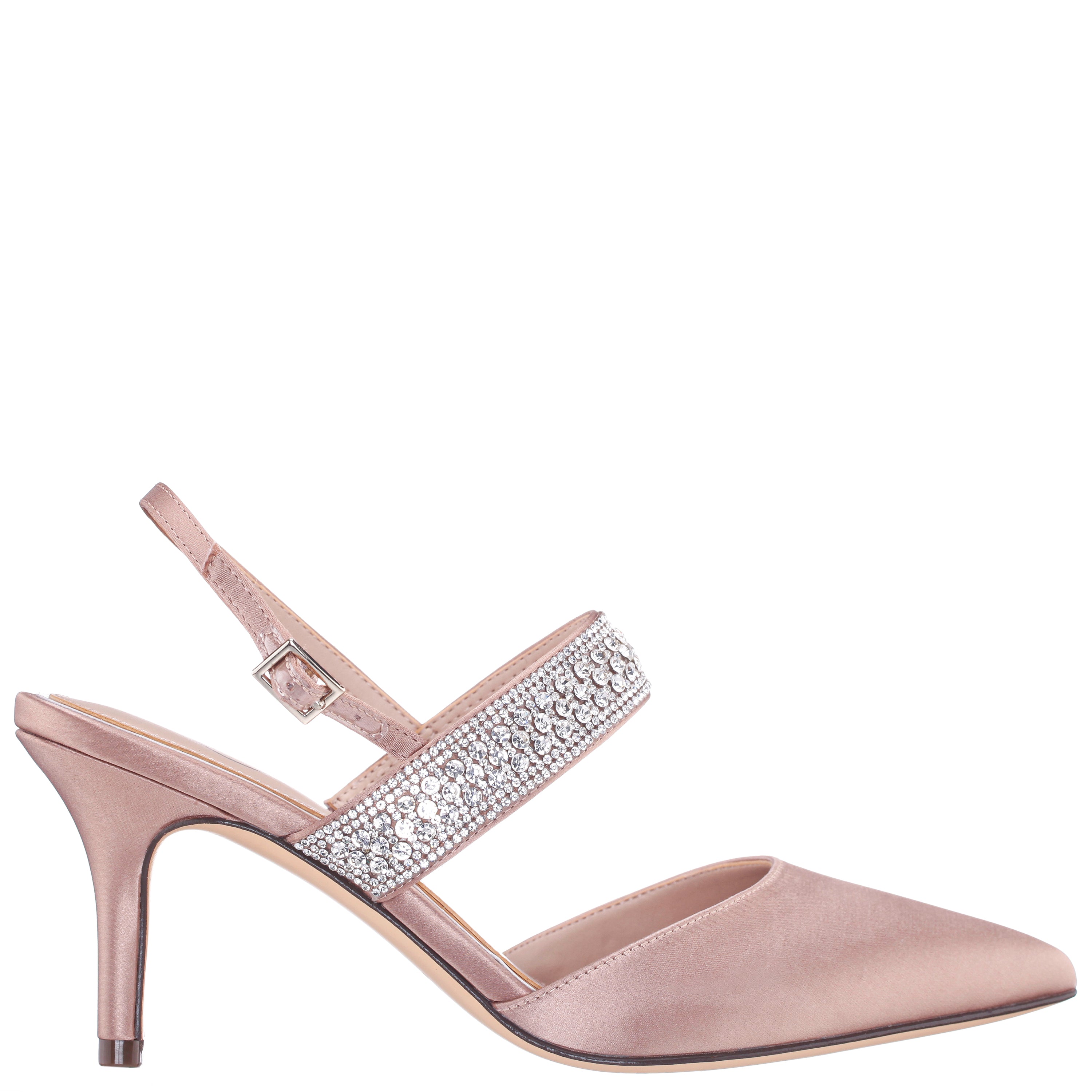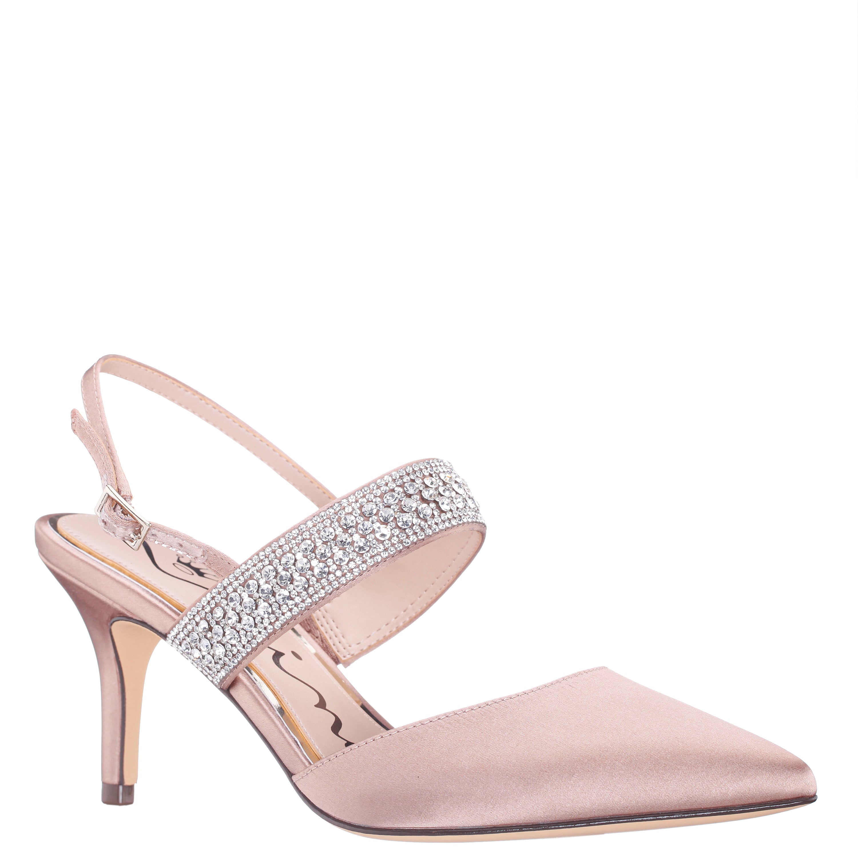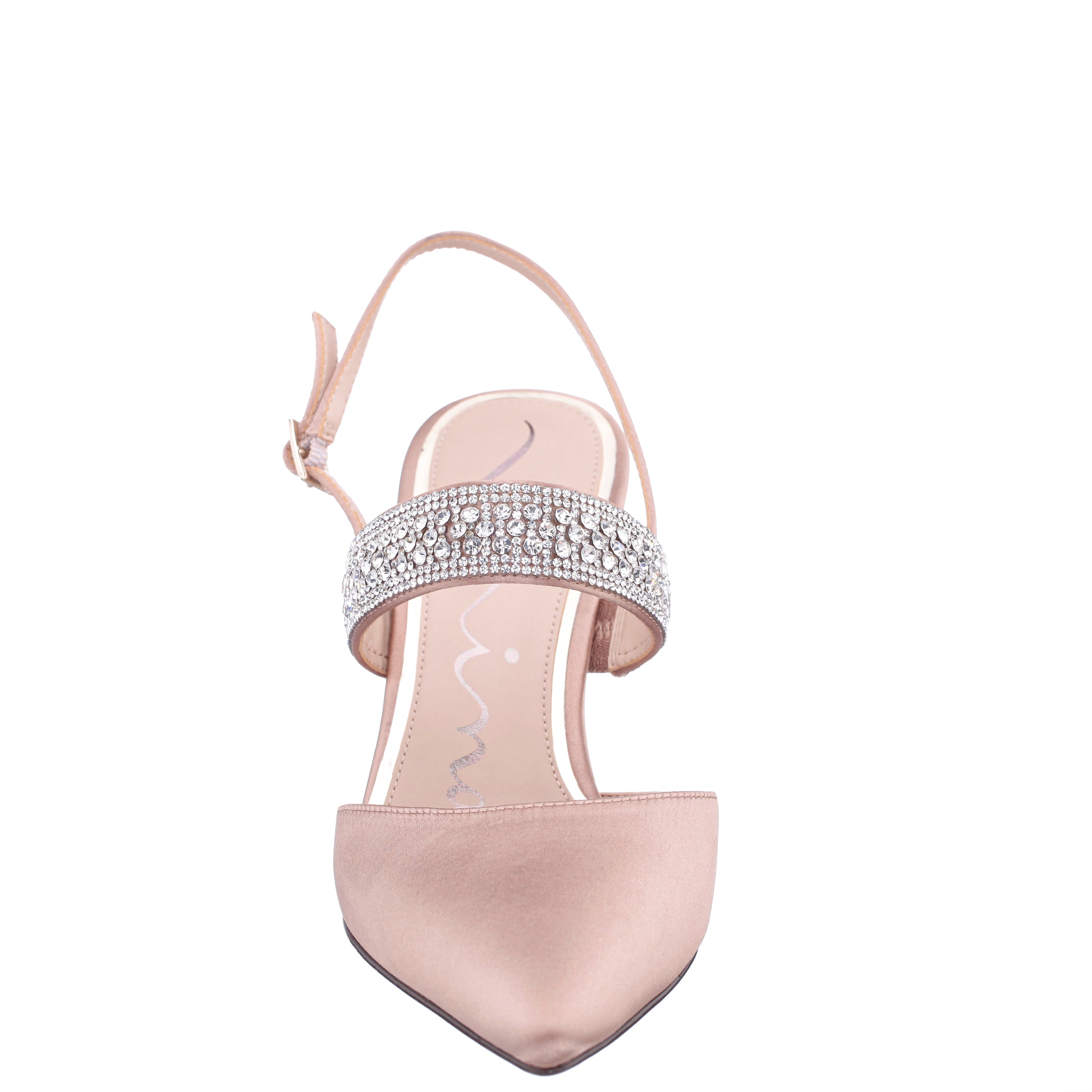 A study in stunning sophistication, TRISTA by Nina Shoes is designed to captivate. This chic mid-heel pump with its crystal-covered instep strap dazzles with every step. The graceful silhouette is elevated by a flattering 3" heel, while the adjustable slingback strap ensures a secure, polished fit. When you're stepping out for a night that calls for head-turning glamour, TRISTA is your invitation to shine with special occasion style.