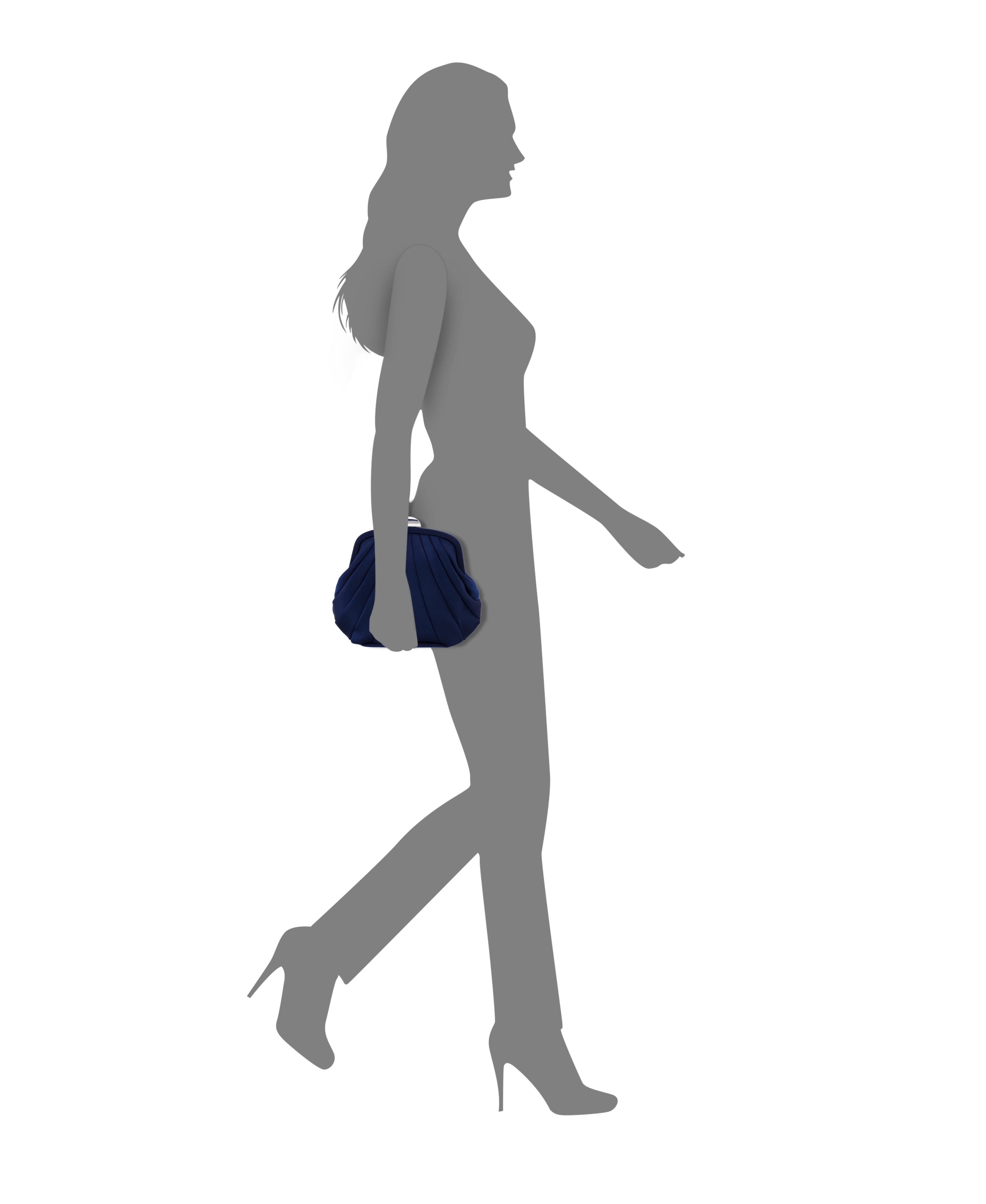 This art-deco inspired satin frame bag is elegant in its simplicity and adds a regality to any ensemble.