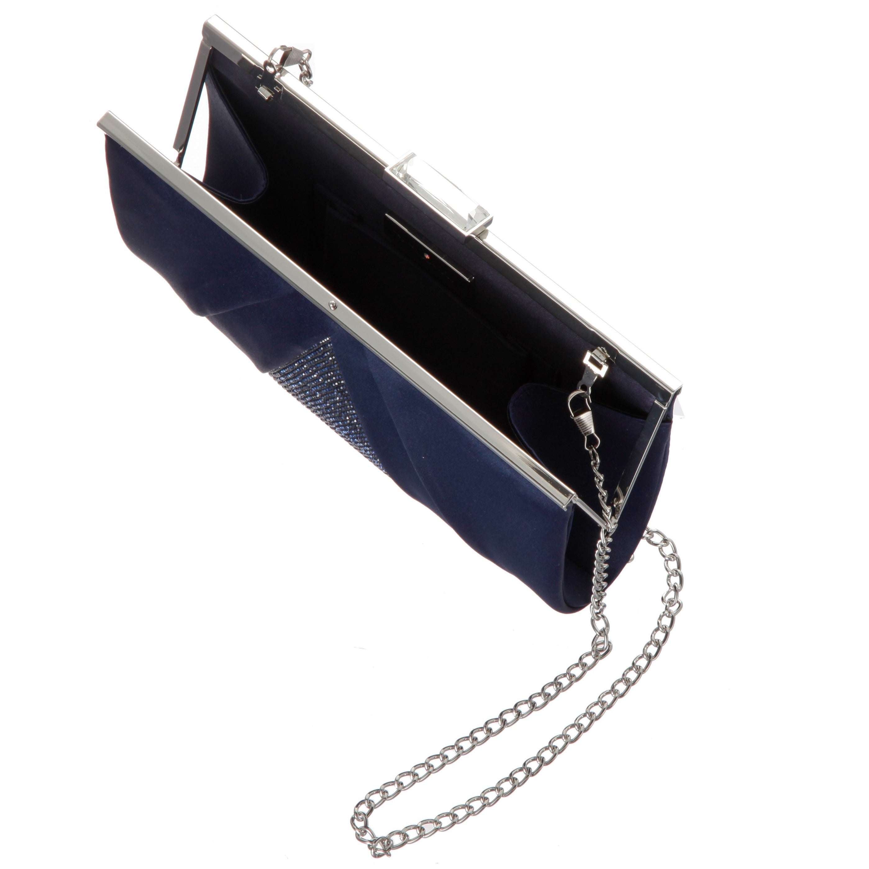 NAVY PLEATED SATIN FRAME CLUTCH